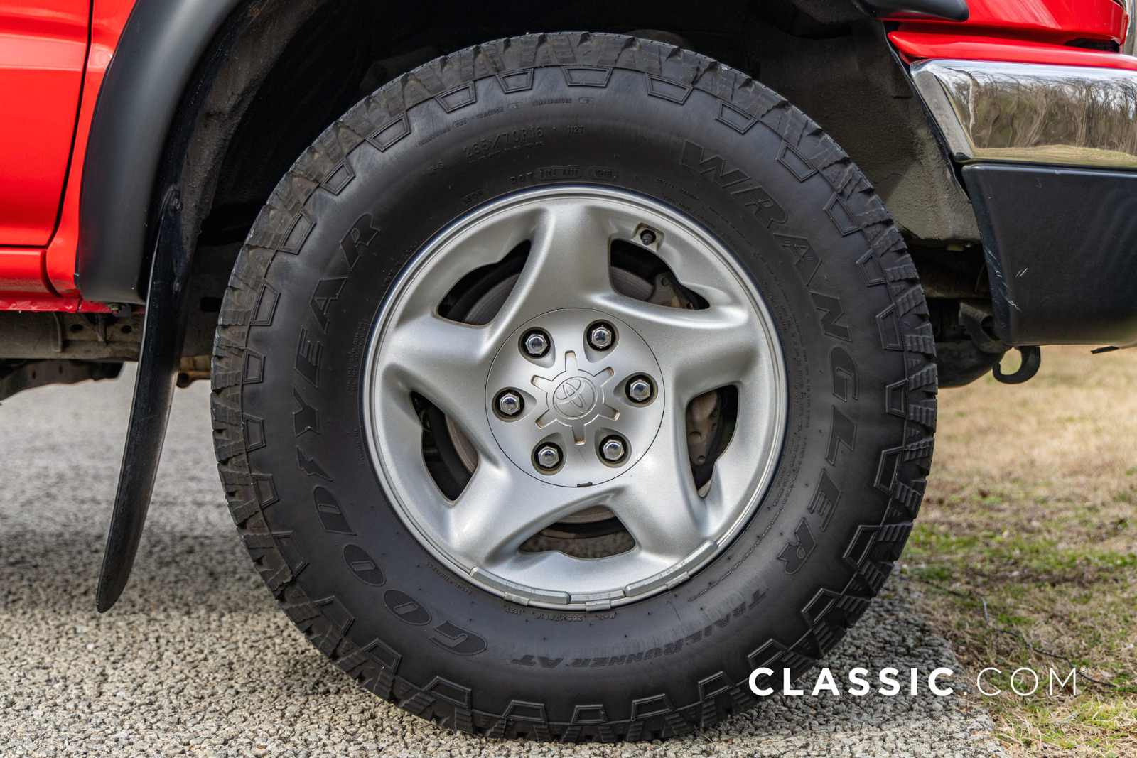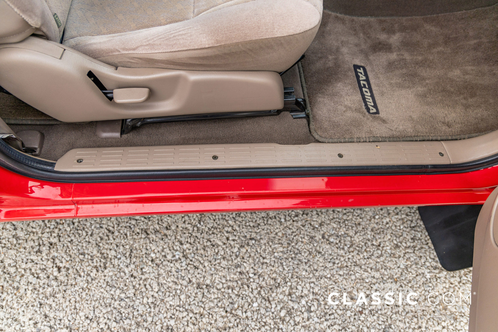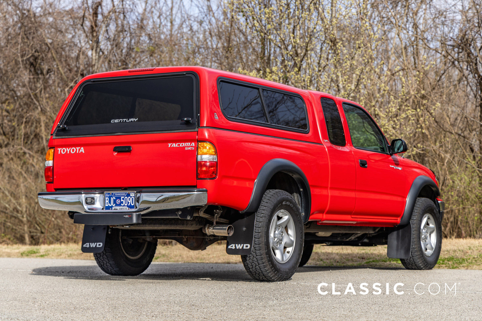 This one-owner 2004 Toyota Tacoma SR5 is powered by a 2.7L inline-four-cylinder engine and a four-speed automatic transmission driving all four wheels through a part-time, two-speed transfer case. Its painted in Radiant Red with a tan cloth interior and seating for five with extended cab jump-seats. This Tacoma came with the SR5 and preferred accessory packages with features such as chrome grille and bumpers, air conditioning, and a CD/cassette player. Additional factory options include 16-inch aluminum wheels and a sliding rear window. The owner added a color-matched hard-shell bed canopy and liner and a hood-mounted bug shield. The odometer shows 68,662 original miles and the CarFax confirms registration in Washington and Tennessee by one owner. The report also indicates regular dealer service throughout ownership. The truck is located in Tennessee.