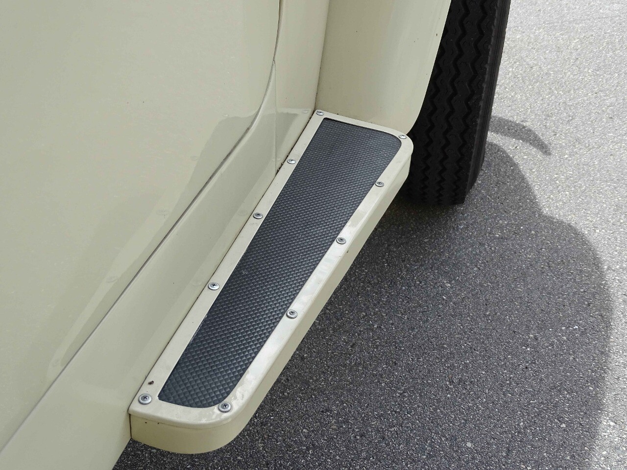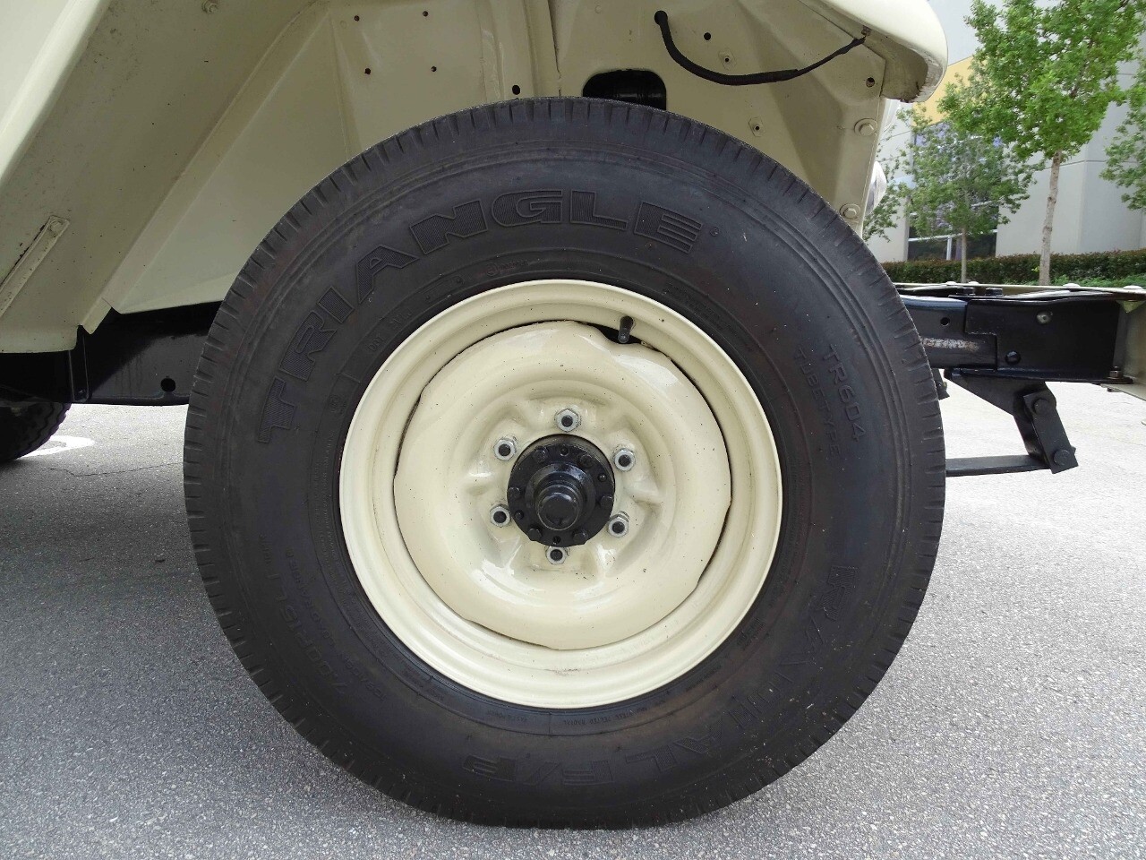 Safety is a priority in this 1961 Toyota Land Cruiser FJ40, which comes equipped with seatbelts for all passengers. Additionally, the radial tires provide superb traction and stability, ensuring a safe and smooth ride on any terrain.