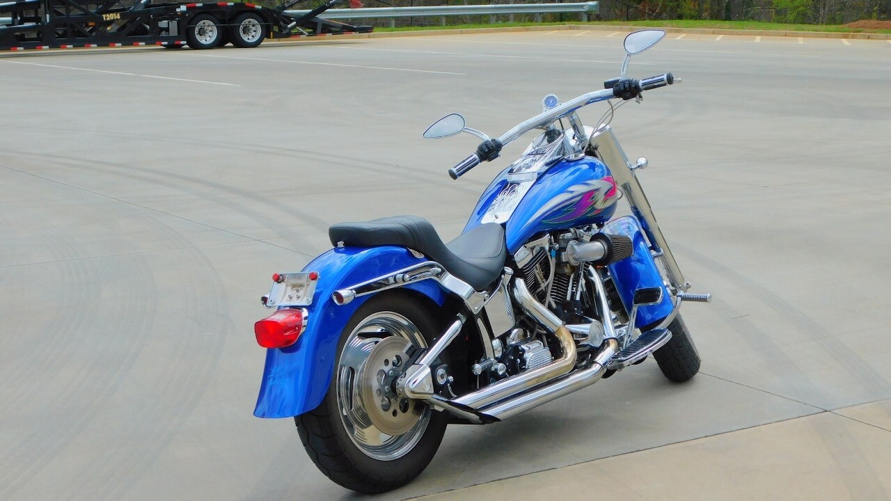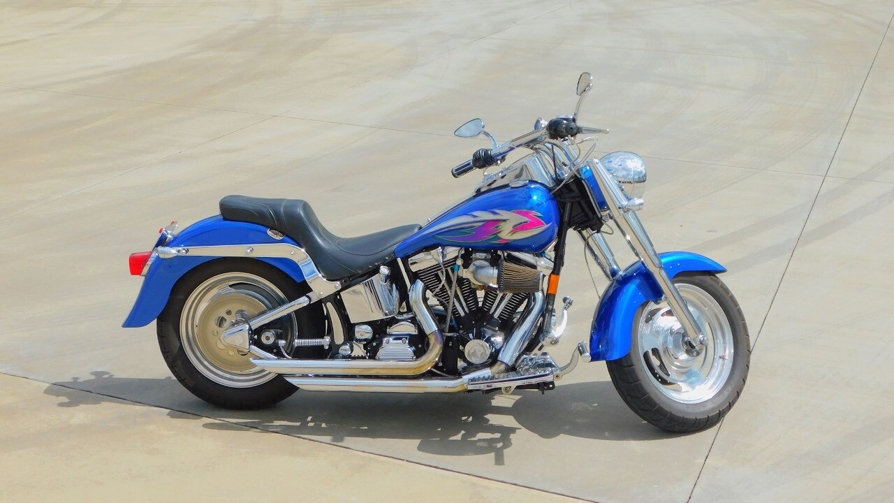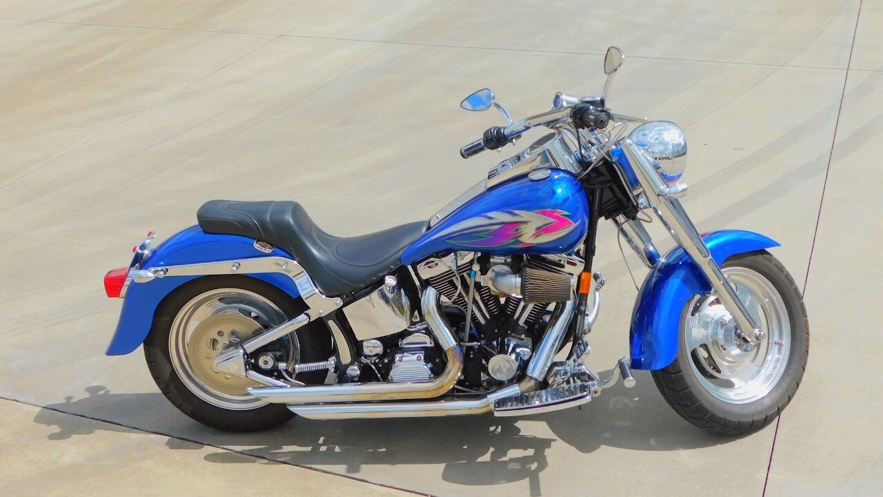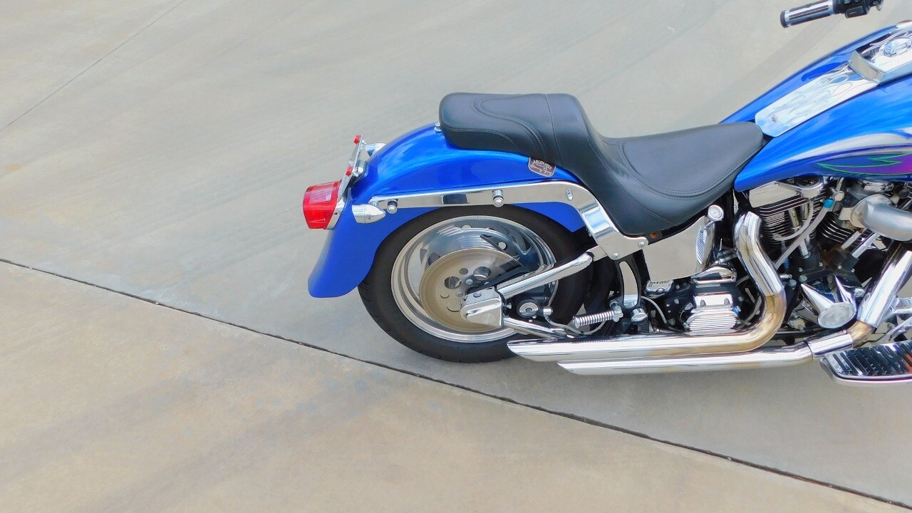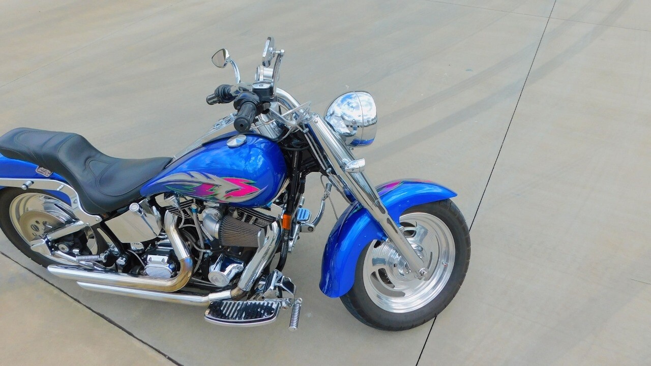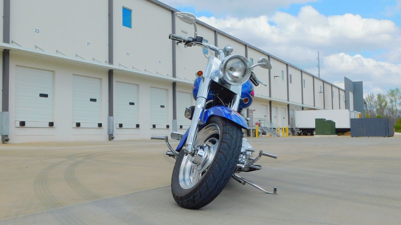 Introducing this 1999 Harley Davidson Fat Boy, a classic motorcycle that embodies the spirit of freedom and adventure. This model sports a blue exterior that is turns heads wherever you ride.