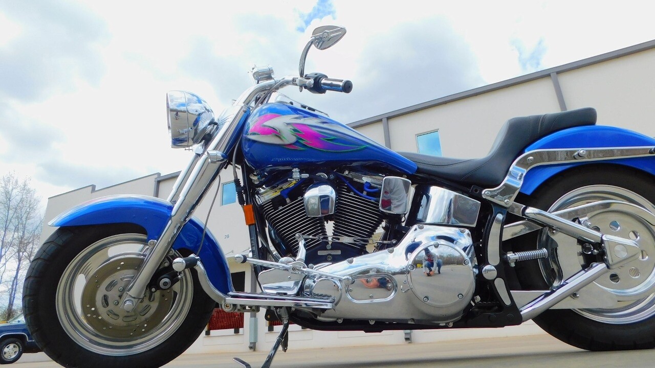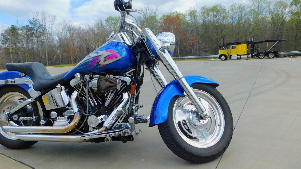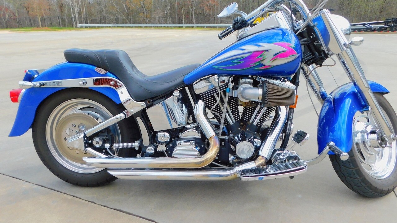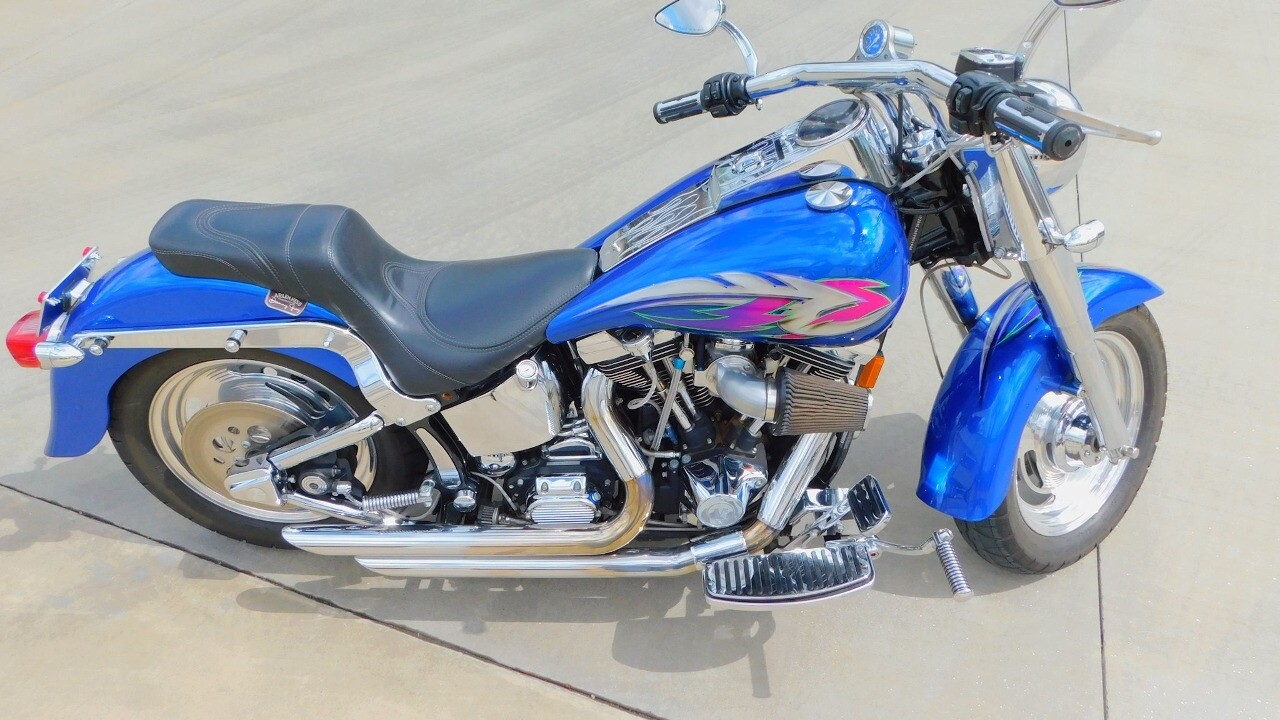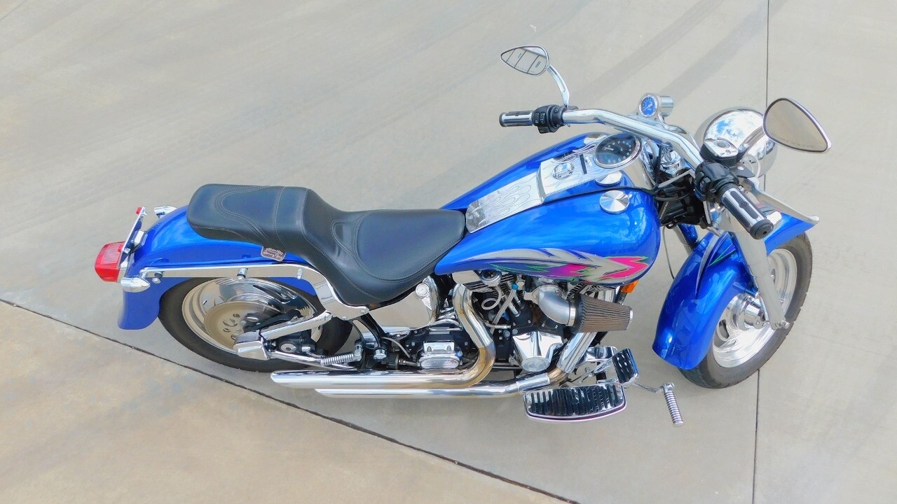 Introducing this 1999 Harley Davidson Fat Boy, a classic motorcycle that embodies the spirit of freedom and adventure. This model sports a blue exterior that is turns heads wherever you ride.