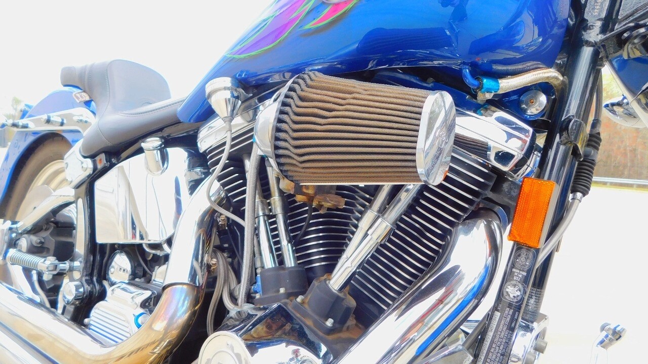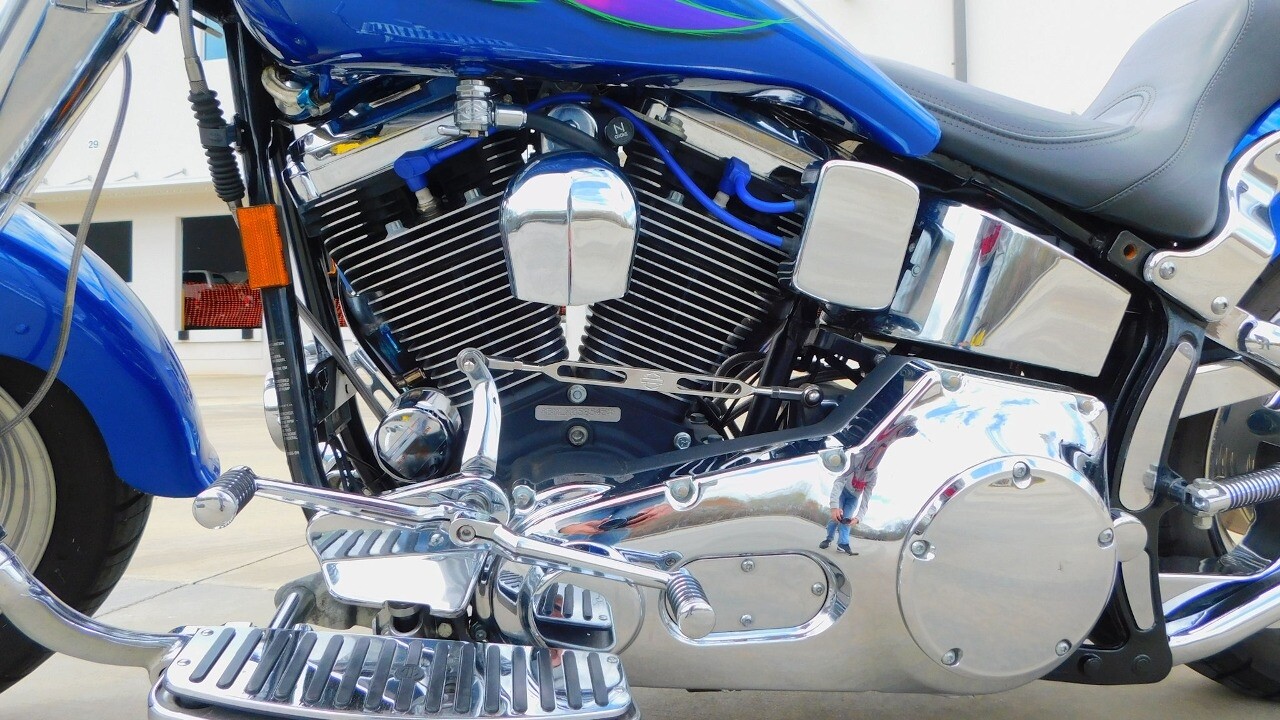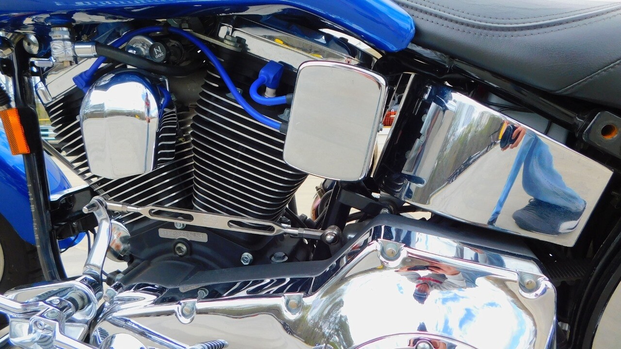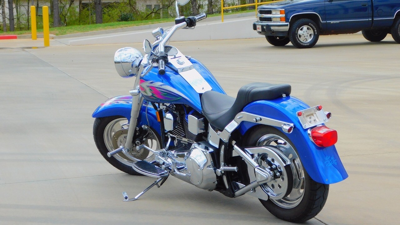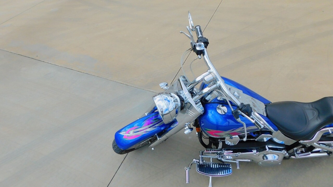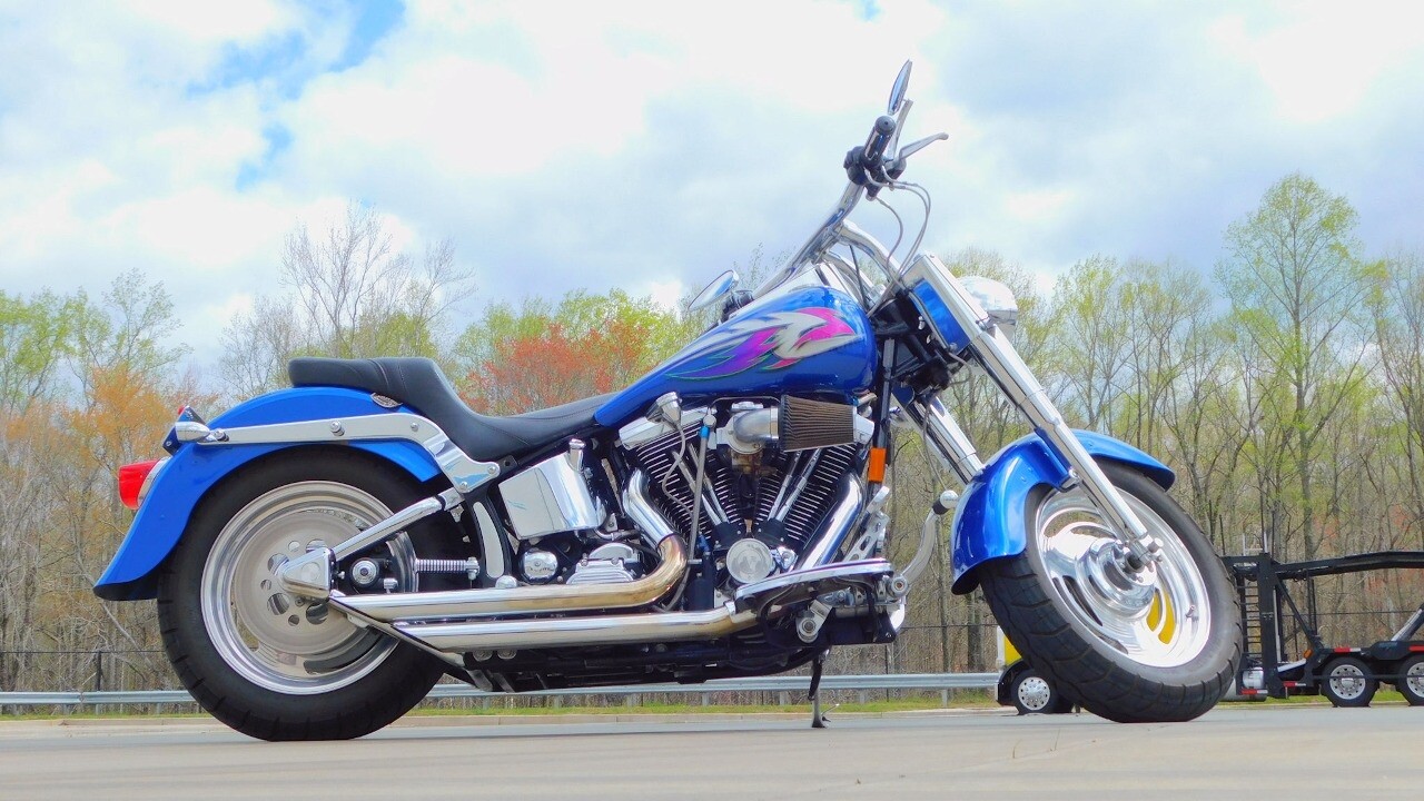 Introducing this 1999 Harley Davidson Fat Boy, a classic motorcycle that embodies the spirit of freedom and adventure. This model sports a blue exterior that is turns heads wherever you ride.