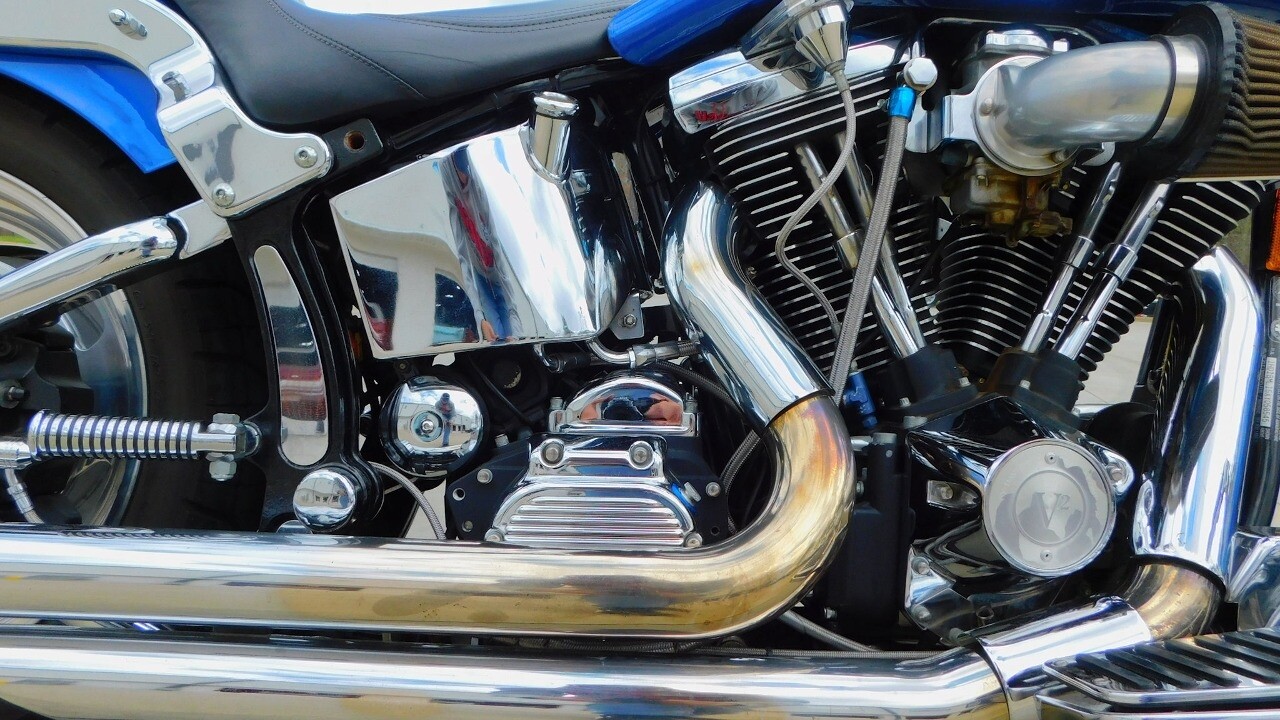 This Harley Davidson Fat Boy has a 1340cc engine. The manual transmission gives you control over your ride, allowing you to experience the raw power of this motorcycle at your fingertips.