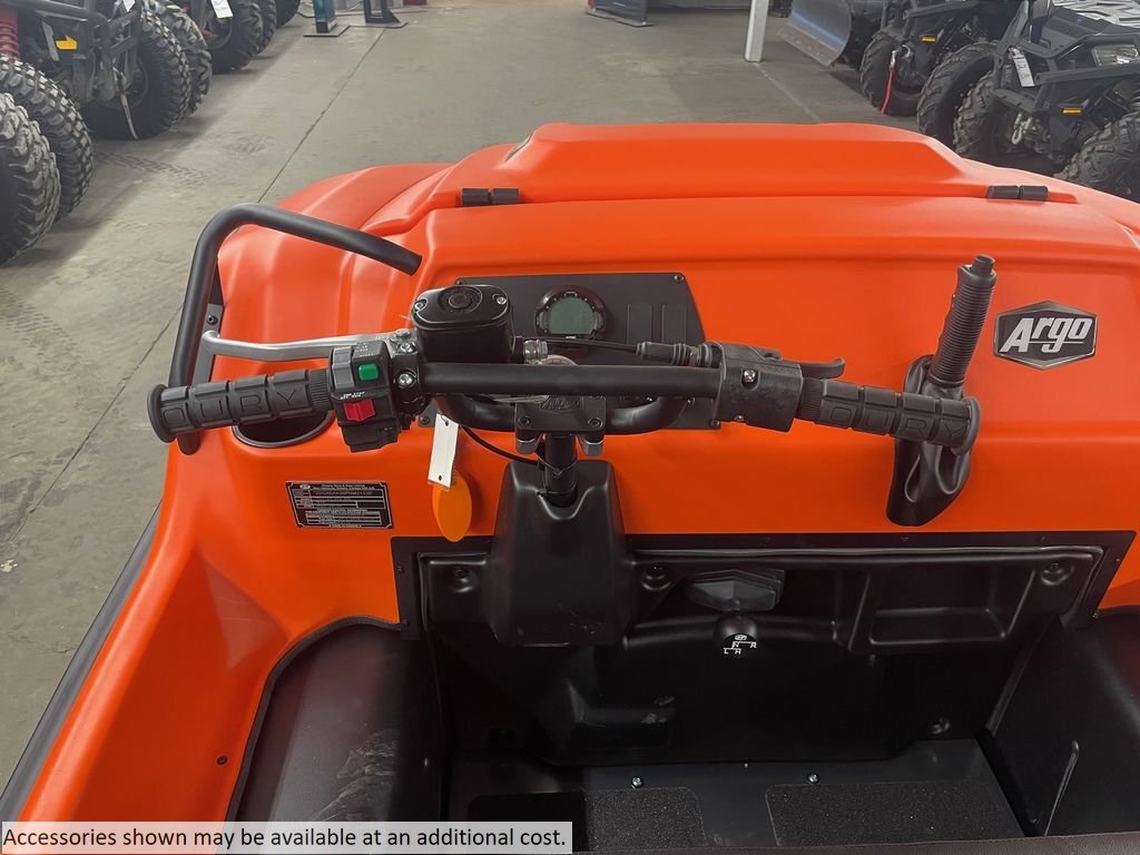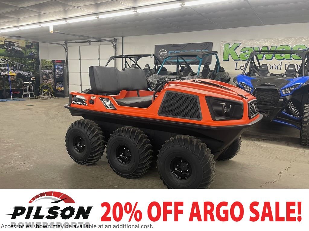 2023 Argo® Frontier 650 6X6THE EXPERIENCE IS ANYTHING BUT ENTRY-LEVEL.The Frontier six-wheeled amphibious vehicle might be the starting point for the XTV lineup, but everything about this machine is anchored in the bedrock of ARGO innovation and quality. Our Frontier 650 6x6 delivers the same dependable power and reliability of their bigger siblings to maximize your ability in the woods, mud or water.Our classic transmission with ARGO Progressive Steering (APS) and Instant Torque Clutch (ITC) provide smooth handling so both new and seasoned outdoor enthusiasts can enjoy the unmatched flavor of the world’s all-natural ingredients. Yes, the ’23 Frontier 650 6x6 is a beginning. Now find out where it will take you.VX 650 ENGINEThese V-Twin Fan Cooled engines are lightweight and compact to handle the most demanding terrain. Available on Frontier Series.INSTANT TORQUE CLUTCH (ITC)The ARGO Instant Torque Drive System (ITDS) dramatically improves low-end torque and increases acceleration. The Instant Torque Clutch (ITC) is designed to provide the optimal gear ratio, shifting seamlessly throughout the full range to utilize the massive torque and power of our engines.CLASSIC TRANSMISSION WITH APSThe ODG Classic transmission is our simplest design and operates like a mechanical skid steer, which gives it incredible maneuverability. In order to provide vehicle steering, braking force is applied directly to the output of the appropriate side of the transmission based on operator steering input. In both high and low range, the Classic transmission provides zero-radius turns to get you in and around extreme terrain.ARGO Progressive Steering (APS) with the Classic transmission achieves a smooth and comfortable drive experience to all XTVs in the Frontier Series.ARGO PROGRESSIVE STEERING (APS)APS is an innovation in the area of braking force application to the transmission steering differential. By adding a spring element between the handlebars and the brake system we achieved a progressive, dual-rate steering system. Steering events are now effortless with an increase of 4X wider range of steering motion, offering the smoothest turning available in an ARGO XTV. APS makes it as fun and comfortable to drive as any UTV.REDUCED UNDERHOOD TEMPERATURETo ensure comfort for the operator and passengers, heat-reflective and absorptive material is integrated into the firewall. A composite exhaust shroud goes one step further and effectively redirects heat while producing a subtle note from the exhaust.STEEL RIMS AND TIRESSteel offset rims with low-pressure 24" tires are custom engineered with a paddle design for amphibious propulsion through water and optimized traction on the most extreme off-road terrain.AMPHIBIOUS BODYYes, this XTV floats. The one-piece amphibious lower body is the signature ARGO design feature. Its smooth, durable underbody floats over potential snags, stumps and outcrops, as well as swamps and water.Features may include:VX 650 (Carb) V-Twin EngineODG Classic TransmissionARGO Progressive Steering (APS)Instant Torque Clutch (ITC)Quiet Muffler24" Tires8" Steel Offset RimsRear Side SeatsFront Flat FloorDeluxe GaugeSingle Low Projector Beam HeadlightsHi-Vis LED Brake/TaillightsHDPE Body PlasticsColor: Green, Black, Orange