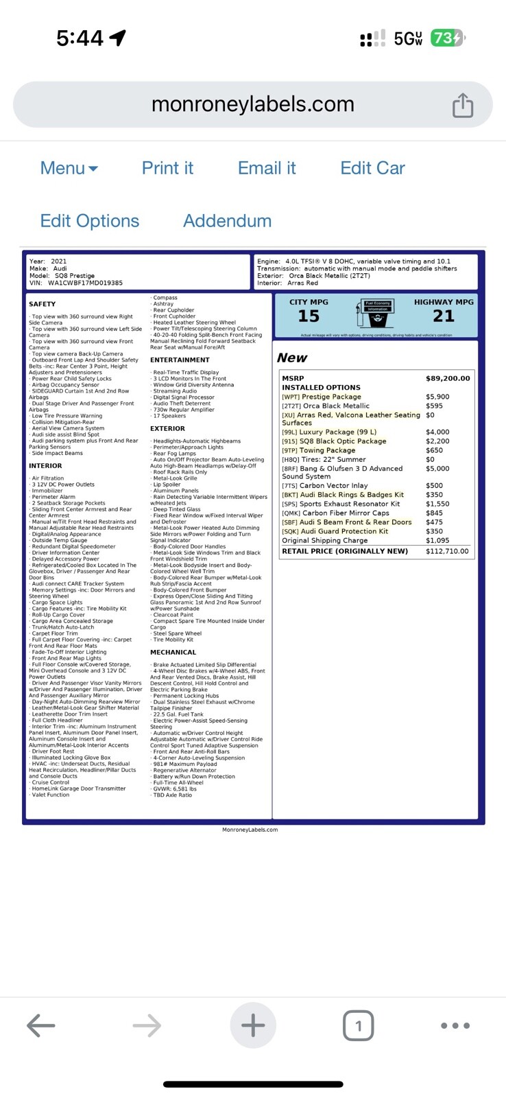 Very clean, loaded stealth spec. Huge $113k MSRP. Light modifications. Clean title. Zero issues. - Prestige Package ($5,900) - Luxury Package ($4,000) - Black Optics Package ($2,200) - B&O 3D Audio ($5,000) - Full build attached No stories, no issues. Mechanically perfect. Interior nearly perfect. A few small exterior blemishes. Tires are getting down but it comes with a brand new set ($2,544) ready to be mounted. - Aftermarket Window Tint - OP Ceramic Coating - Black Powdercoated Wheels - Aftermarket Remote StartVehicle Details