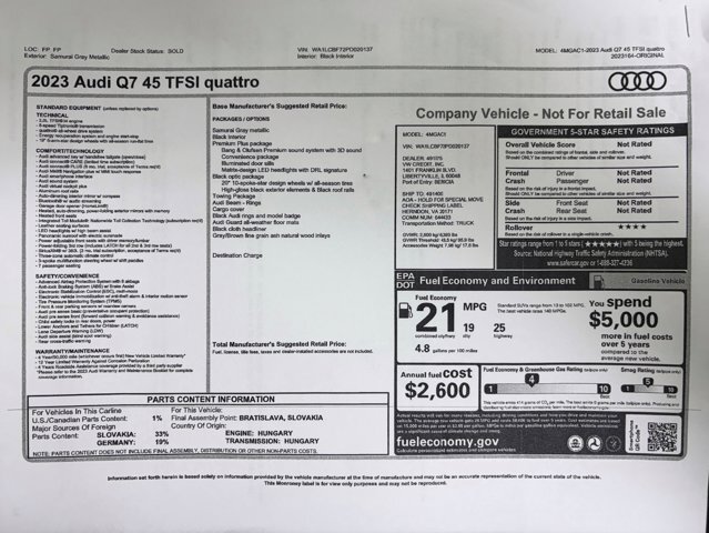Prices subject to change without notice and do not include Title, License, Registration Fees, State or Local Taxes or Processing Fees, if any. Please contact seller first for vehicle availability. Although every effort is made to present accurate and reliable information, use of this information is voluntary, and should only be deemed reliable after an independent review of its accuracy, completeness, and timeliness. It is the sole responsibility of the customer to verify the existence of options, accessories and the vehicle condition before time of sale. Any and all differences must be addressed prior to time of sale. No expressed or implied warranties, including the availability or condition of the equipment listed is made. EPA mileage estimates for comparison purposes only. Actual mileage may vary depending on driving conditions, driving habits, and vehicle maintenance.