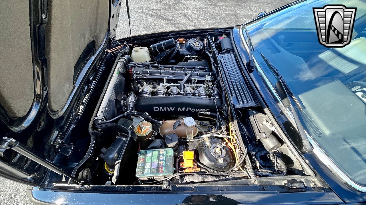 Gateway Classic Cars is proud to represent this beautiful example of a 1988 BMW M6! The BMW E24 is the first generation of BMW 6 Series range of grand touring cars, which was produced from January 1976 to 1989 and replaced the BMW E9 3.0 coupe. The E24 was produced solely in a 2-door coup body style. All models used petrol straight-six cylinder engines, with the majority of trims using a version of the BMW M30 engine family. The M635CSi is the first of the BMW M6 model line and is powered by the M88/3 straight-six engine. In North America, the vehicle is badged as "M6" and uses the less powerful BMW S38 engine. [ omitted ]. The main difference between the M6 and its European counterpart, is that the S38 engine is used instead of the M88. Compared with the M88, the S38 has a catalytic converter, the compression ratio reduced to 9.8:1, a double row timing chain, a shorter camshaft duration and a simplified exhaust manifold. The power output for the North American E24 M6 is 256 HP which is 30 HP less than the European M635CSi.