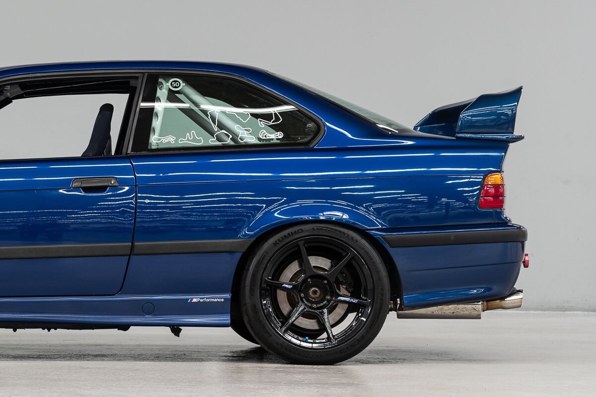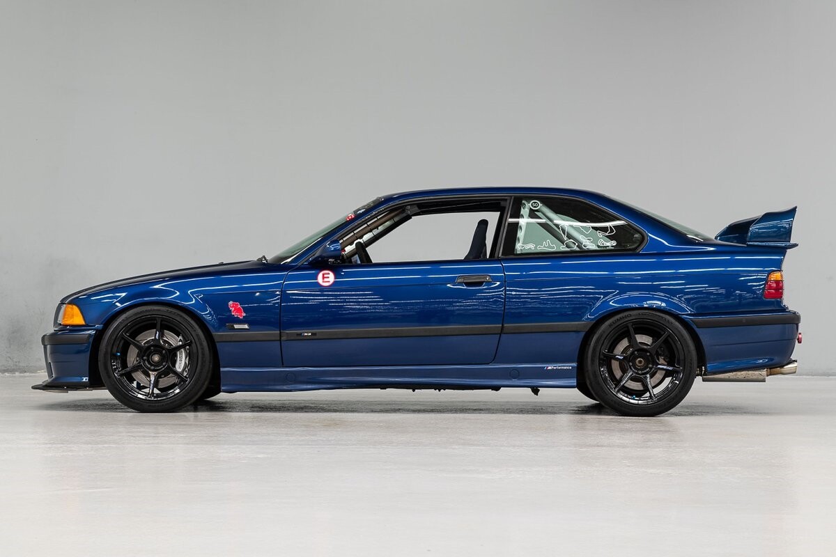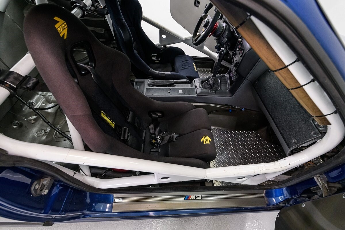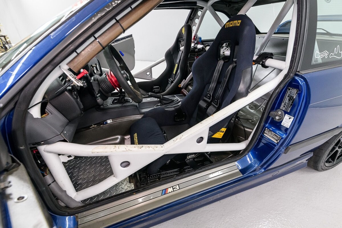 This 1995 BMW M3 has been seriously modified as a track car. The exterior of the BMW is in very good condition. Custom door and rear deck panels have been fabricated and a Motion Motorsport adjustable front splitter/panel have been installed. The drivers compartment has been modified for competition and safety. Some of these features include a 6-point custom roll cage, MOMO SuperCup seats, Schroth 6-point harness, G-Force driver net, VAC stainless diamond-plate floor pans and a Lifeline fire suppression system.