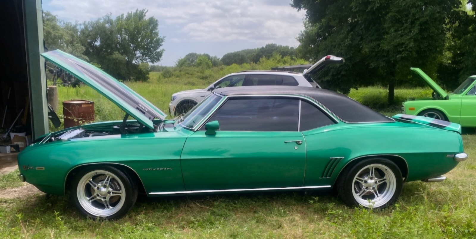 1969 CAMARO RS/SS Motown block 383 full roller motor with aluminum heads 500 plus hp, Davis racing aluminum radiator with dual electric fans tremec 5 speed transmission with hydraulic pedal, full global west suspension with coilovers, nbuilt chevy rear end with aluminum girdle post rear with 3.55 gear drivshaft detroit speed wiper motor, full sound system alpine head unit with jl sub hounds tooth seats, all disc brakes with hydroboost. ac, power windows, digital gauges, tilt steering wheel, custom steering wheel that pops off for security, viper alarm, toyo tires. a couple of nicks, nothing worth mentioning, too much to list. starting bid>>>>is less than half of what it cost to buy and build! this is a monster build. good luck bidding.