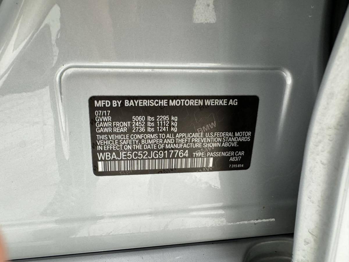 Our Accident Free 2018 BMW 5 Series 540i sDrive Sedan is a show-stopper in Glacier Silver Metallic! Powered by a 3.0 Liter Twin TurboCharged 6 Cylinder that delivers 335hp with its 8 Speed Sport Automatic transmission with Sport/Manual shift modes and steering-wheel-mounted paddle shifters. The handling and efficiency of our Rear Wheel Drive are exceptional - so buckle up and enjoy the ride as you score nearly 30mpg on the highway and soar to 60mph in just 4.7 seconds; up your game with the sleek contours of our 540i Sedan with its LED adaptive headlights - beautiful alloy wheels - and sunroof. Luxurious accommodations await you in the sDrive 540i cabin. Discover Dakota Leather - rich wood trim - ambient lighting - dual-zone automatic climate control - highly power-adjustable heated front seats - auto-dimming heated mirrors - and a convenient 40/20/40 split-folding rear seat. Our iDrive interface with gesture and voice controls - navigation - Bluetooth - and premium HiFi audio with available satellite radio - provides all the information you need to go along for the ride. This ultimate driving machine by BMW also takes care of you with ABS - stability/traction control - airbags - a rearview camera - and rear parking sensors. Stands out with innovative technology and superior quality - our 5 Series is the intelligent choice. Save this Page and Call for Availability. We Know You Will Enjoy Your Test Drive Towards Ownership!