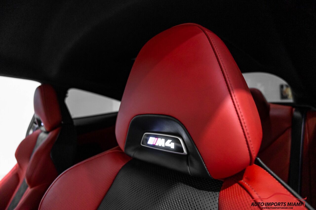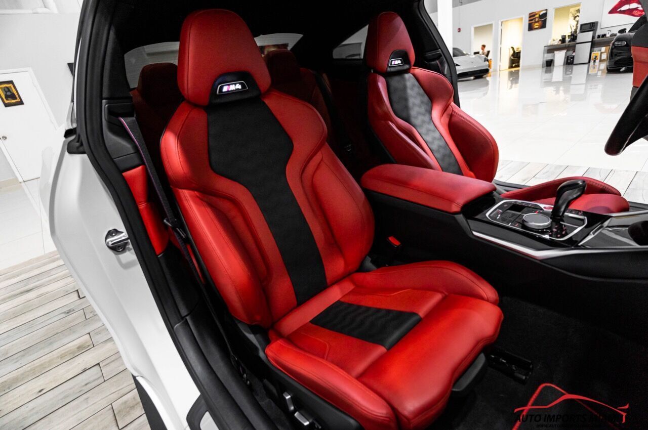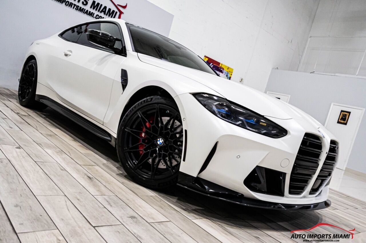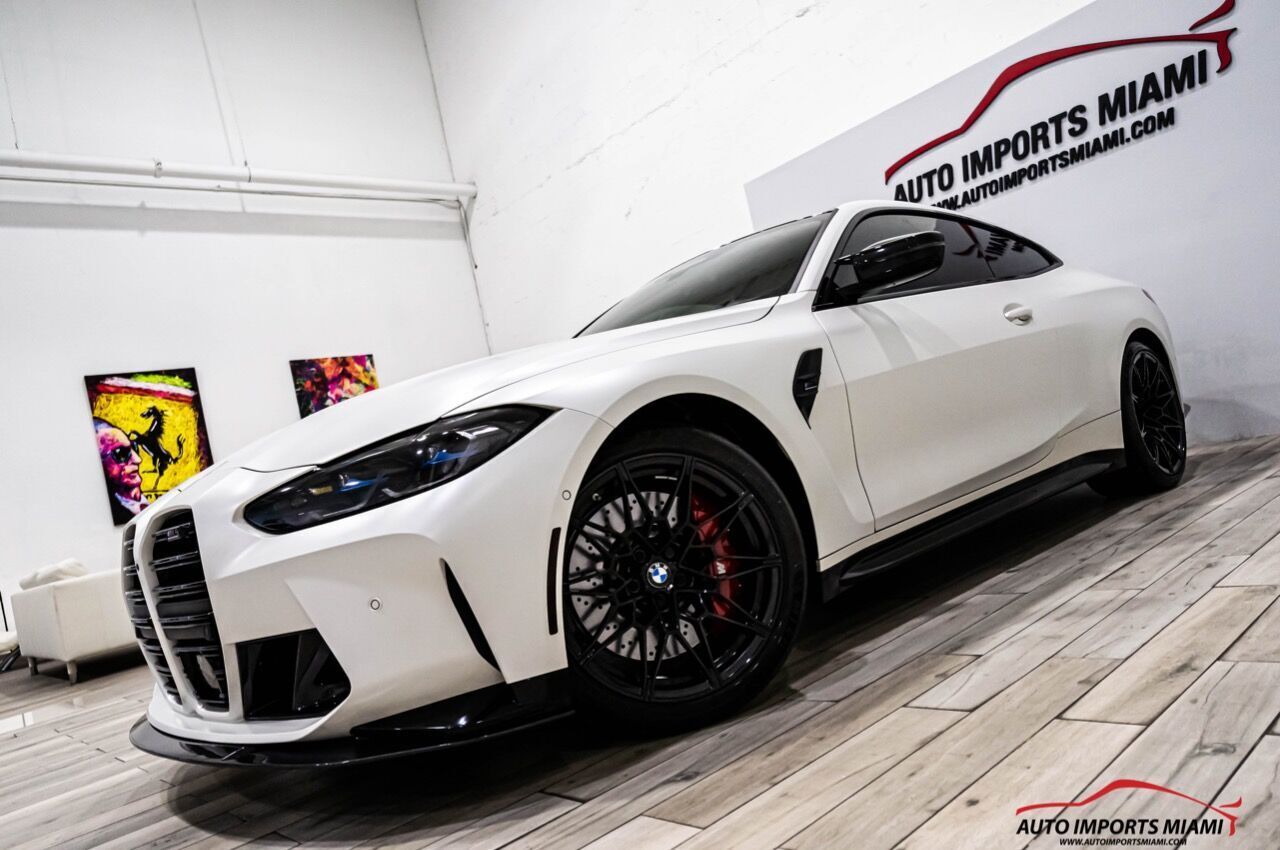 AUTO IMPORTS MIAMI PRESENTS.... 2022 BMW M4 COMPETITION COUPE.... FROZEN BRILLIANT WHITE METALLIC OVER FIONA RED EXTENDED LEATHER.. COMPETITION PACKAGE!!! 503 HP TWIN-TURBOCHARGED ANIMAL... FACTORY FROZEN BRILLIANT WHITE MATTE PAINT!!!! CARBON FIBER EXTERIOR PACKAGE... FULL ACTIVE FACTORY BMW WARRANTY!!! LOADED WITH EXCLUSIVE OPTIONS....$91,225 MSRP!!! CARBON FIBER FRONT LIP SPOILER... FIONA RED LEATHER INTERIOR!!!! LASER HEADLAMPS.... 19/20 PREMIUM M MESH COMPETITION BLACK WHEELS..... NAVIGATION..... HK PREMIUM SOUND.... EXECUTIVE PACKAGE..... GESTURE CONTROL..... WIRELESS CHARGING.... THIS VEHICLE COMES WITH 1 KEY... ABSOLUTELY GORGEOUS....WHAT A RARE FIND..... THIS STUNNING 2022 BMW M4 COMPETITION HAS A TWIN-TURBOCHARGED 3.0L I6 ENGINE THAT PRODUCES 503 HP AND COMES WITH ALL THE RIGHT EQUIPMENT INCLUDING....... *FROZEN BRILLIANT WHITE METALLIC... *FIONA RED W.BLK LEATHER... *M CARBON FIBER EXTERIOR PACKAGE... *M COMPETITION PACKAGE... *R44 CARBON FIBER FRONT LIP SPOILER... *CARBON FIBER ROOF.... *CARBON FIBER MIRRORS, FRONT AIR SCOOPS, REAR DIFFUSER AND WING... *M SPORT EXHAUST.... *M SEAT BELTS... *EXECUTIVE PACKAGE... *HEADS UP DISPLAY.... *19/20 PREMIUM M COMPETITION BLACK WHEELS... *INDIVIDUAL PIANO BLACK FINISH TRIM.... *NAVIGATION..... *GESTURE CONTROL..... *SURROUND 3D VIEW CAMERAS... *HEATED FRONT SEATS AND STEERING WHEEL.... *AC VENTILATED FRONT SEATS... *M COMPOUND BRAKES W.RED CALIPERS... *BLUETOOTH..... *WIFI HOTSPOT..... *HK SURROUND SOUND.... *TINTED WINDOWS..... *DCT AUTOMATIC TRANS..... *DYNAMIC DIGITAL CLUSTER..... *ICON ADAPTIVE LASERLIGHT LED HEADLAMPS..... .*POWER ASSIST TRUNK..... *3-SPOKE SPORT STEERING WHEEL.... *PARK ASSISTANT PACKAGE.... *DYNAMIC STABILITY CONTROL... *ADJUSTABLE MODE M DYNAMIC SUSPENSION... PRICED TO SELL FAST....... THIS M4 COMPETITION IS ABSOLUTELY GORGEOUS ...MUST SEE THIS BEAUTY!!! Vehicle Pickup & Shipping... We offer fast and reliable Door-to-Door nationwide shipping at wholesale prices. We ship vehicles nationally and worldwide. Immediate delivery is available in select locations!!! With over 20 years of experience in luxury and exotic sales, we handpick all of our vehicles to make sure you are fully satisfied!!! For more info on this beauty call305-517-1332