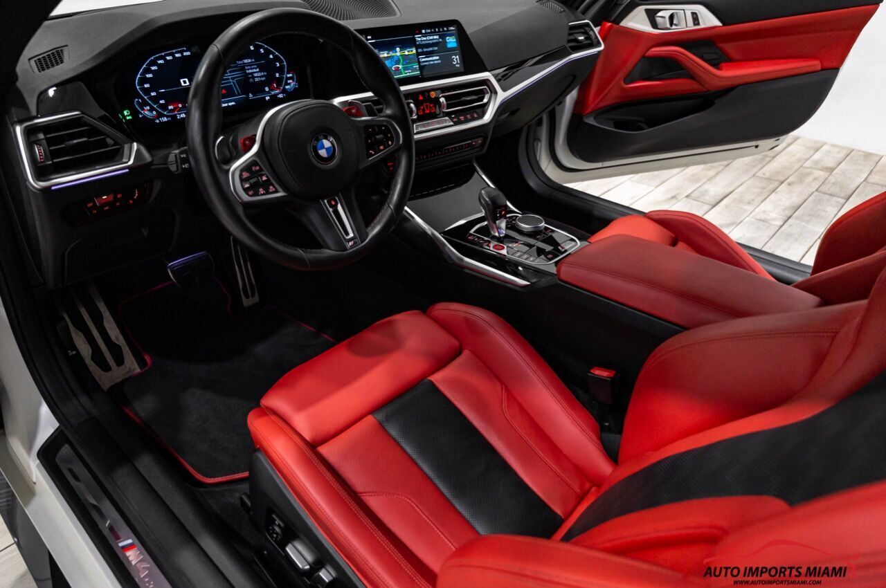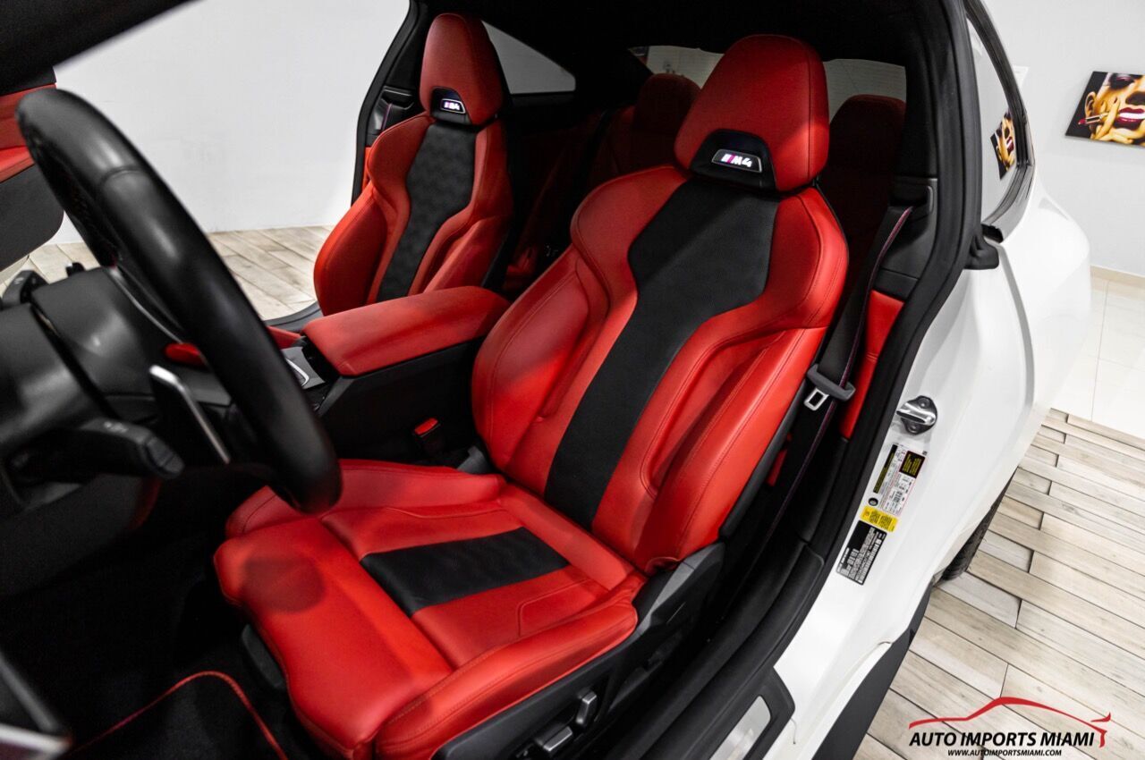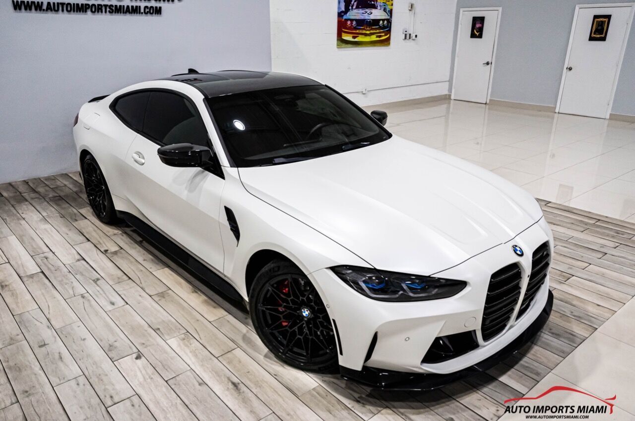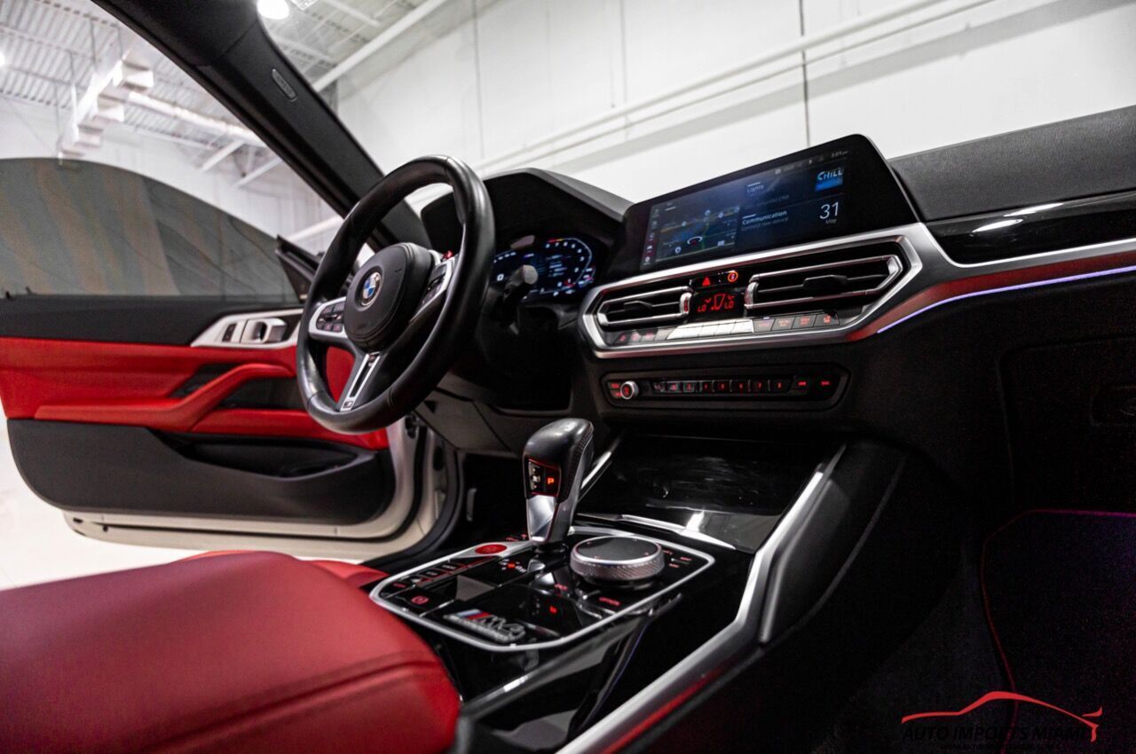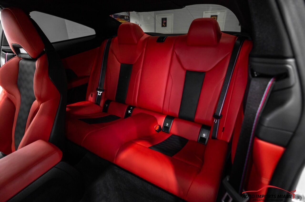 AUTO IMPORTS MIAMI PRESENTS.... 2022 BMW M4 COMPETITION COUPE.... FROZEN BRILLIANT WHITE METALLIC OVER FIONA RED EXTENDED LEATHER.. COMPETITION PACKAGE!!! 503 HP TWIN-TURBOCHARGED ANIMAL... FACTORY FROZEN BRILLIANT WHITE MATTE PAINT!!!! CARBON FIBER EXTERIOR PACKAGE... FULL ACTIVE FACTORY BMW WARRANTY!!! LOADED WITH EXCLUSIVE OPTIONS....$91,225 MSRP!!! CARBON FIBER FRONT LIP SPOILER... FIONA RED LEATHER INTERIOR!!!! LASER HEADLAMPS.... 19/20 PREMIUM M MESH COMPETITION BLACK WHEELS..... NAVIGATION..... HK PREMIUM SOUND.... EXECUTIVE PACKAGE..... GESTURE CONTROL..... WIRELESS CHARGING.... THIS VEHICLE COMES WITH 1 KEY... ABSOLUTELY GORGEOUS....WHAT A RARE FIND..... THIS STUNNING 2022 BMW M4 COMPETITION HAS A TWIN-TURBOCHARGED 3.0L I6 ENGINE THAT PRODUCES 503 HP AND COMES WITH ALL THE RIGHT EQUIPMENT INCLUDING....... *FROZEN BRILLIANT WHITE METALLIC... *FIONA RED W.BLK LEATHER... *M CARBON FIBER EXTERIOR PACKAGE... *M COMPETITION PACKAGE... *R44 CARBON FIBER FRONT LIP SPOILER... *CARBON FIBER ROOF.... *CARBON FIBER MIRRORS, FRONT AIR SCOOPS, REAR DIFFUSER AND WING... *M SPORT EXHAUST.... *M SEAT BELTS... *EXECUTIVE PACKAGE... *HEADS UP DISPLAY.... *19/20 PREMIUM M COMPETITION BLACK WHEELS... *INDIVIDUAL PIANO BLACK FINISH TRIM.... *NAVIGATION..... *GESTURE CONTROL..... *SURROUND 3D VIEW CAMERAS... *HEATED FRONT SEATS AND STEERING WHEEL.... *AC VENTILATED FRONT SEATS... *M COMPOUND BRAKES W.RED CALIPERS... *BLUETOOTH..... *WIFI HOTSPOT..... *HK SURROUND SOUND.... *TINTED WINDOWS..... *DCT AUTOMATIC TRANS..... *DYNAMIC DIGITAL CLUSTER..... *ICON ADAPTIVE LASERLIGHT LED HEADLAMPS..... .*POWER ASSIST TRUNK..... *3-SPOKE SPORT STEERING WHEEL.... *PARK ASSISTANT PACKAGE.... *DYNAMIC STABILITY CONTROL... *ADJUSTABLE MODE M DYNAMIC SUSPENSION... PRICED TO SELL FAST....... THIS M4 COMPETITION IS ABSOLUTELY GORGEOUS ...MUST SEE THIS BEAUTY!!! Vehicle Pickup & Shipping... We offer fast and reliable Door-to-Door nationwide shipping at wholesale prices. We ship vehicles nationally and worldwide. Immediate delivery is available in select locations!!! With over 20 years of experience in luxury and exotic sales, we handpick all of our vehicles to make sure you are fully satisfied!!! For more info on this beauty call305-517-1332