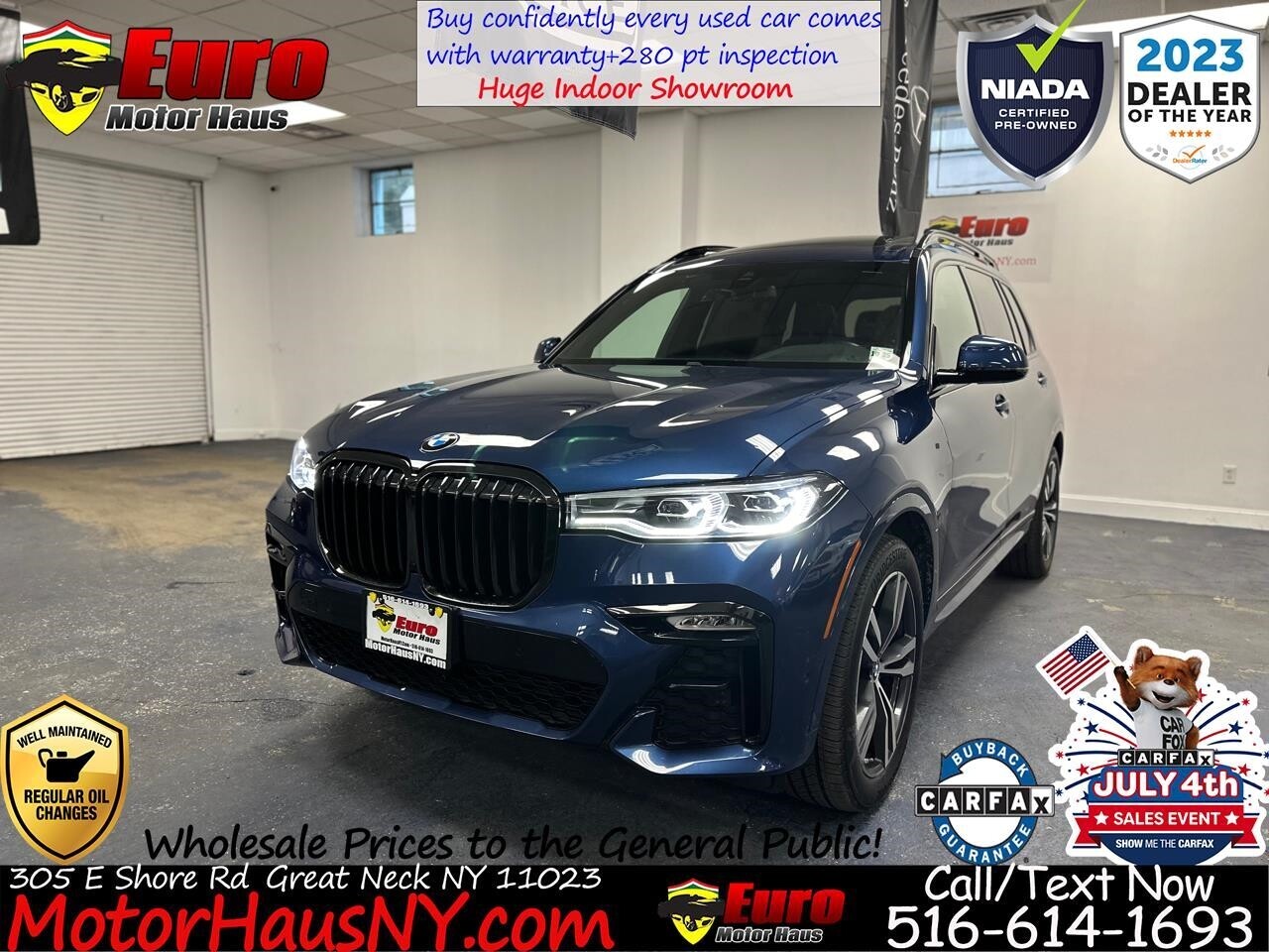 Introducing the 2021 BMW X7 xDrive40i M-Sport, a captivating light blue-on-brown luxury SUV with 44,589 miles, showcasing a flawless condition and an array of options. Its beauty is complemented by the 21 x 9.5 Double Spoke Bi-Color Orbit Grey wheels ($0), Phytonic Blue Metallic exterior ($0), and Coffee Vernasca Leather Upholstery ($1,450). The Anthracite Brown Poplar Matte Finish Wood Trim ($0) adds a touch of elegance to the interior. This X7 boasts the M Sport Package ($4,350), featuring Shadowline Exterior Trim, High-Gloss Shadowline Roof Rails, Fineline Black Wood Trim, an M Steering Wheel, and an Anthracite Alcantara Headliner. The Cold Weather Package ($1,100) ensures comfort with 5-Zone Automatic Climate Control and heated seats. The Premium Package ($2,550) adds Gesture Control, Rear Electric Side Window Shades, Soft-Close Automatic Doors, a Head-Up Display, and a harman/kardon Surround Sound System. The inclusion of Shadowline Exterior Trim, High-Gloss Shadowline Roof Rails, 5-Zone Automatic Climate Control, and Anthracite Alcantara Headliner further elevates the X7's appeal.With an original retail price of $85,345, this BMW X7 xDrive40i M-Sport is the embodiment of luxury and style. Don't miss the opportunity to experience this automotive masterpiece - schedule a test drive today! ? Call or Text 516-614-1693 prior to your visit for special internet pricing and quick answers to your questions ? Visit Euro Motor Haus online at to see more pictures of this vehicle or stop in person and view our large variety of certified pre owned luxury vehicles at 305 East Shore Road Great Neck NY 11023 or call/text us at516-614-1693 today to schedule your test drive. We are a FRANCHISE Affiliated Luxury Pre-Owned Car dealership connected to over 4 Franchise Dealerships. What that means for you is that we have ability to obtain you low rate financing through our major lending institutions. Wells Fargo TD Bank Capital One Bank Bank of America US Bank Exeter auto finance Chase Automotive Ally Financial Santander Key Bank all NY based credit unions and many more.The benefits of which are then transferred to our clientele. We are able to offer FRANCHISE finance rates up to 84 months. With our affiliation we are also permitted to sell New Car Service Contracts here with our CERTIFIED PRE-OWNED PROGRAM backed by SafeGuard and GWC and NIADA Warrantech . Come in and have our friendly and knowledgeable staff facilitate your needs. Euro Motor Haus Inc does not guarantee any ad disclaimer guarantees etc on any 3rd party website.Please note that the advertised price does not include sales tax registration DMV transportation of vehicle costs incurred by the dealer as for safety including but not limited to brakes tires and fluids and any additional fees required by law. Prices exclude any additional charges included with the cost of closing including any governmental charges and taxes any finance charges documentation preparation or warranty. The advertised price represents the vehicle in its current condition and subject to change depending on any additional costs incurred or market fluctuations. Inventory prices are liable to change without warning. Vehicles are offered on a first come first serve basis. Please call to inquire. Advertised price includes all dealer rebates and incentives but not inclusive of certification & dealer prep. We make every attempt to adequately represent the condition and features of all inventory including vehicle information pictures pricing and status but there may be inaccuracies. Updates may be delayed. Dealer assumes no responsibility for inaccuracies in online information. All internet special prices expire at 11:59 pm today. Must present offer prior to expiration.All of our vehicles go through a rigorous Safeguard/ GWC & NIADA certified and backed inspection. They Are pre certified. You work you drive!!! Instant financing available!!! We have great relationships with many lending institutions and we are the Home of the Guaranteed Approval.All finance deals are subject to primary lender approval. Challenged credit no credit no problem! PRICES MAY DIFFER WITH PAYMENT OPTIONS. **Many are 1 owner or off lease vehicles. **Free Vehicle History Reports **100% TOTALLY Indoor Facility **Nationwide Financing available **Extended Service Contracts available **Our cars under 100k miles all come with at least a 30 day warranty standard **Many are out of state clean cars **Trade ins welcomed **No Haggle Pricing!