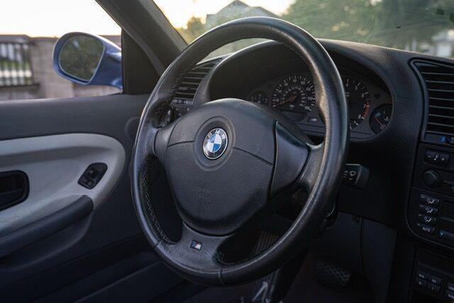 The Estoril Blue Metallic paint shines under the sunlight, showcasing the M3's sporty and elegant design. This color is sure to turn heads wherever you go, making a bold statement on the road.