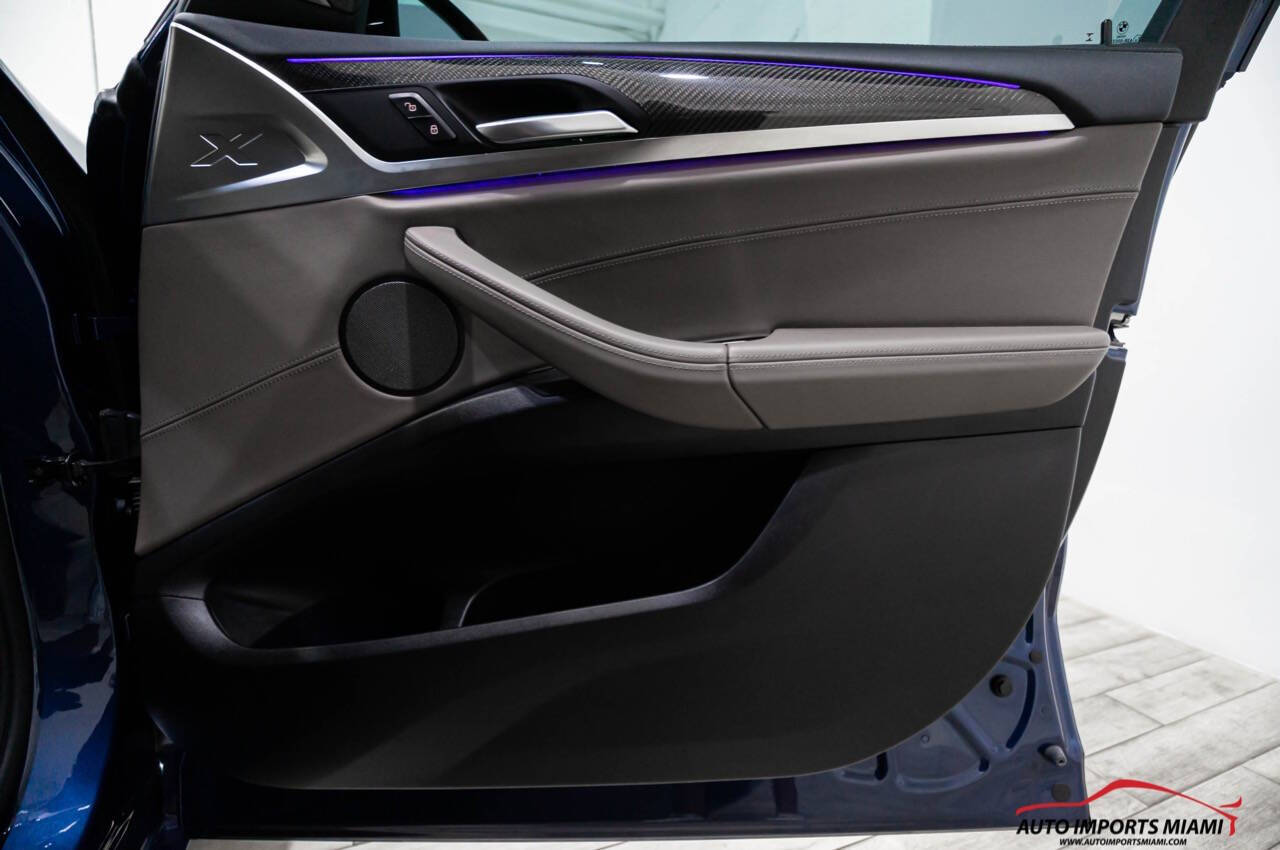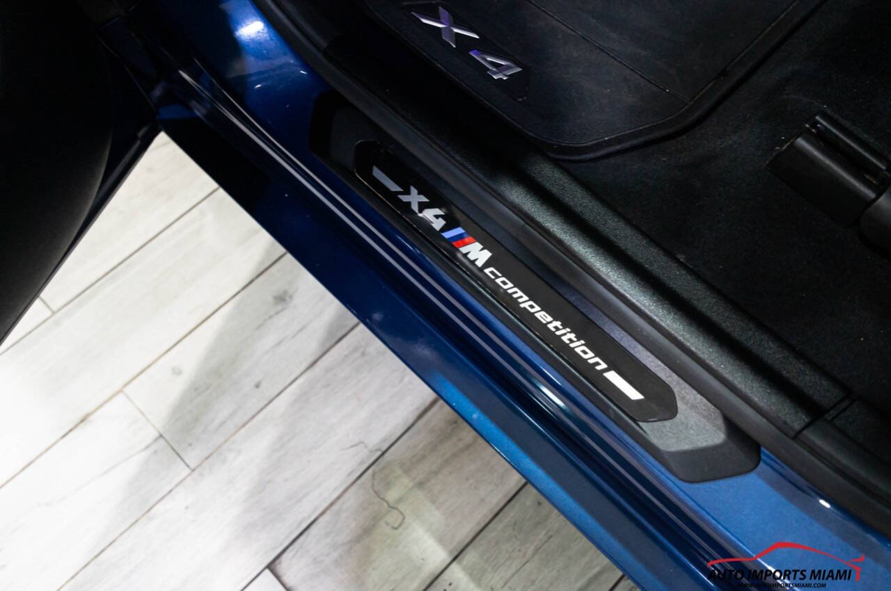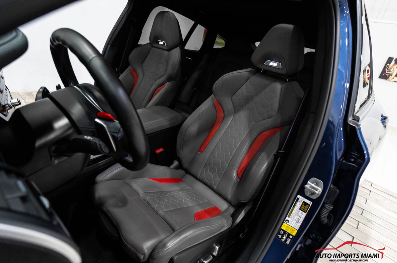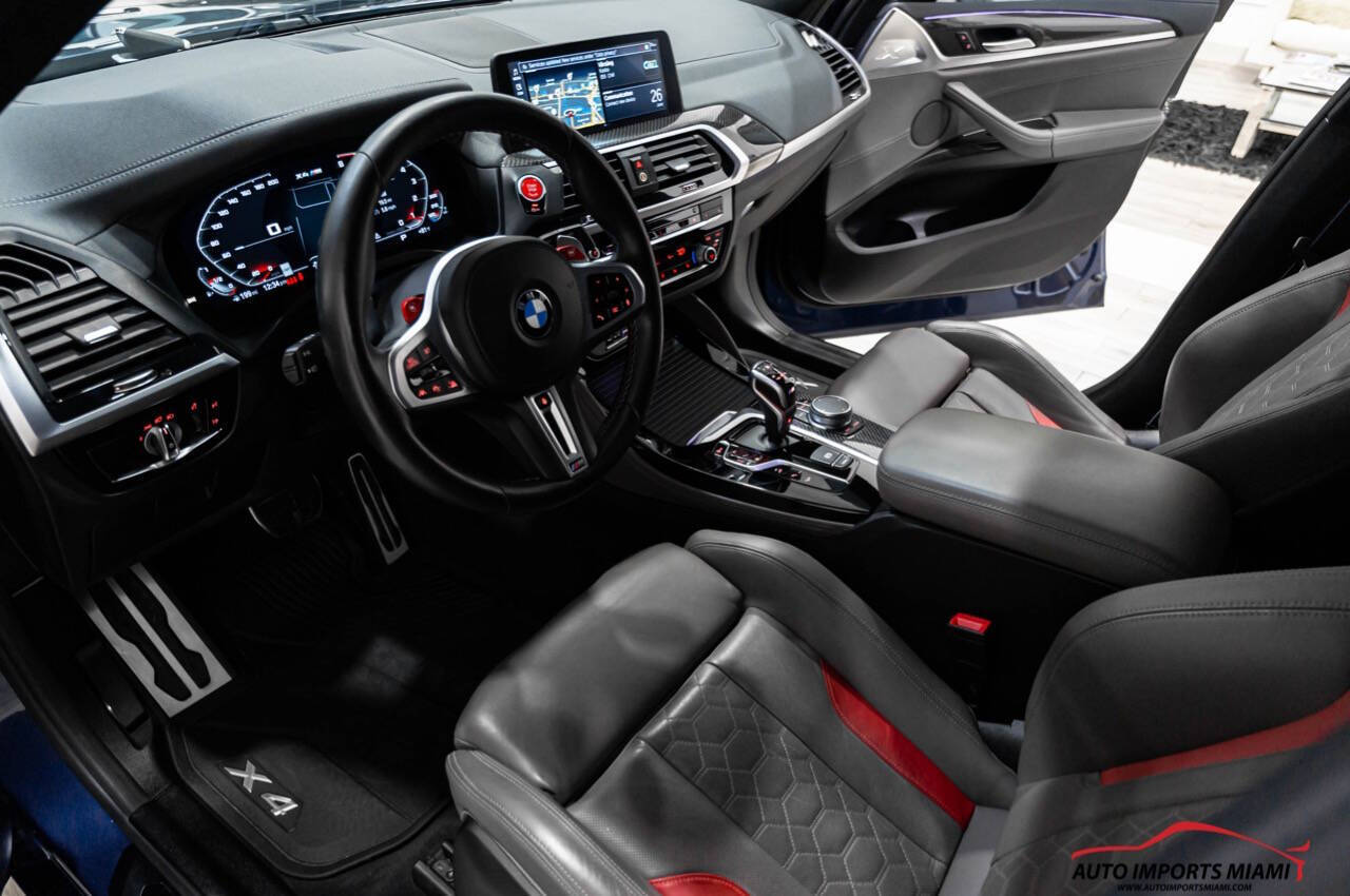AUTO IMPORTS MIAMI PRESENTS.... 2021 BMW X4M COMPETITION.... PHYTONIC BLUE METALLIC OVER ADELAIDE GREY W.RED INSERTS LEATHER..... COMPETITION PACKAGE!!! BEST COLOR COMBO!!!! 503 HP TWIN TURBOCHARGED ANIMAL... LOADED WITH OPTIONS....$85,185 MSRP!!! ACTIVE FACTORY BMW WARRANTY!!! 2 TONE LEATHER INTERIOR!!! CARBON FIBER INTERIOR TRIM.... 21 V SPOKE M WHEELS..... NAVIGATION..... HK PREMIUM SOUND.... DRIVING ASSISTANCE PLUS PACKAGE.... CLEAN CARFAX!!!+++100% CARFAX CERTIFIED!!! THIS VEHICLE COMES WITH 2 KEYS!!! ABSOLUTELY GORGEOUS....WHAT A RARE FIND..... THIS STUNNING 2021 BMW X4M COMPETITION HAS A TWIN TURBOCHARGED 3.0L I6 ENGINE THAT PRODUCES 503 HP AND COMES WITH ALL THE RIGHT EQUIPMENT INCLUDING....... *COMPETITION PACKAGE... *21 V SPOKE M WHEELS... *NAVIGATION..... *DRIVING ASSISTANCE PLUS PKG... *REARVIEW CAMERA... *HEATED SEATS AND STEERING WHEEL.... *FRONT VENTILATED SEATS... *BLUETOOTH..... *2 TONE M SPORT SEATS.... *M SEAT BELTS.... *HK SURROUND SOUND.... *TINTED WINDOWS..... *CARBON FIBER INTERIOR TRIM........ *PUSH BUTTON START...... *LED LIGHT SELF-LEVELING HEADLAMPS..... *POWER ASSIST TRUNK..... *3-SPOKE SPORT STEERING WHEEL.... *DYNAMIC STABILITY CONTROL... *ADJUSTABLE MODE M DYNAMIC SUSPENSION... PRICED TO SELL FAST....... THIS X4M COMPETITION IS ABSOLUTELY GORGEOUS ...MUST SEE THIS BEAUTY!!! Vehicle Pickup & Shipping... We offer fast and reliable Door-to-Door nationwide shipping at wholesale prices. We ship vehicles nationally and worldwide. Immediate delivery is available in select locations!!! With over 20 years of experience in luxury and exotic sales, we handpick all of our vehicles to make sure you are fully satisfied!!! For more info on this beauty call305-517-1332