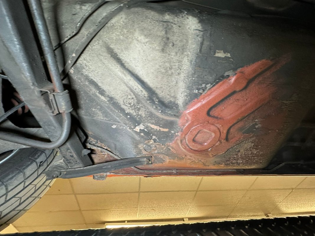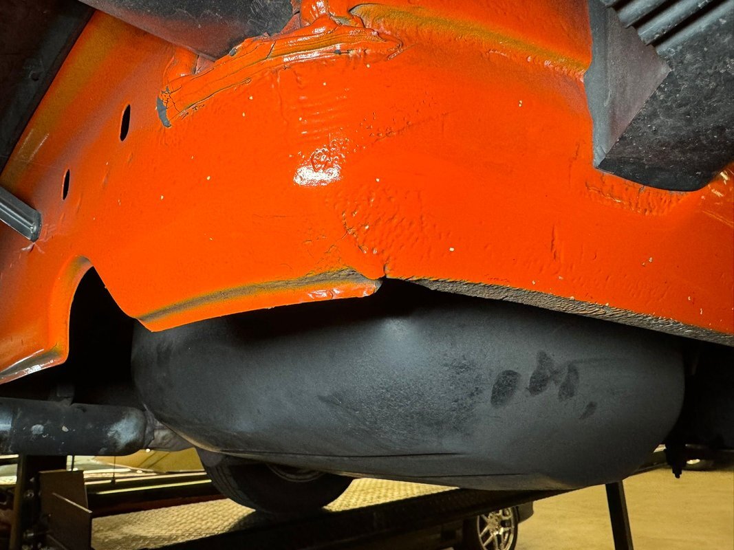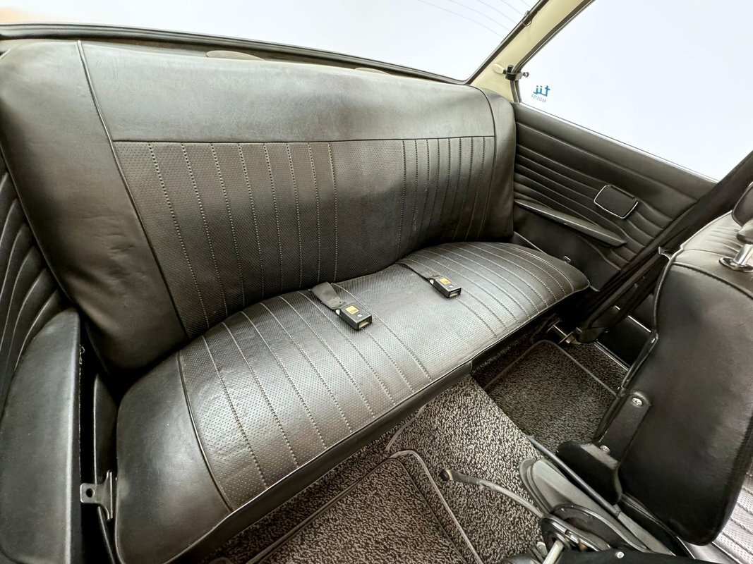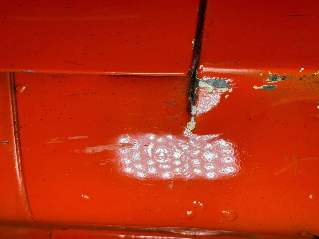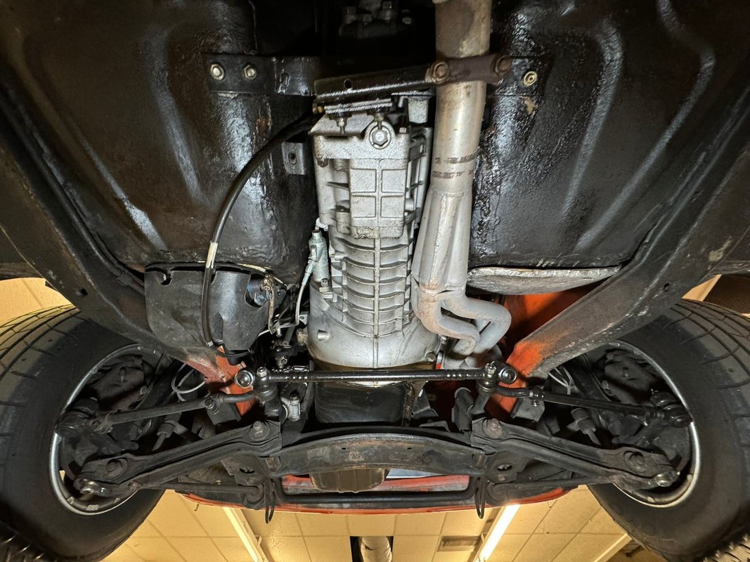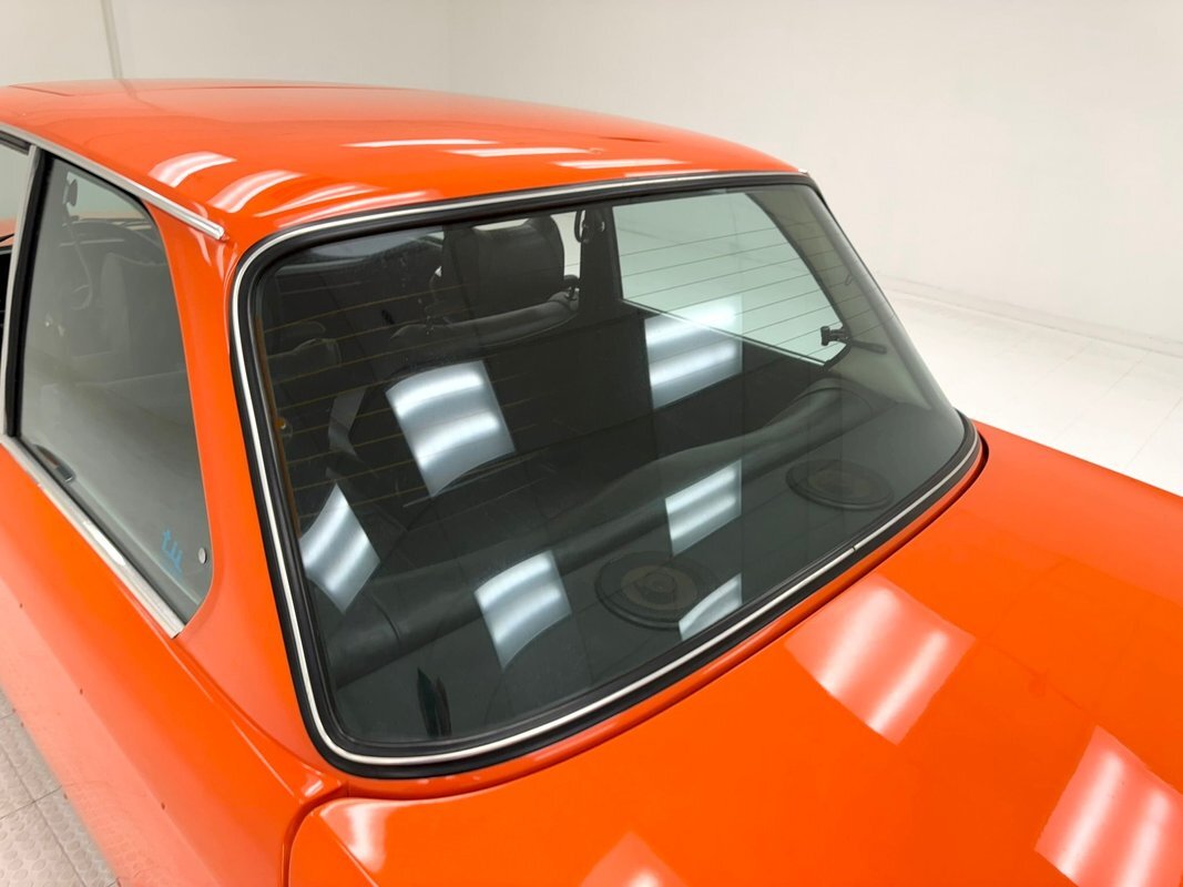 Inca Orange makes a bright appearance on every body panel and uniquely, the bumpers. If the model alone doesn't get attention, the blast of orange paint surely will. Rally lights emerge from the front bumper flaking the kidney grille. The side markers are rounded around the fender corners in a noteworthy design cue. The factory sunroof does not leak per the consignor and the original 13-inch Minilite wheels look fantastic. Tall windows on this little car create a greenhouse effect and aid in visibility for this driving machine. A square back is finished with ANSA dual exhaust tips exiting in the center. A closer look reveals some body filler repair on the rear valance, chipping paint along a bottom edge, flaking rust under some bubbles also on a lower edge, and various other rock chips, touch-ups, and bubbling on or near edge surfaces. We also note filler plugs where the body side molding once resided, but fear not as our consignor is including all the trim and attaching clips.
