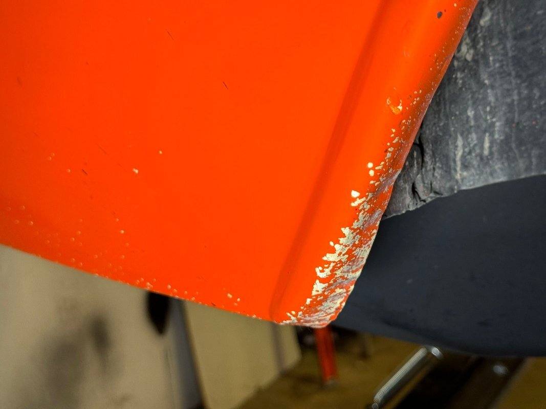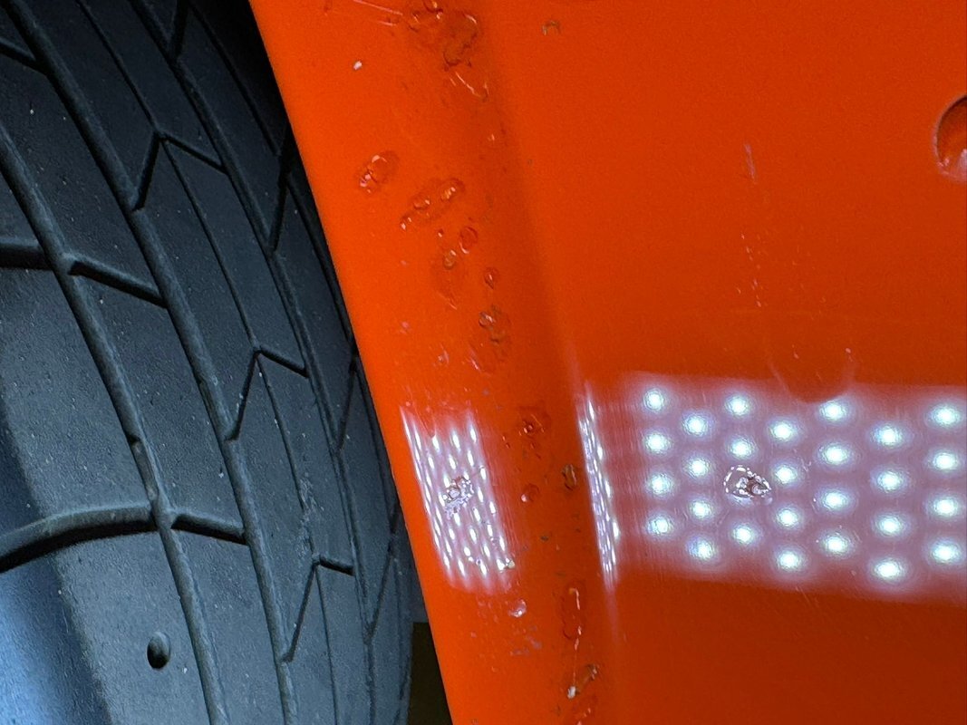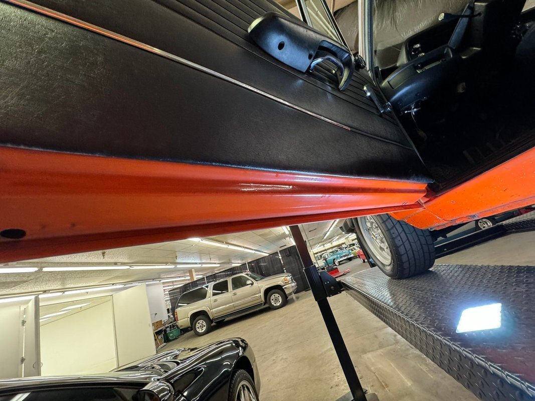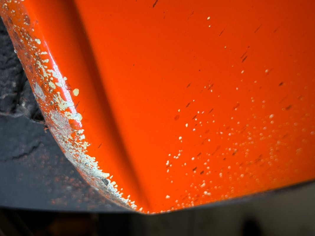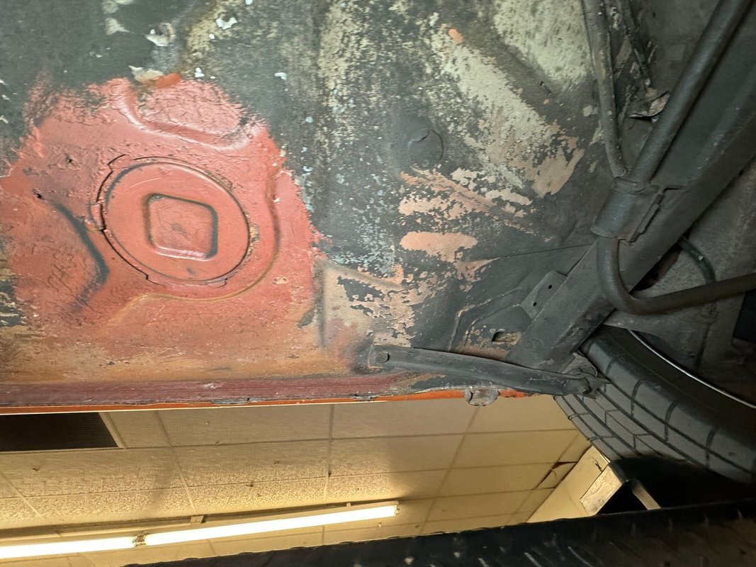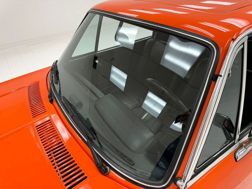 Inca Orange makes a bright appearance on every body panel and uniquely, the bumpers. If the model alone doesn't get attention, the blast of orange paint surely will. Rally lights emerge from the front bumper flaking the kidney grille. The side markers are rounded around the fender corners in a noteworthy design cue. The factory sunroof does not leak per the consignor and the original 13-inch Minilite wheels look fantastic. Tall windows on this little car create a greenhouse effect and aid in visibility for this driving machine. A square back is finished with ANSA dual exhaust tips exiting in the center. A closer look reveals some body filler repair on the rear valance, chipping paint along a bottom edge, flaking rust under some bubbles also on a lower edge, and various other rock chips, touch-ups, and bubbling on or near edge surfaces. We also note filler plugs where the body side molding once resided, but fear not as our consignor is including all the trim and attaching clips.