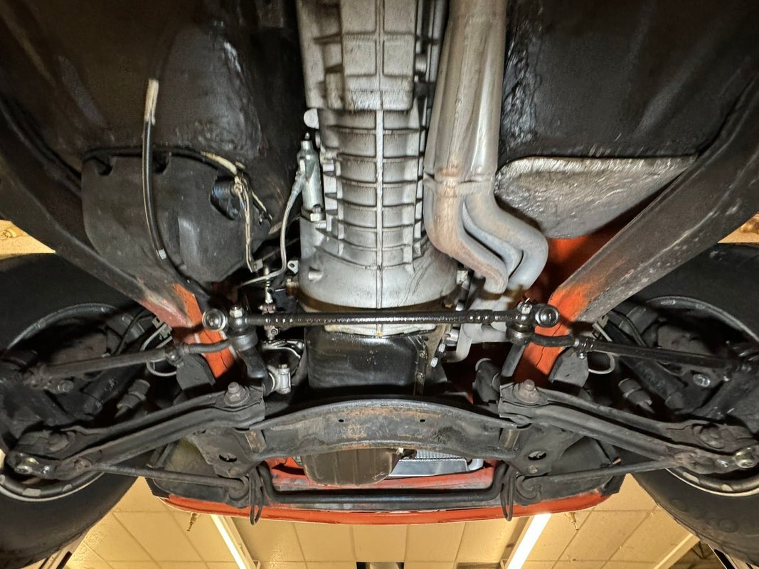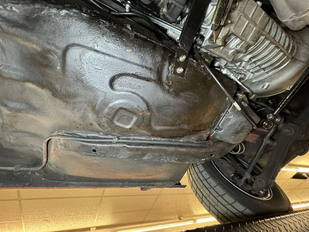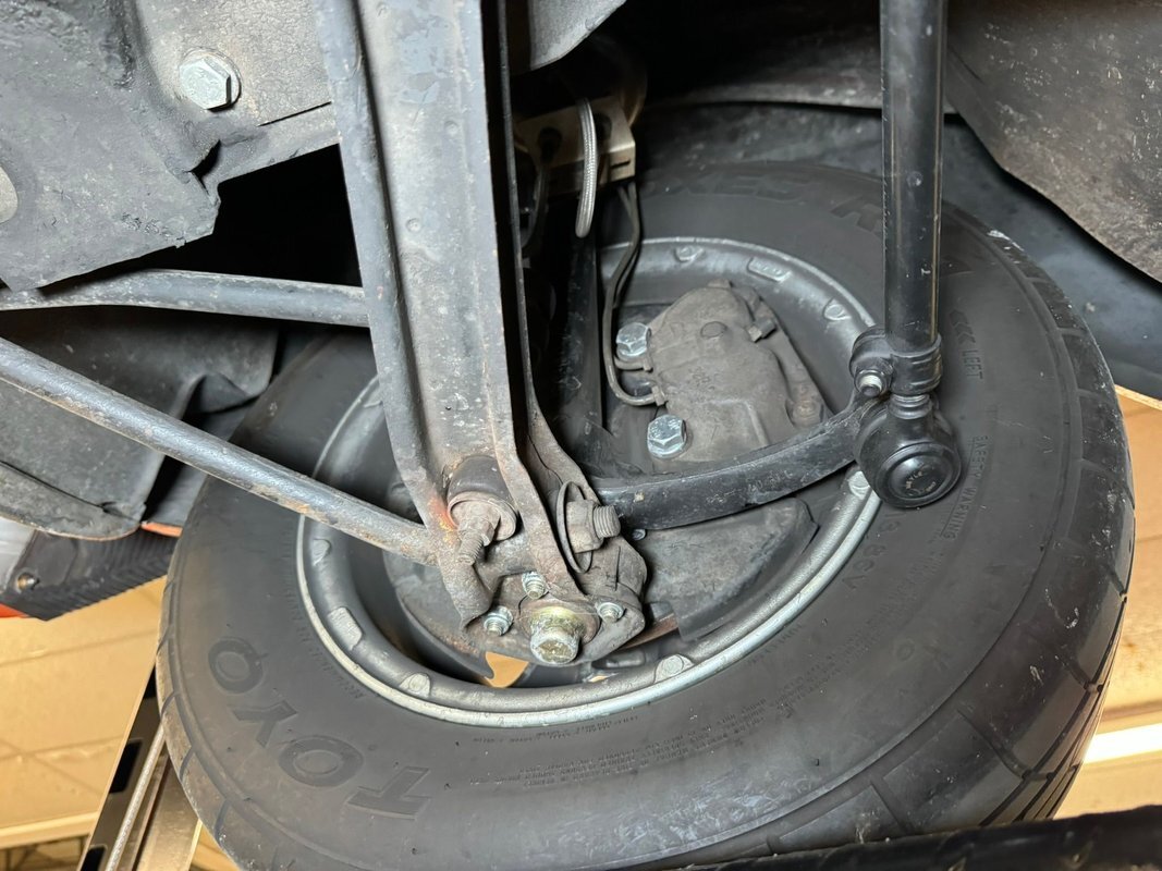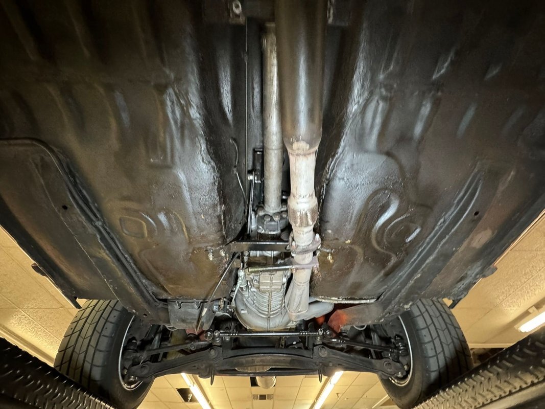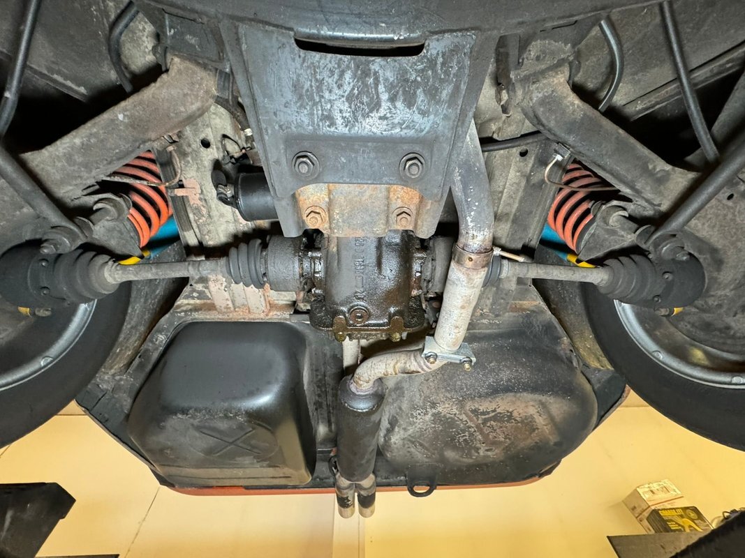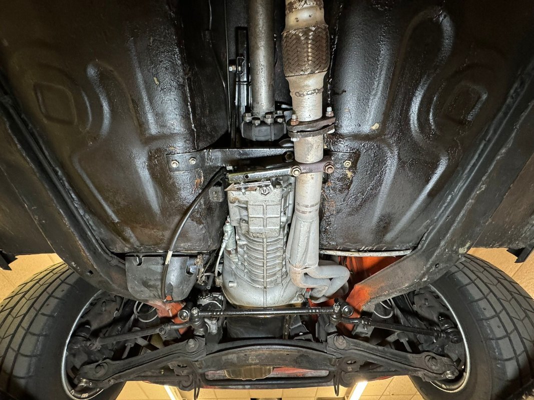 Relatively clean and driver quality underneath with no remarkable defects. The single piped Ansa exhaust flows back and splits into twin center exit tailpipes. Independent suspension with MacPherson struts are found in the front while semi-trailing arms and coil springs make up the independent rear suspension.