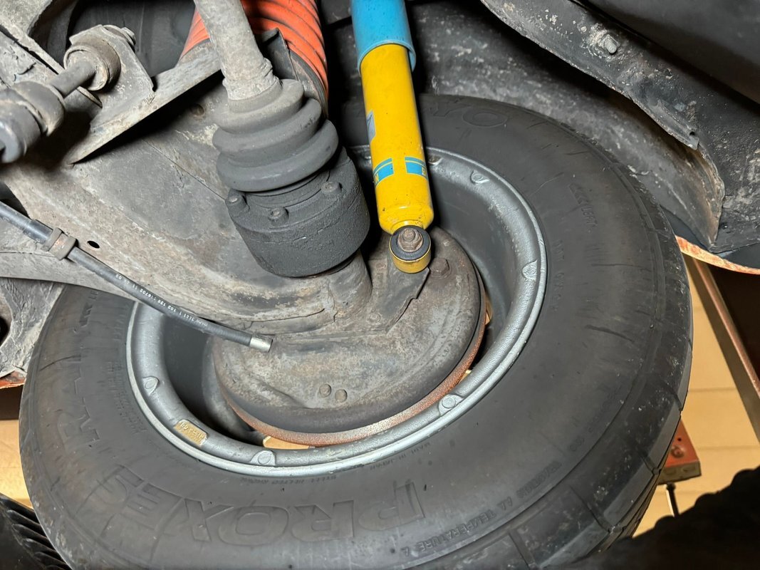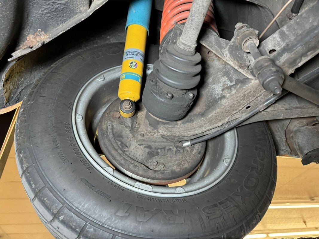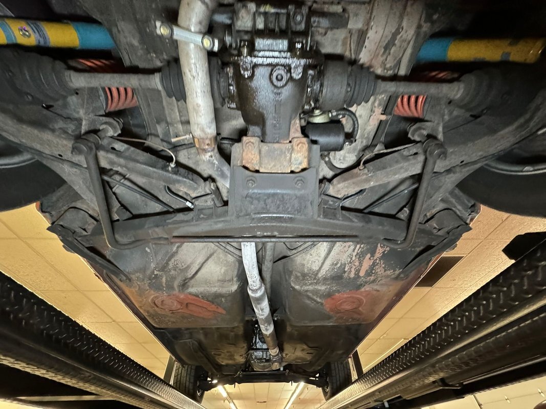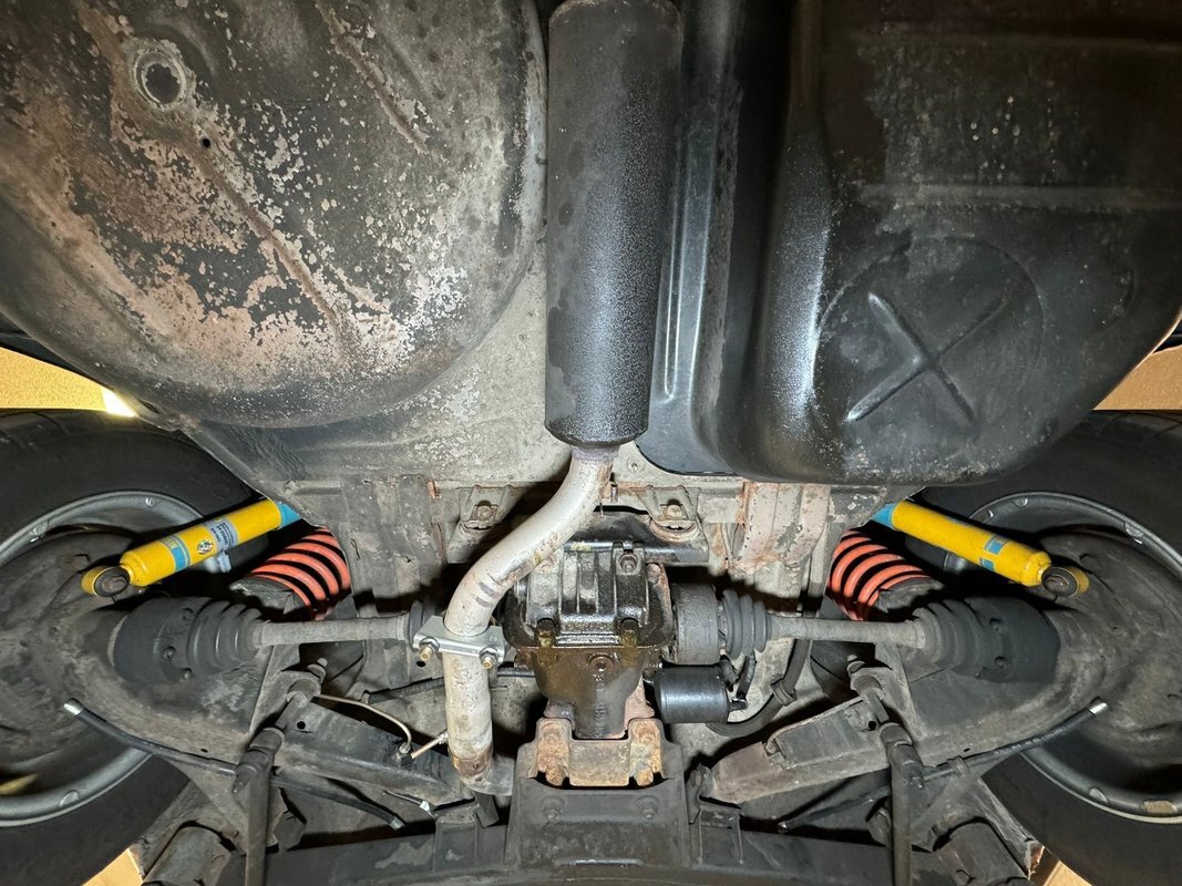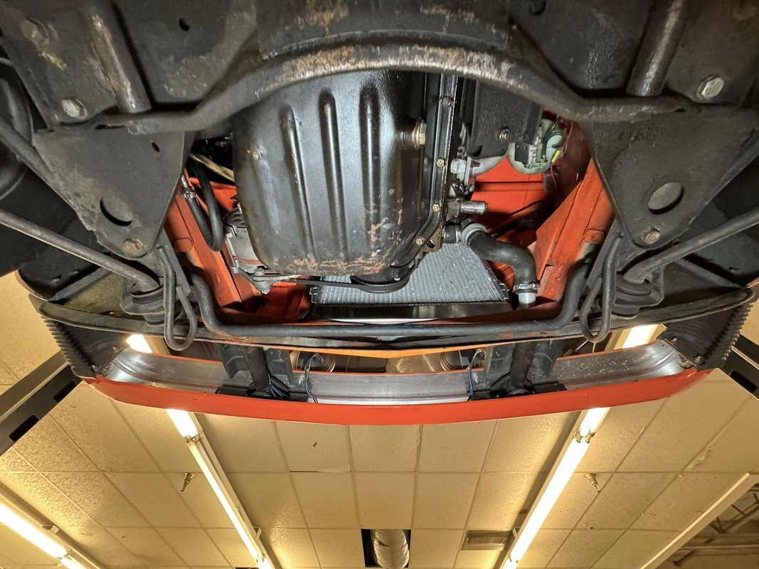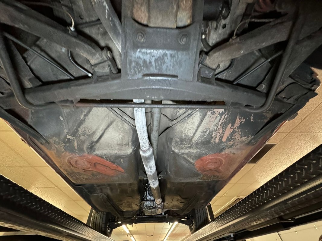 Relatively clean and driver quality underneath with no remarkable defects. The single piped Ansa exhaust flows back and splits into twin center exit tailpipes. Independent suspension with MacPherson struts are found in the front while semi-trailing arms and coil springs make up the independent rear suspension.