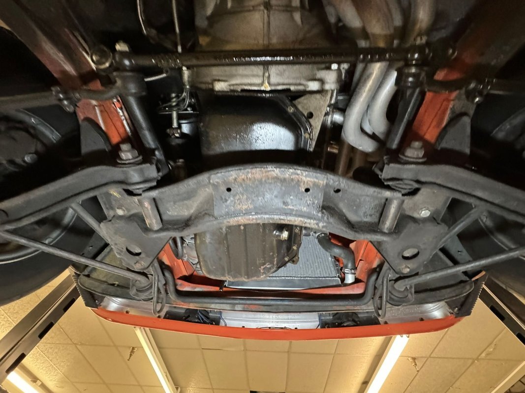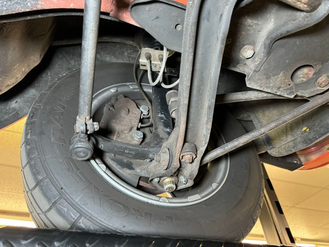 Let's start with the 2.0 liter 4-cylinder engine which is fed by dual 2-barrel Weber 45DCOE carburetors on a Korman Autoworks modified intake manifold. And that's not the only thing from Korman as the engine upgrade kit also includes a modified cylinder head, 292 degree Shrick cam, and a Stahl jet-hot coated header. A Bespoke engine brace is attached to Bespoke shock tower stiffeners, and MSD ignition provides the spark. A 5-speed manual transmission sends power to the rear where it finds 3.64 gearing. The engine bay is clean and tidy with air elements on each of the 2-barrels. A new aluminum radiator is present along with a new water pump. Disc brakes are up front with drums in the back.