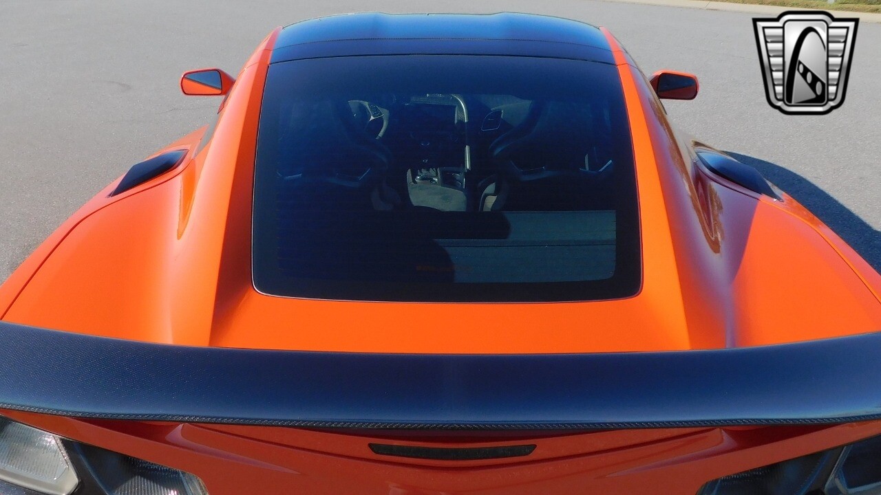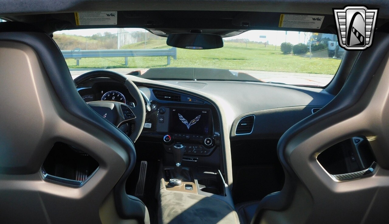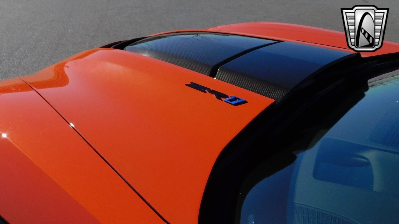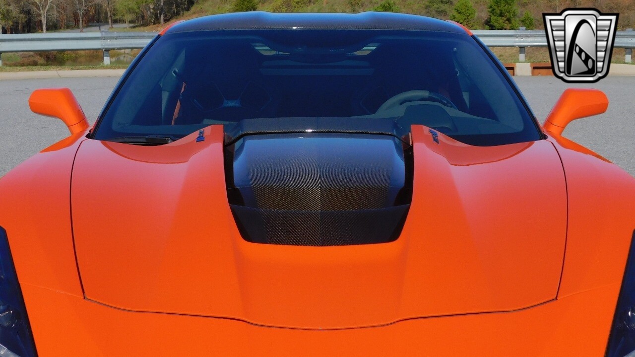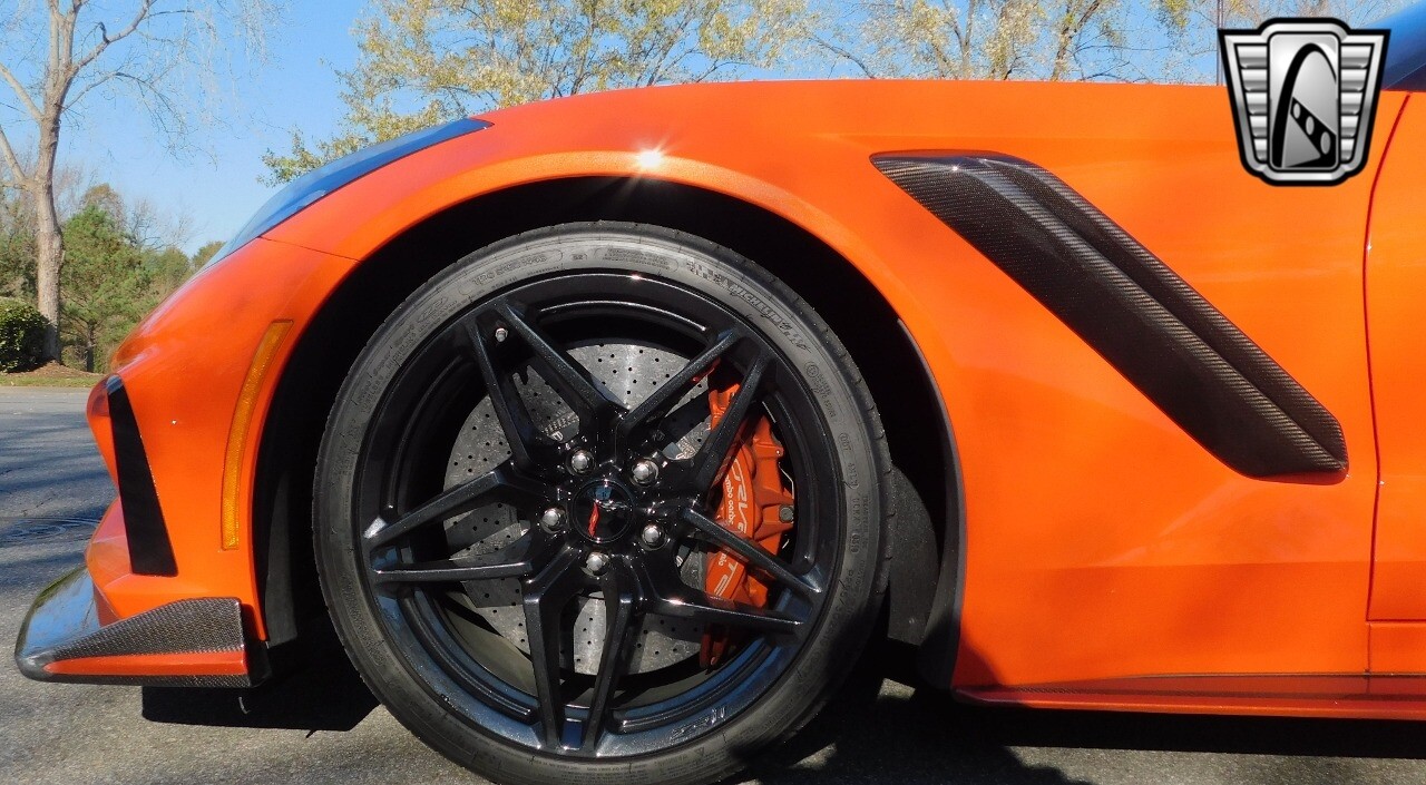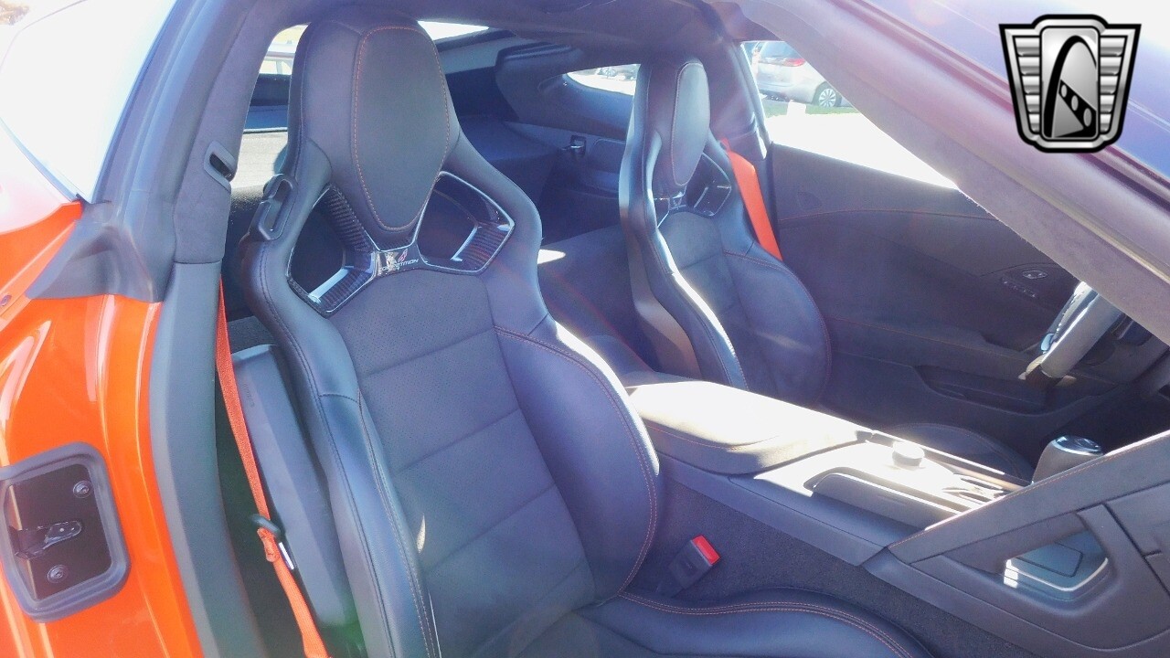 This heart-stopping machine is equipped with the available Sebring Orange Design Package. Contents include Sebring Orange Tintcoat exterior color, orange-painted calipers, ZR1 Carbon Flash-painted aluminum wheels, orange custom leather stitch, orange-painted striped ground effects, Jet Black leather seating surfaces with suede microfiber inserts with orange stitching, Competition Sport bucket seats, carbon fiber, and suede microfiber-wrapped rim, flat-bottom steering wheel, orange safety belts, ZR- logo floor mats with orange accents and bronze-tinted aluminum interior accents.