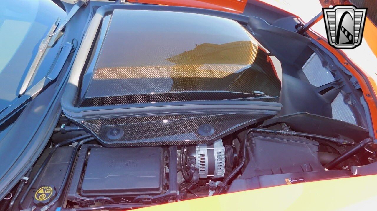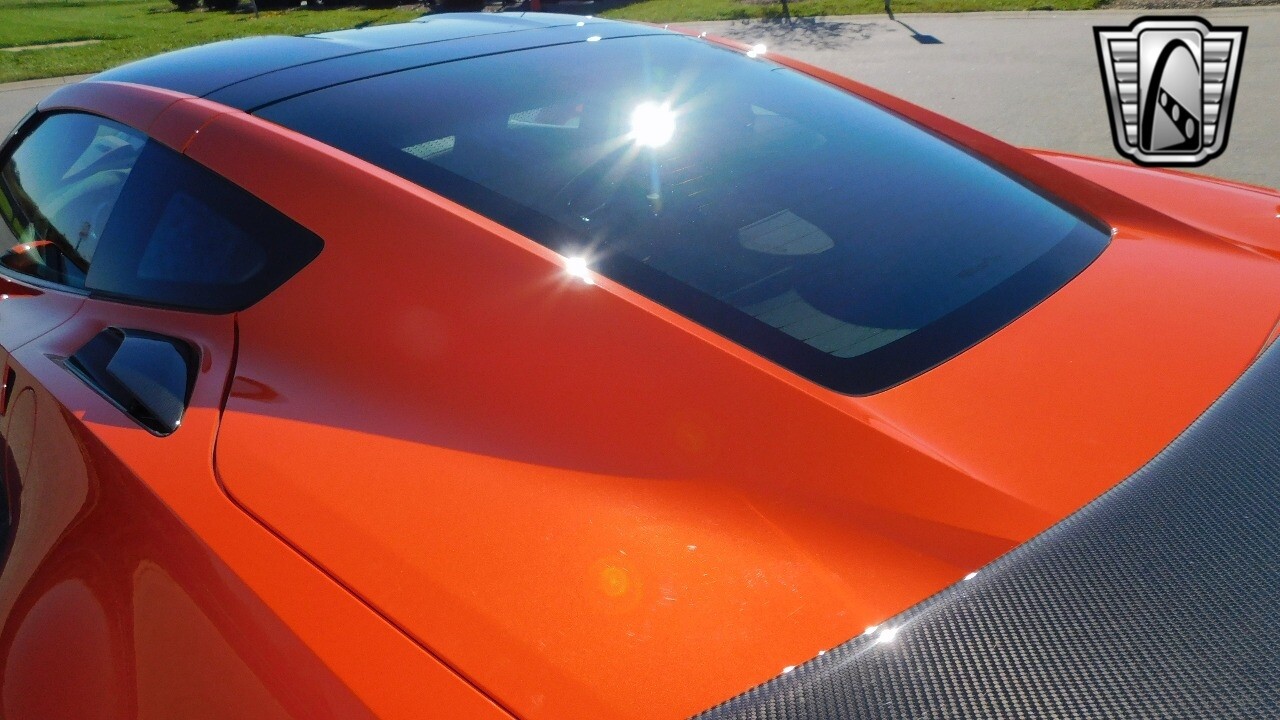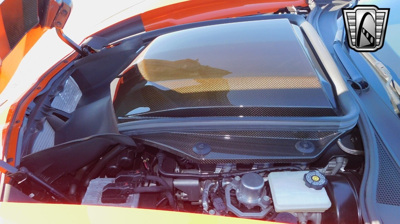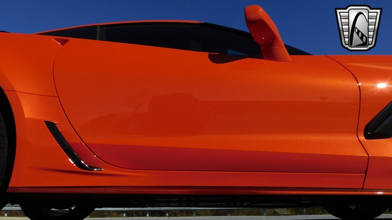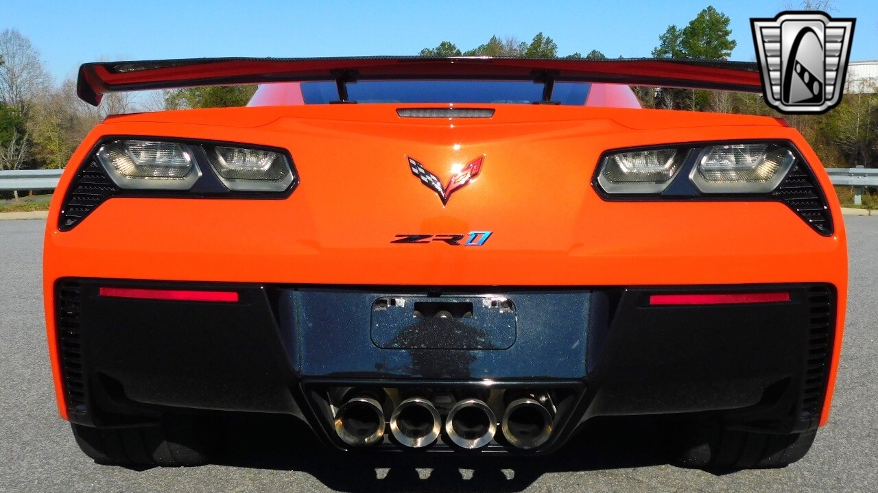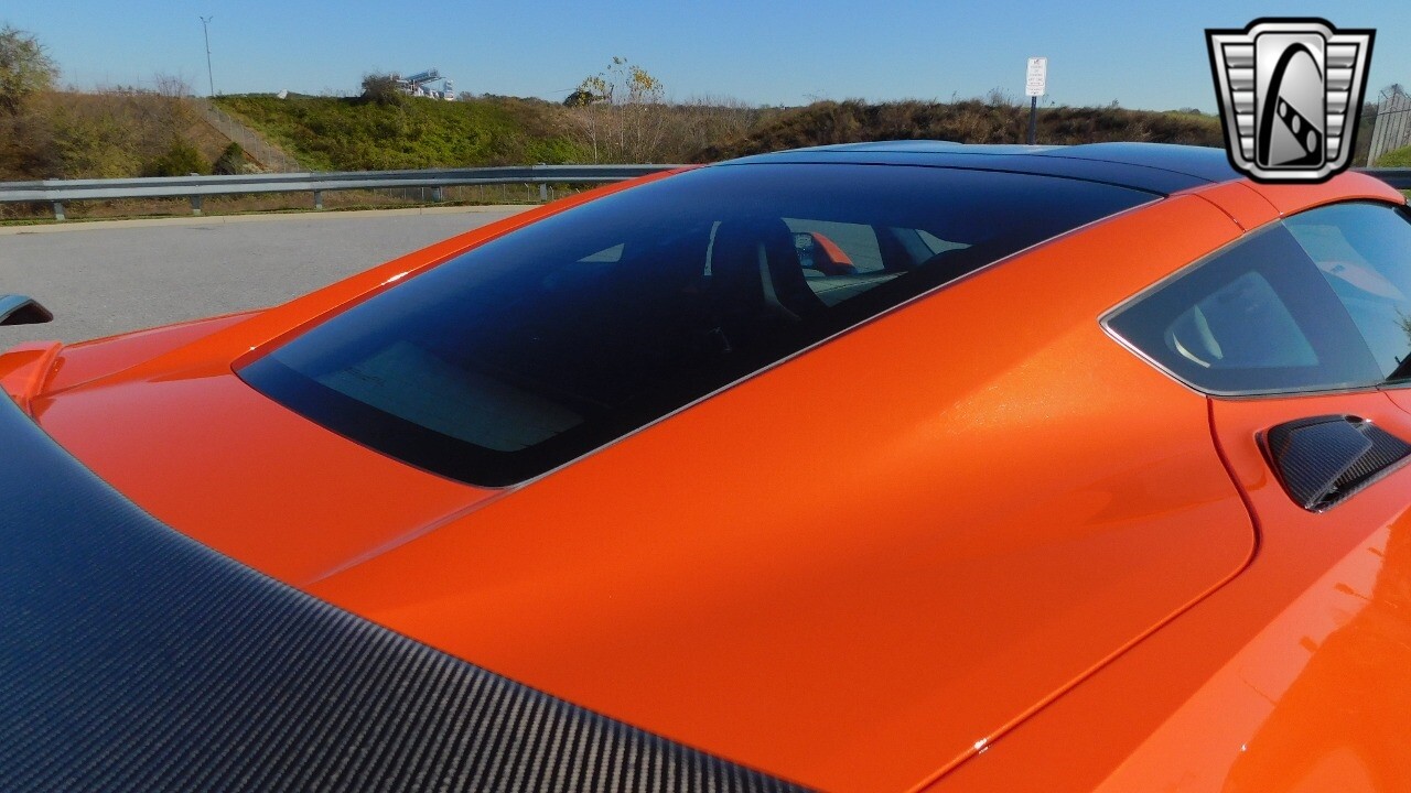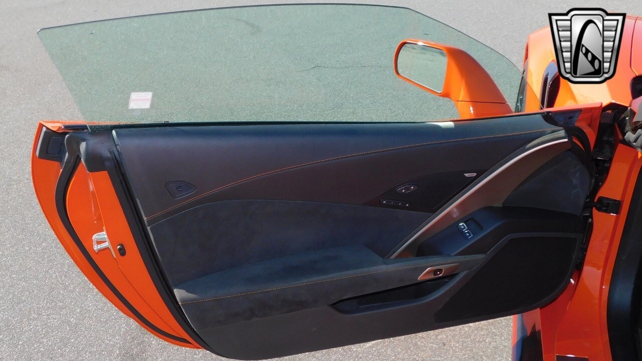 This heart-stopping machine is equipped with the available Sebring Orange Design Package. Contents include Sebring Orange Tintcoat exterior color, orange-painted calipers, ZR1 Carbon Flash-painted aluminum wheels, orange custom leather stitch, orange-painted striped ground effects, Jet Black leather seating surfaces with suede microfiber inserts with orange stitching, Competition Sport bucket seats, carbon fiber, and suede microfiber-wrapped rim, flat-bottom steering wheel, orange safety belts, ZR- logo floor mats with orange accents and bronze-tinted aluminum interior accents.