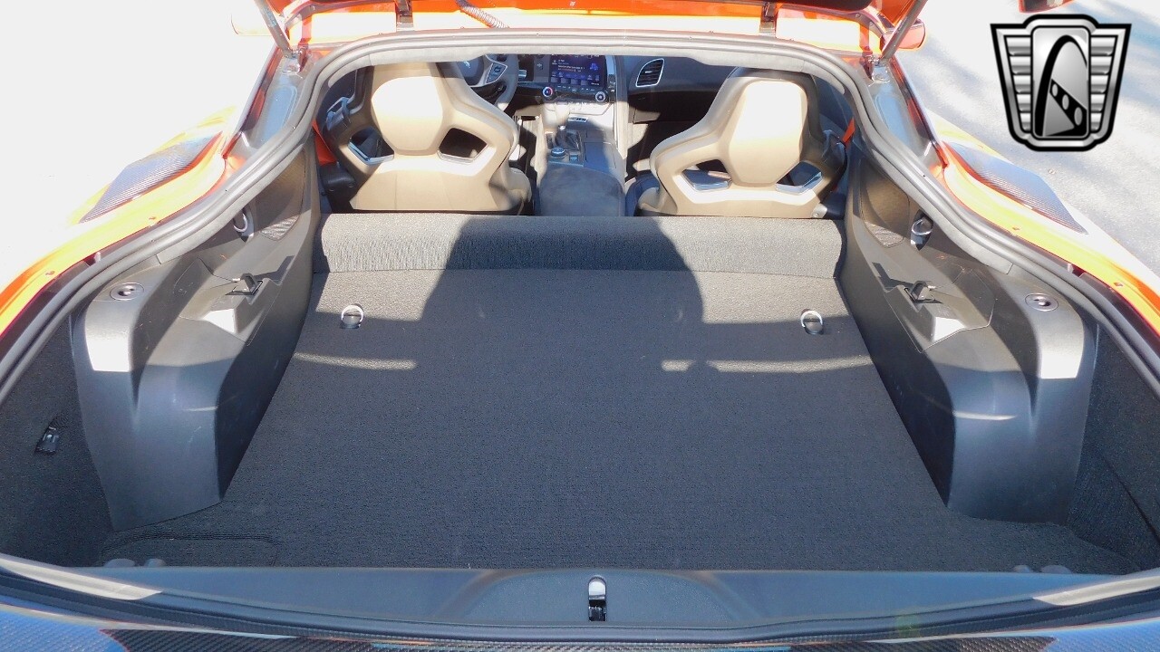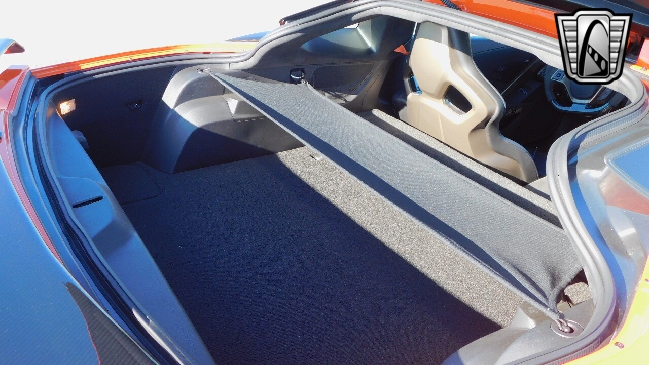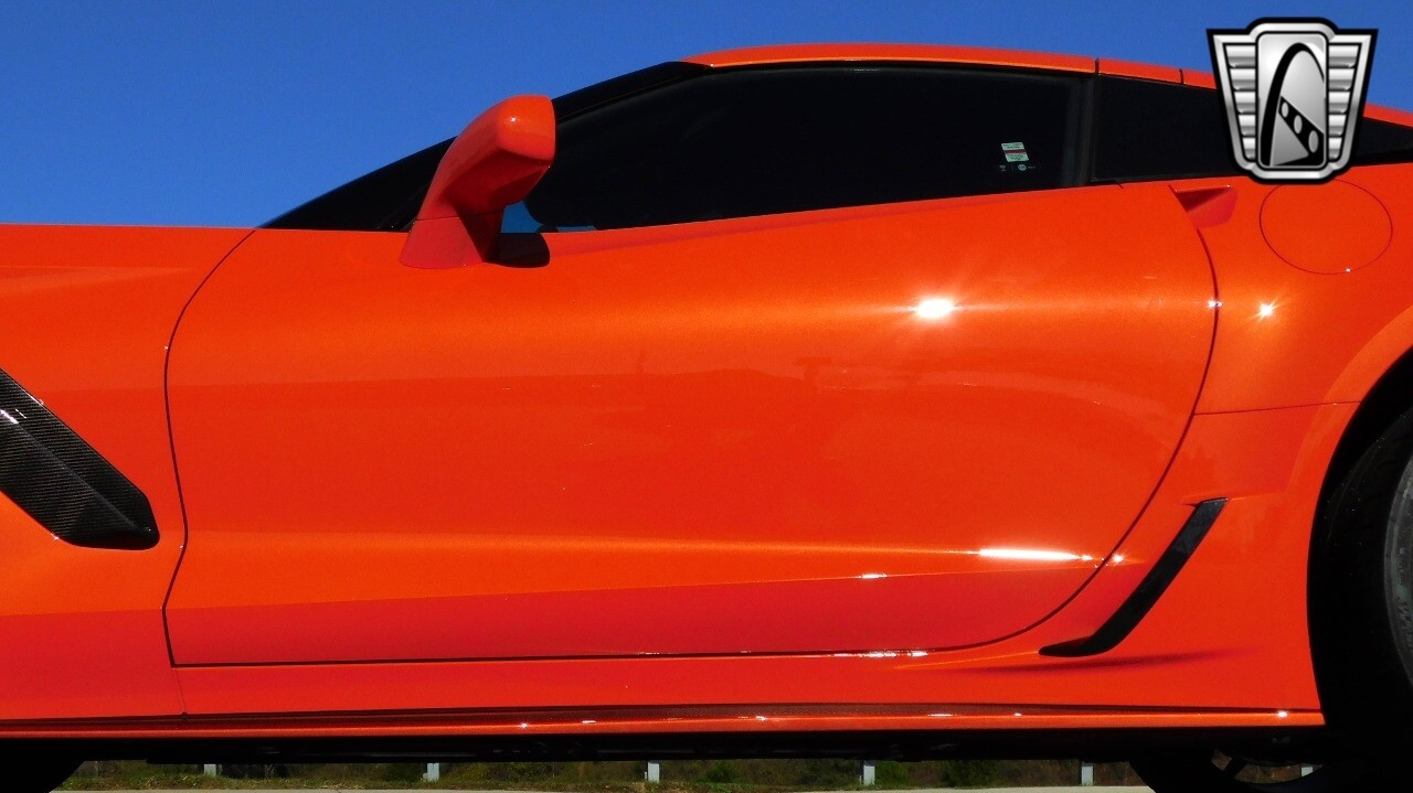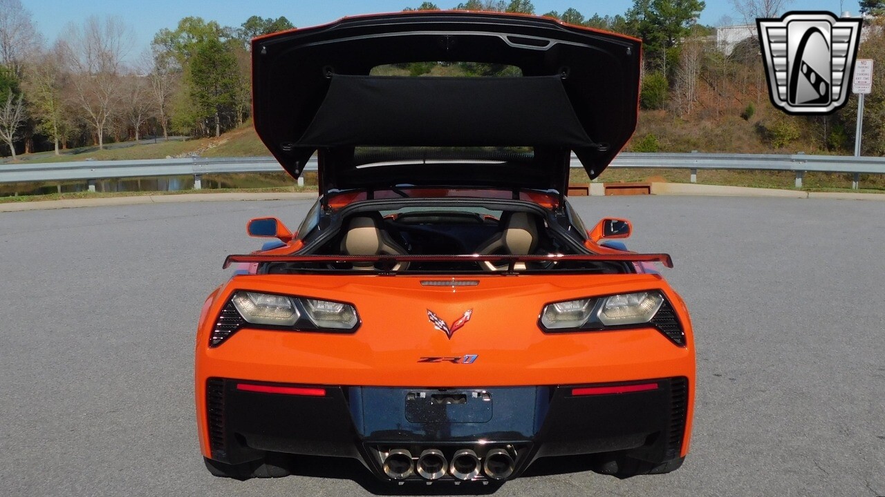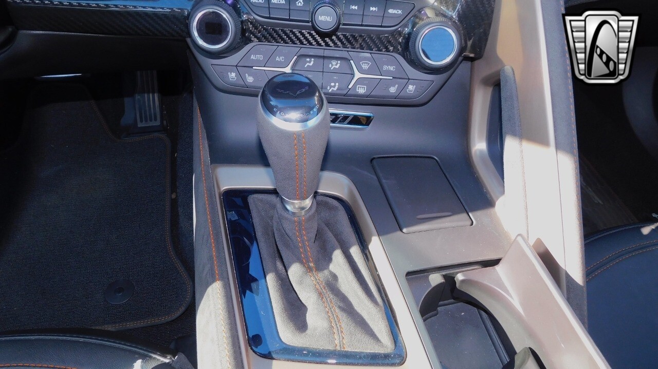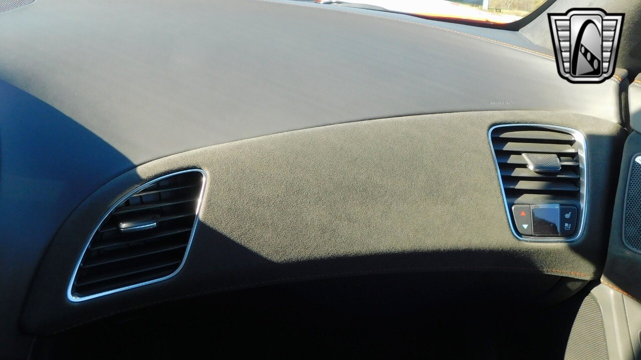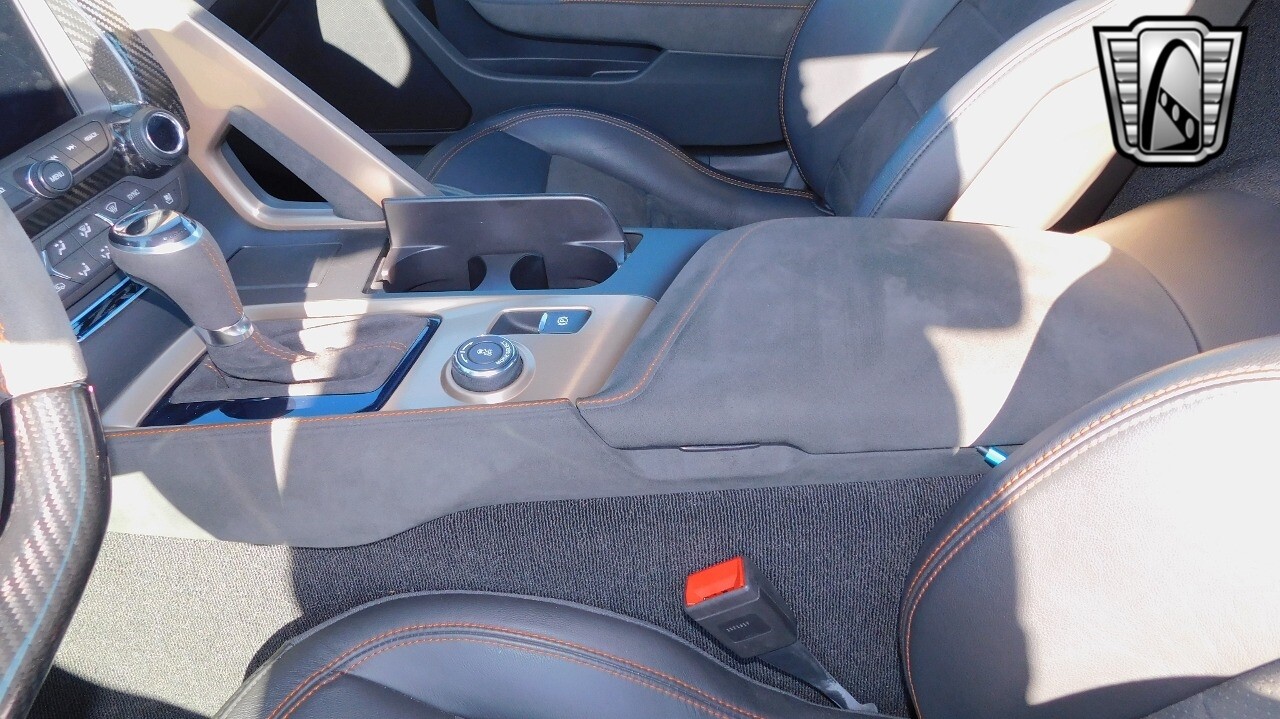 This heart-stopping machine is equipped with the available Sebring Orange Design Package. Contents include Sebring Orange Tintcoat exterior color, orange-painted calipers, ZR1 Carbon Flash-painted aluminum wheels, orange custom leather stitch, orange-painted striped ground effects, Jet Black leather seating surfaces with suede microfiber inserts with orange stitching, Competition Sport bucket seats, carbon fiber, and suede microfiber-wrapped rim, flat-bottom steering wheel, orange safety belts, ZR- logo floor mats with orange accents and bronze-tinted aluminum interior accents.