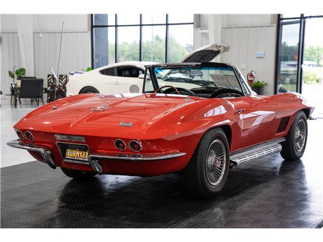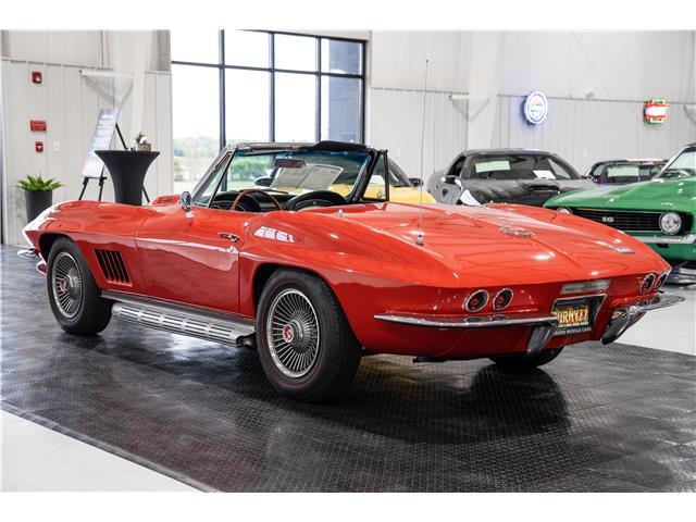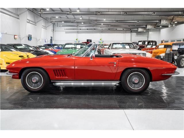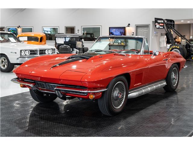 Stunning Rally Red with black stinger 1967 Corvette roadster powered by the numbers matching 427/400hp Tri-Power engine and Muncie 4 speed transmission. The paint has a deep shine and covers a super solid body with good fitment and is trimmed with new chrome bumpers and polished stainless. The black convertible top is new and fits like a glove. Originally a desirable marina blue car according to the trim tag. The factory style side exhaust lets you know this 427 Vette means business! Correct black std interior upgraded to very nice black leather interior, crisp tach and gauges, simulated wood steering wheel and stock AM/FM radio rounds out the interior. The engine compartment has been detailed to show quality standards with many new and original restored parts. The amazing undercarriage is also detailed with many new suspension parts and has an excellent frame and structure. Rolling on new bolt on Turbine wheels with new Redline tires for the perfect look and stance. If you're in the market for a beautiful and well restored 1967 Corvette, then this is your car. Contact Brian at 352-307-1968 and take the dream machine home today! Financing and transportation services are available! FEES & TAX INFORMATION - We are a licensed dealer in the State of Florida and adhere to all state and federal laws and regulations concerning the sale of a used vehicle. All applicable taxes and fees will be charged accordingly as required by the State of Florida. A fee of $495.00 will be charged to process the vehicle. Classic Car Quality Disclaimer: We do our best to inspect, drive our vehicles, and note any imperfections in the advertisement and pre-sale. However, due to the nature of classic automobiles we cannot guarantee that every function, electrical or mechanical etc., will work as it should. These components will need upkeep and attention. In addition, often these vehicles can sit for periods of time and once you begin to drive them issues can arise without warning. Please make sure you are comfortable with this before buying a vintage automobile. We did NOT build or restore the vehicle. Vehicles are sold AS-IS, with all faults known/unknown and with no implied warranty. Pre-Purchase inspections are welcome, we describe these vehicles to the best of our knowledge.