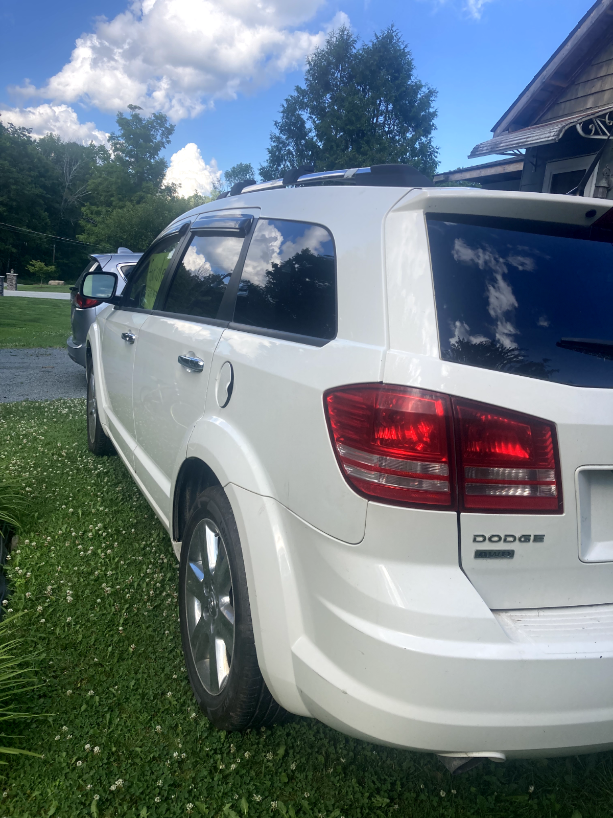 White 2010 Dodge Journey has almost 176K miles . Just had a new alternator put in. It has a problem with the engine not idling or revving like it should but it does drive. Has some minor cosmetic damage, some rust above rear wheels.