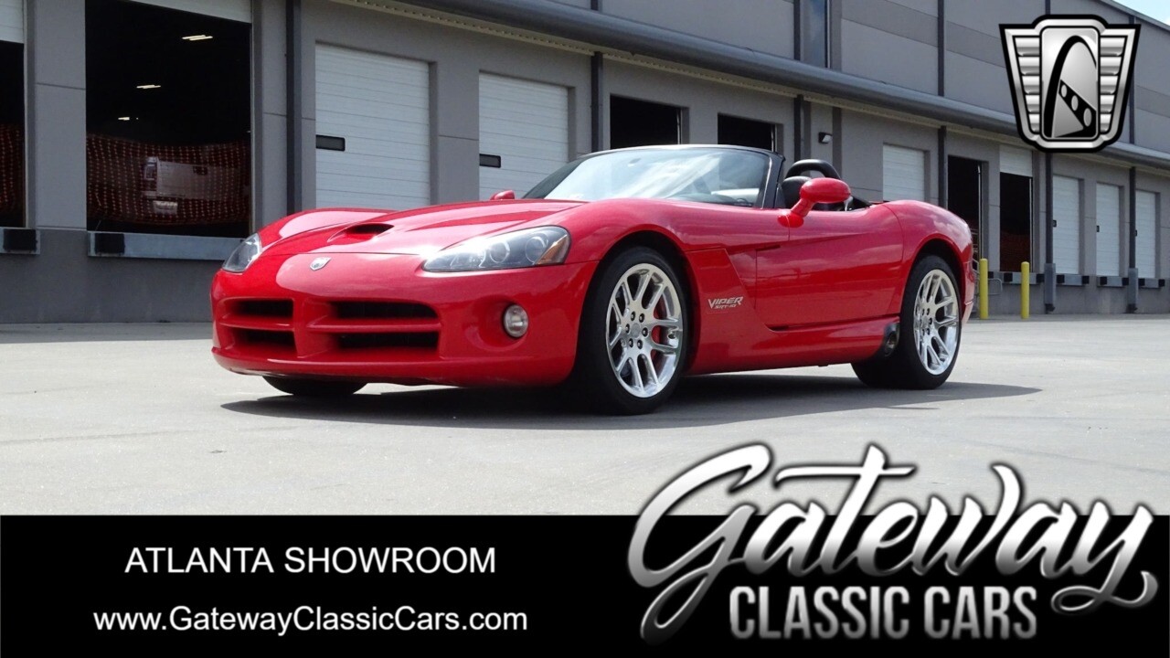 Gateway Classic Cars of Atlanta is proud to present this 2004 Dodge Viper. The Dodge Viper is a sports car that was manufactured by Dodge (by SRT for 2013 and 2014), a division of American car manufacturer FCA US LLC from 1992 until 2017, having taken a brief hiatus in 2007 and from 2010 to 2012. Production of the two-seat super car began at New Mack Assembly Plant in 1991 and moved to Conner Avenue Assembly Plant in October 1995. The 0-60 mph time on a Viper varies from around 3.5-seconds to 4.5 seconds. Top speed ranges from 160 mph to over 200 mph, depending on variant and year. The Dodge Viper underwent a major redesign in 2002, courtesy of DaimlerChrysler's Street and Racing Technology group, taking cues from the Dodge Viper GTS-R concept presented in 2000. The new Viper SRT-10, which replaced both the GTS and the RT/10, was heavily restyled with sharp, angled bodywork. The engine's displacement was increased to 8.3 L; 505.6 cu in (8,285 cc), which, with other upgrades, increased the maximum power output to 500 hp (507 PS; 373 kW) at 5,600 rpm and 525 lbft (712 Nm) of torque at 4,200 rpm from the factory. Despite the power increase, the engine weight was reduced to about 500 lb (230 kg). The chassis was also improved, becoming more rigid and weighing approximately 80 lb (36 kg) less than the previous model.