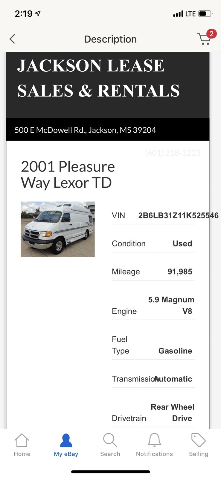 New engine installed about 3 years ago. $2,000 Stereo system by Miami Pro Audio (award winer) for MASSIVE sound. Great tailgating vehicle. Rums great. Some minor issues: Refrigerator doesnt work, needs replacement. Prepped for solar panel with electronics, but haven't installed panel yet.Vehicle Details