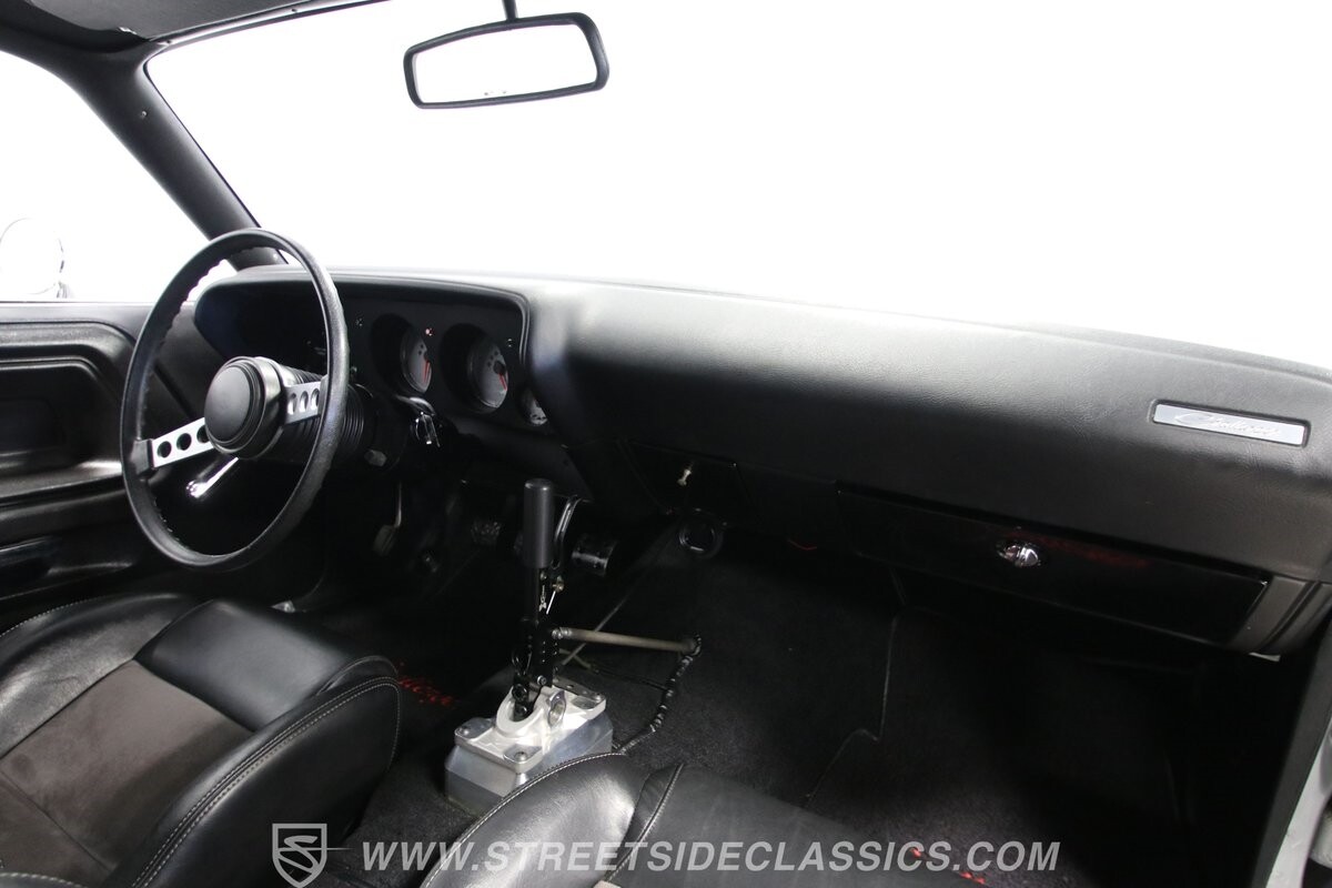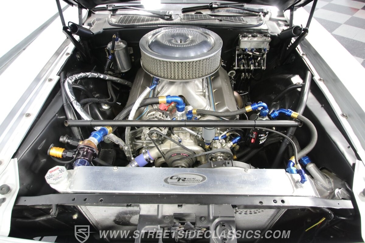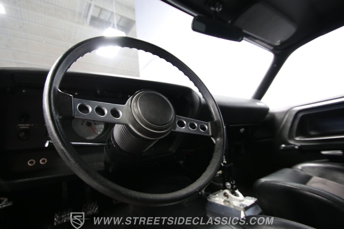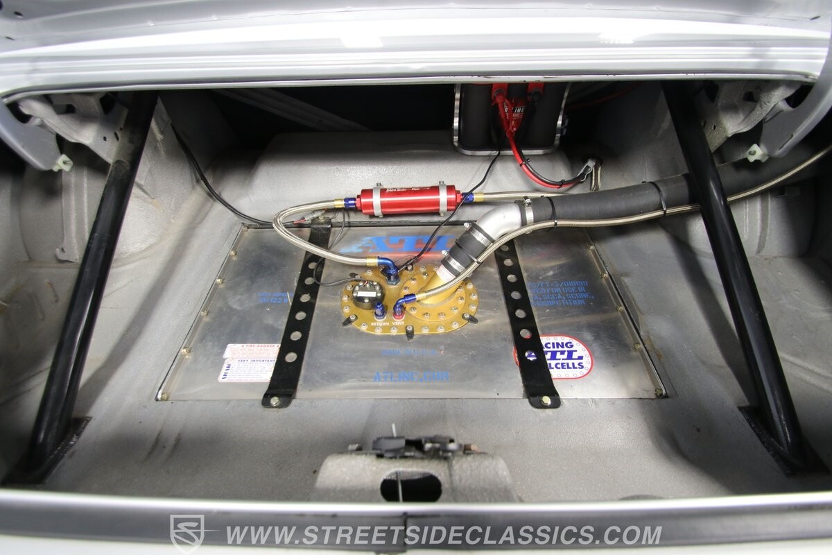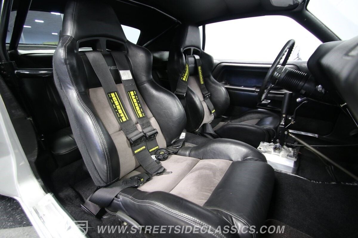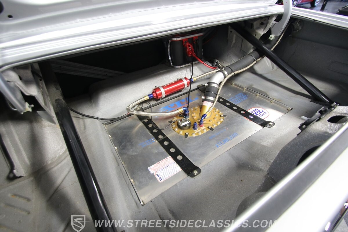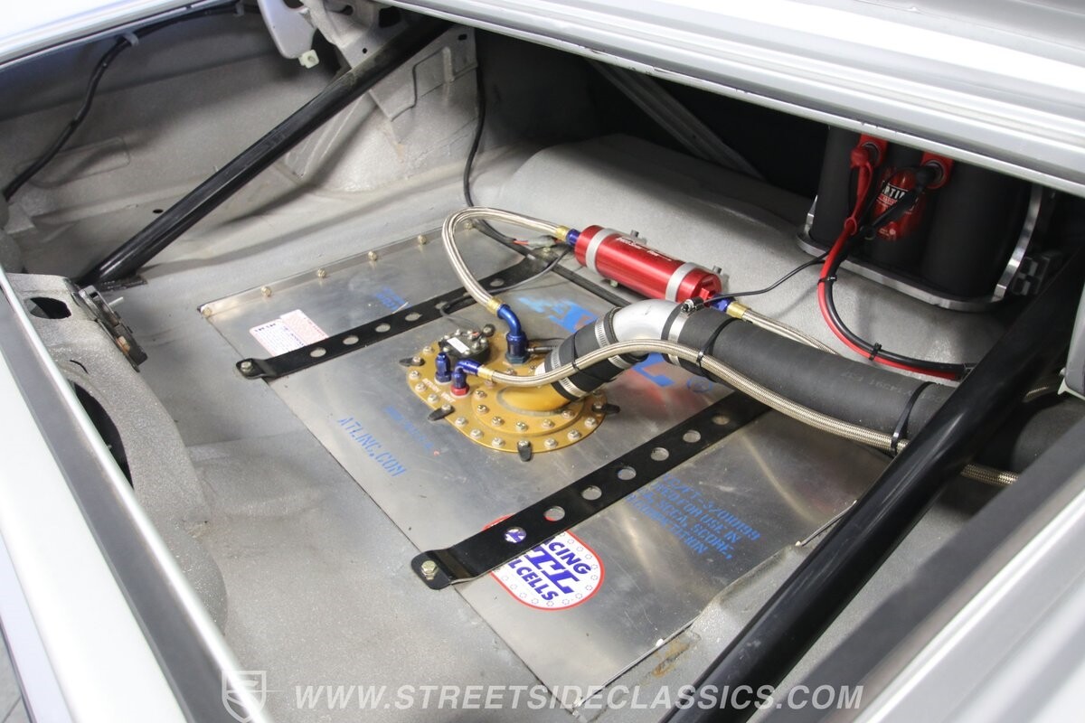 With so few miles on the build, even the clean and mean presentation of the motor really showcases the freshness. This is a legendary 440 cubic-inch V8, and this one was built by the masters at Ernie Elliott, Inc. Oh yes, this one has a true NASCAR pedigree, and the build even utilizes an R5 aluminum racing block. It also has a Holley 850 CFM four-barrel carburetor, high-rise intake, steel braided lines, AN fittings, dual Crane ignition boxes, dry sump oil system, and a C&R racing radiator. Long tube headers add even more power before feeding into an H-pipe dual exhaust with Borla mufflers. The XTRAC sequential six-speed gearbox is a true race-ready piece, and even includes a Tilton five-disc carbon clutch and Quick Time bellhousing. This feeds a Driveshaft Shop carbon fiber driveshaft on its way to the Speedway Engineering floating Ford 9-inch 5.00 rear with TruTrac differential. As you look at the undercarriage photos, you're going to see a serious investment in the suspension with a reinforced tubular front end, thick Schroeder sway bar, and Hyperco rear composite rear leaf springs. Add in power steering, modern ZR-rated tires, and four-wheel disc brakes, and you know this restomod knows how to bring its power to the streets.