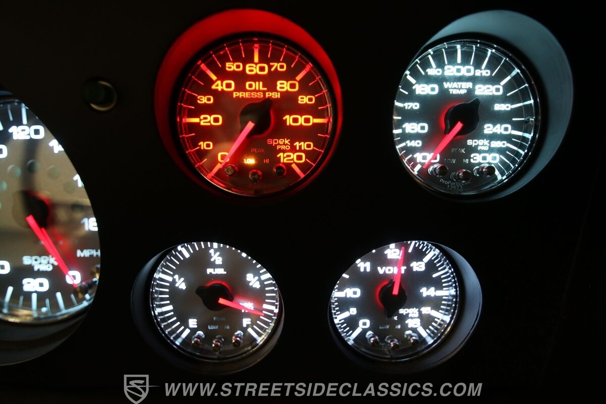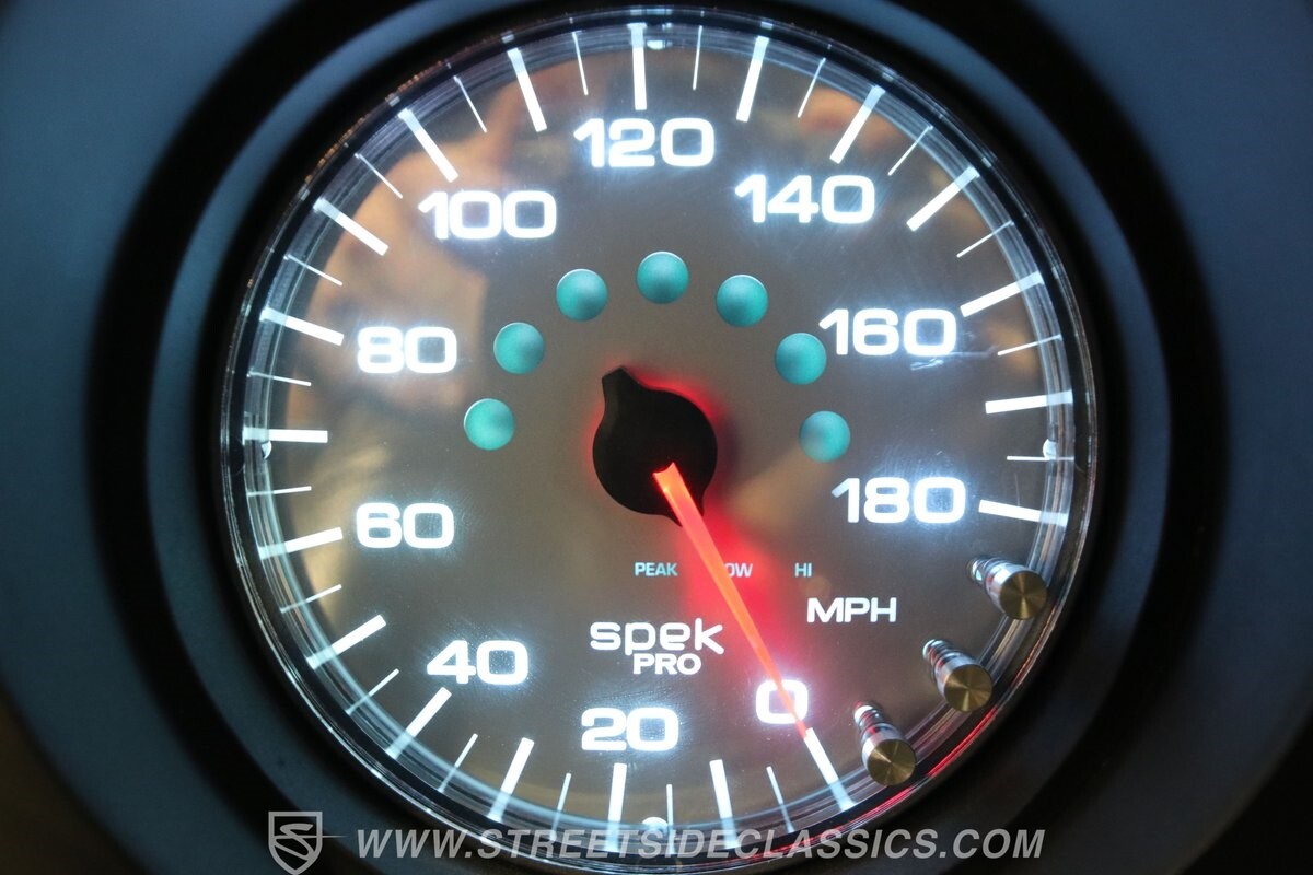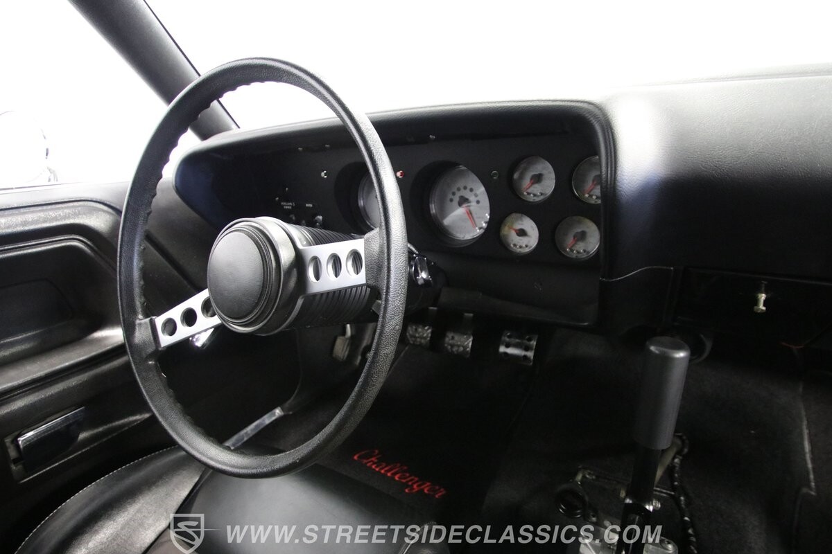 The interior continues to tell everyone it's serious about performance. Those modern Viper sports seats up front keep you planted far better than anything that came out of the '70s, and the four-point harnesses are there to tell you this Mopar is the real deal. The belts connect into the roll cage that adds real strength as it extends all the way into the trunk. This has fundamentals, like the door panels and carpeting. There are even cool classic details, like the Mopar sports steering wheel. But with the upgraded XTRAC sports shifter and dominating glow of the Spek Pro gauges, you absolutely know this is a restomod.