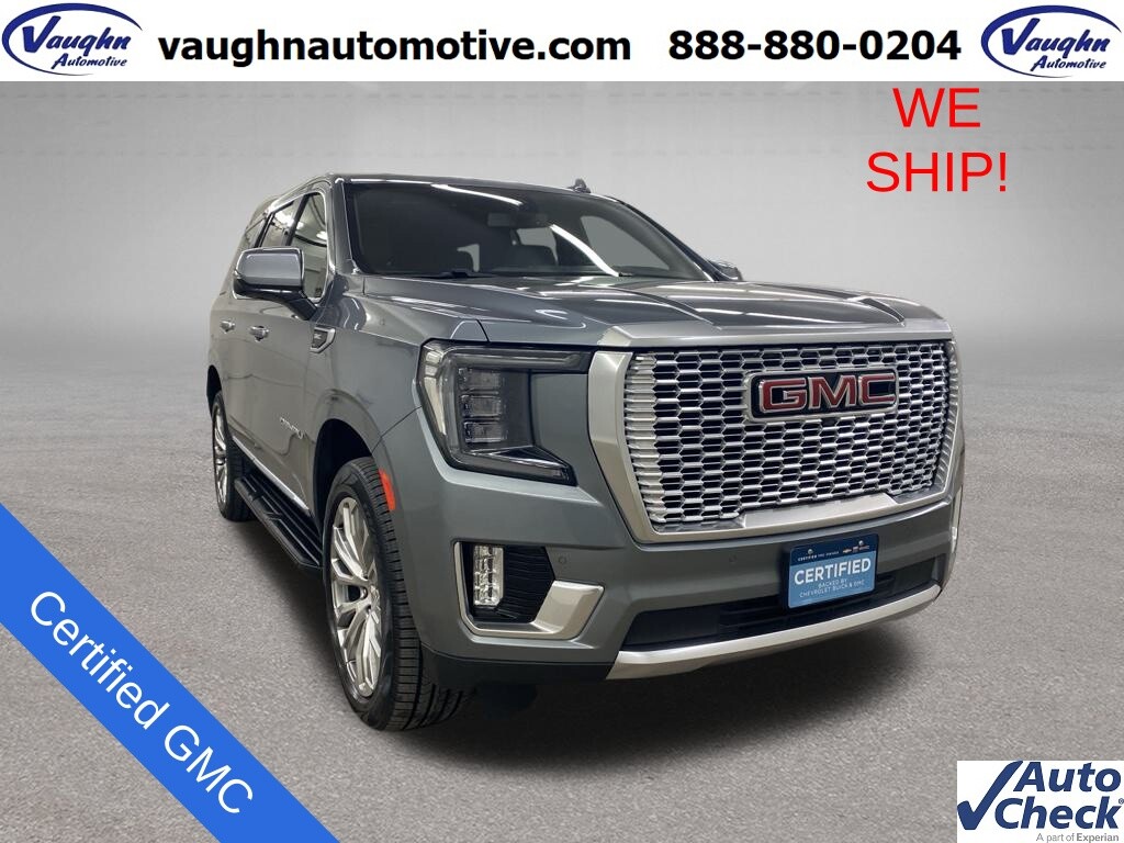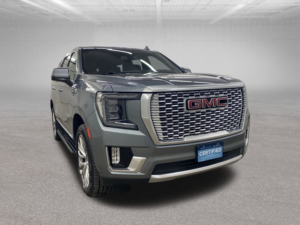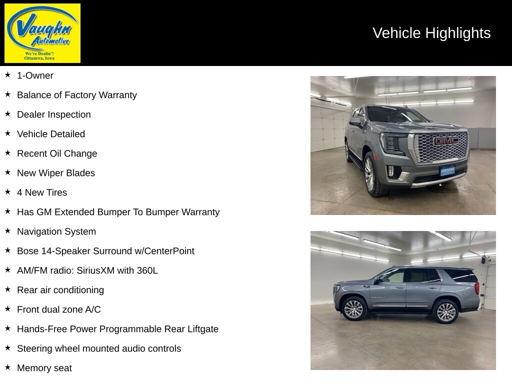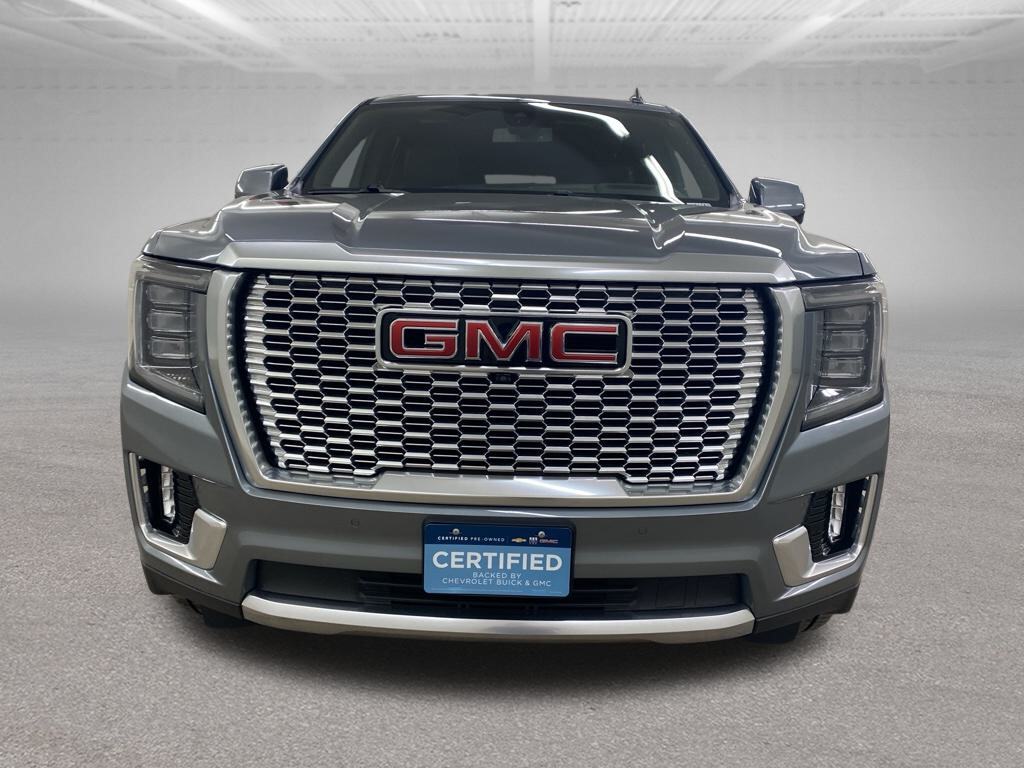 Certified. 1-Owner, Balance of Factory Warranty, Dealer Inspection, Vehicle Detailed, Recent Oil Change, New Wiper Blades, 4 New Tires, Has GM Extended Bumper To Bumper Warranty, 10-Speed Automatic with Overdrive, 4WD, Jet Black w/Perforated Leather Seating Surfaces, AM/FM radio: SiriusXM with 360L, Auto High-beam Headlights, Bose 14-Speaker Surround w/CenterPoint, Dual-Pane Panoramic Power Sunroof, Electronic Stability Control, Emergency communication system: OnStar and GMC Connected Services capable, Front & Rear Park Assist, Front dual zone A/C, Front fog lights, Fully automatic headlights, Garage door transmitter, Hands-Free Power Programmable Rear Liftgate, Heads-Up Display, Heated & Ventilated Driver & Front Passenger Seats, Heated Front Seats, Heated rear seats, Heated steering wheel, Hill Descent Control, Lane Change Alert w/Side Blind Zone Alert, Memory seat, Navigation System, Power Liftgate, Rear air conditioning, Steering wheel mounted audio controls, Ventilated front seats, Wireless Charging. EcoTec3 6.2L V8 Satin Steel Metallic 2022 GMC Yukon Denali Priced below KBB Fair Purchase Price!