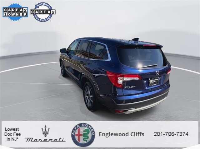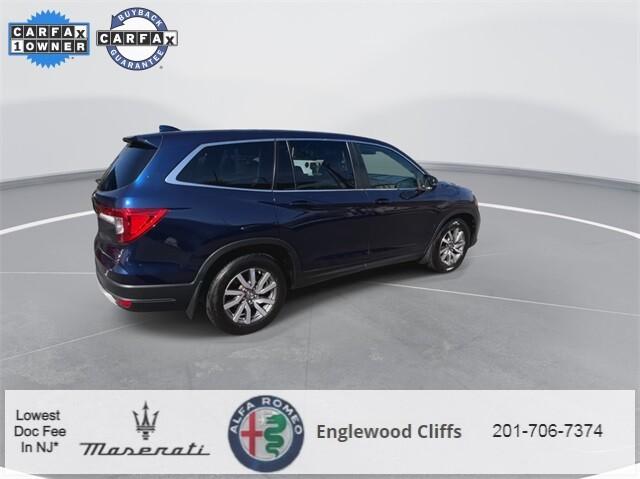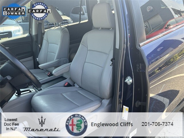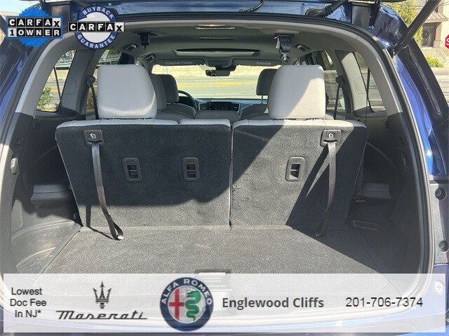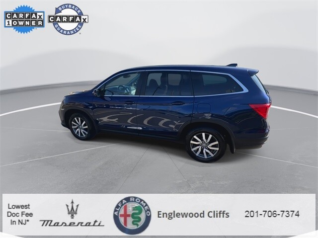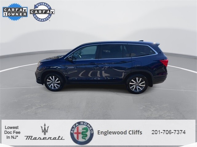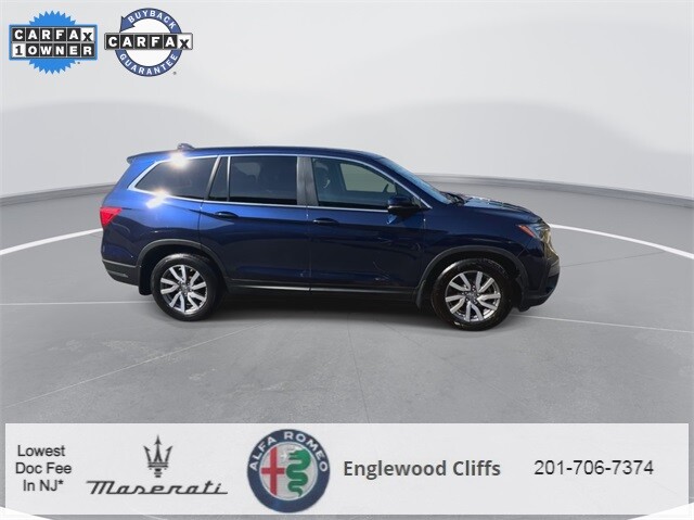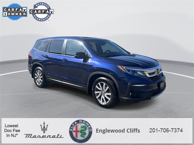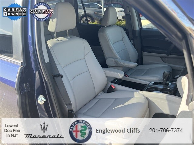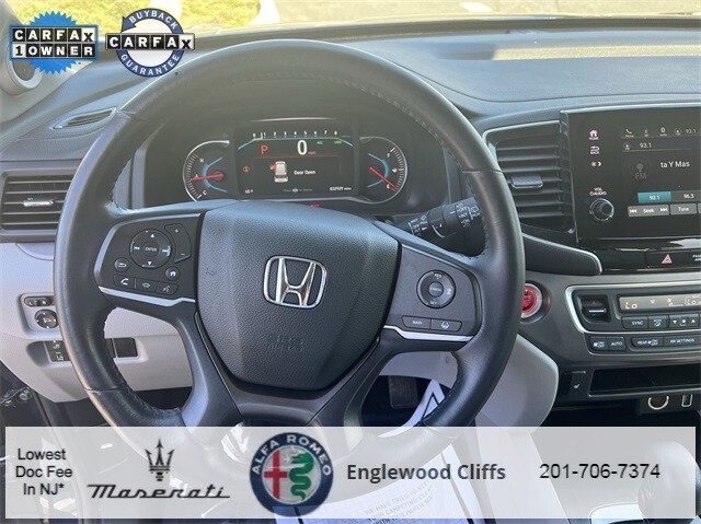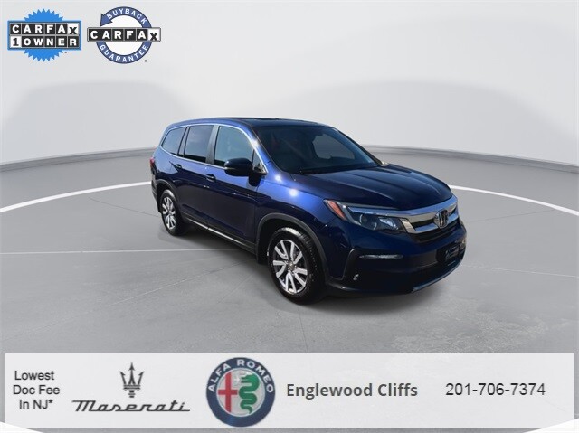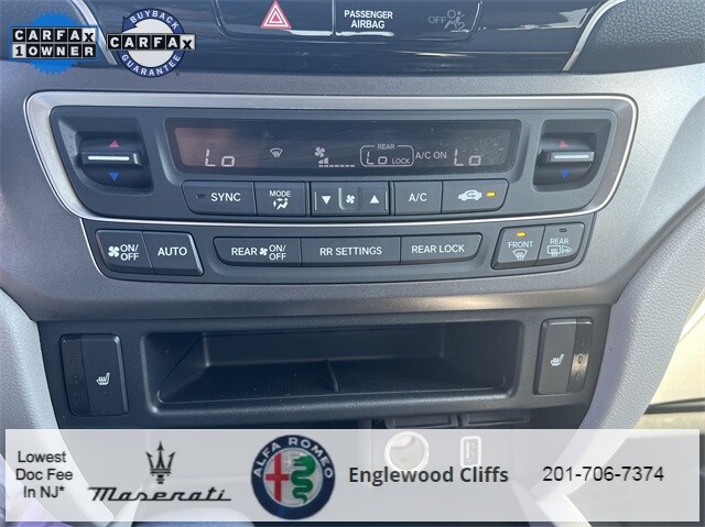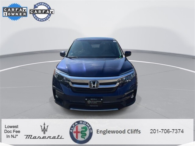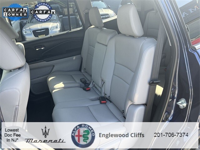 This Pilot EX-L is nicely equipped with A/V remote: CabinControl, Apple CarPlay/Android Auto, Auto High-beam Headlights, Auto-dimming Rear-View mirror, Automatic temperature control, Blind Spot Information (BSI) System warning, Brake assist, Electronic Stability Control, Exterior Parking Camera Rear, Forward collision: Collision Mitigation Braking System (CMBS) + FCW mitigation, Four wheel independent suspension, Front dual zone A/C, Fully automatic headlights, Garage door transmitter: HomeLink, Heated door mirrors, Heated Front Bucket Seats, Illuminated entry, Lane departure: Lane Keeping Assist System (LKAS) active, Memory seat, Outside temperature display, Overhead console, Panic alarm, Power door mirrors, Power driver seat, Power Liftgate, Power moonroof, Power passenger seat, Power steering, Power windows, Radio data system, Radio: 215-Watt Audio System, Rear air conditioning, Rear window defroster, Rear window wiper, Reclining 3rd row seat, Remote keyless entry, Security system, Speed control, Speed-sensing steering, Steering wheel mounted audio controls, Traction control, Turn signal indicator mirrors, 18 Machine-Finished Alloy Wheels, 3rd row seats: split-bench, 4-Wheel Disc Brakes, 4.25 Axle Ratio, 7 Speakers, ABS brakes, Air Conditioning, Alloy wheels, AM/FM radio: SiriusXM, Bumpers: body-color, Delay-off headlights, Driver door bin, Driver vanity mirror, Dual front impact airbags, Dual front side impact airbags, Emergency communication system: HondaLink Assist, Front anti-roll bar, Front Bucket Seats, Front Center Armrest, Front fog lights, Front reading lights, Heated front seats, Leather Seat Trim, Leather Shift Knob, Low tire pressure warning, Occupant sensing airbag, Overhead airbag, Passenger door bin, Passenger vanity mirror, Rear anti-roll bar, Rear reading lights, Rear seat center armrest, Speed-Sensitive Wipers, Split folding rear seat, Spoiler, Tachometer, Telescoping steering wheel, Tilt steering wheel, Trip computer, and Variably intermittent wipers.