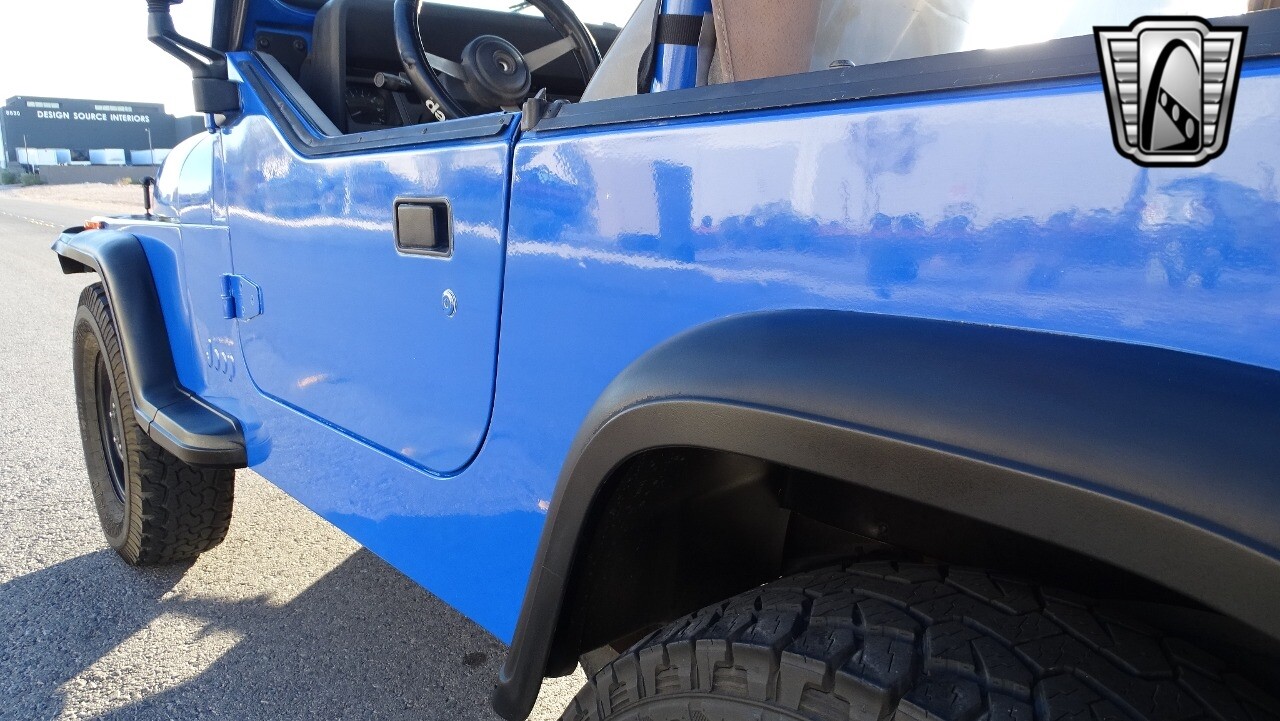 Gateway Classic Cars of Las Vegas presents this 1993 Jeep Wrangler. Blue exterior with Gray interior and a Tan soft top this Jeep is powered by an inline 4 cylinder engine with a 5 speed manual transmission. This 4 wheel drive Jeep is ready to be enjoyed off road or as a fun summertime top down cruiser. [ omitted ].