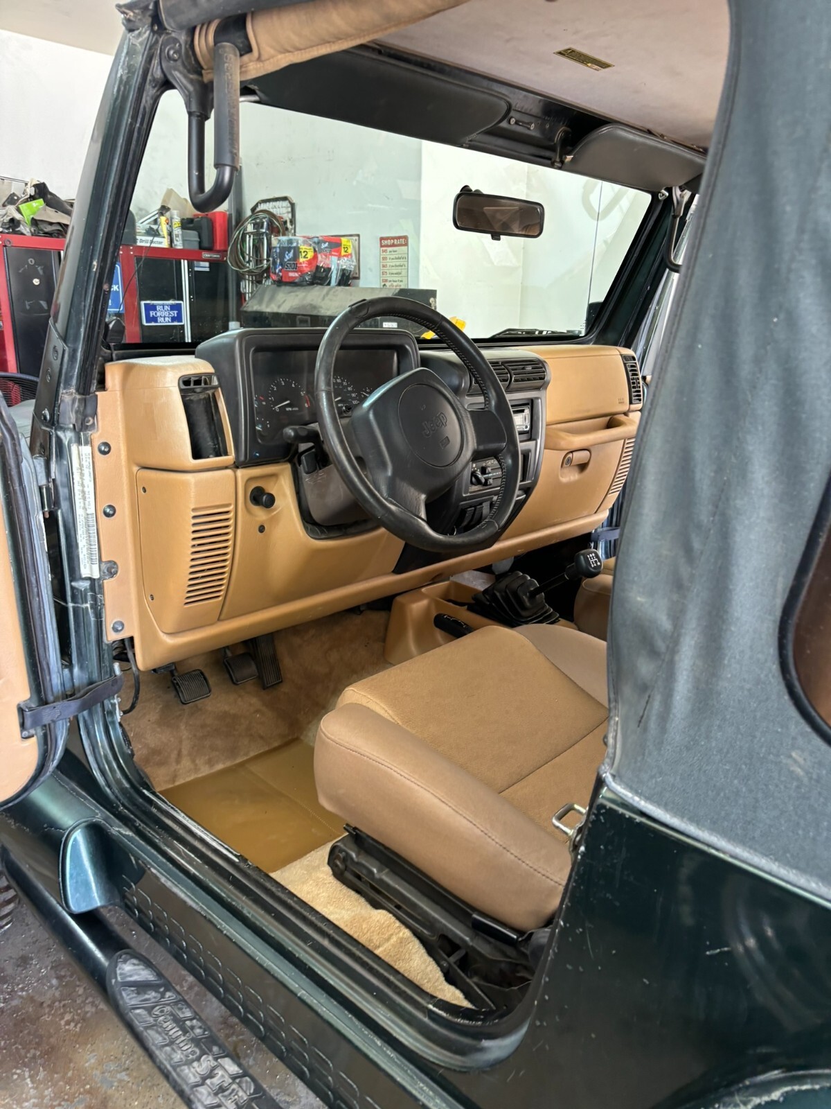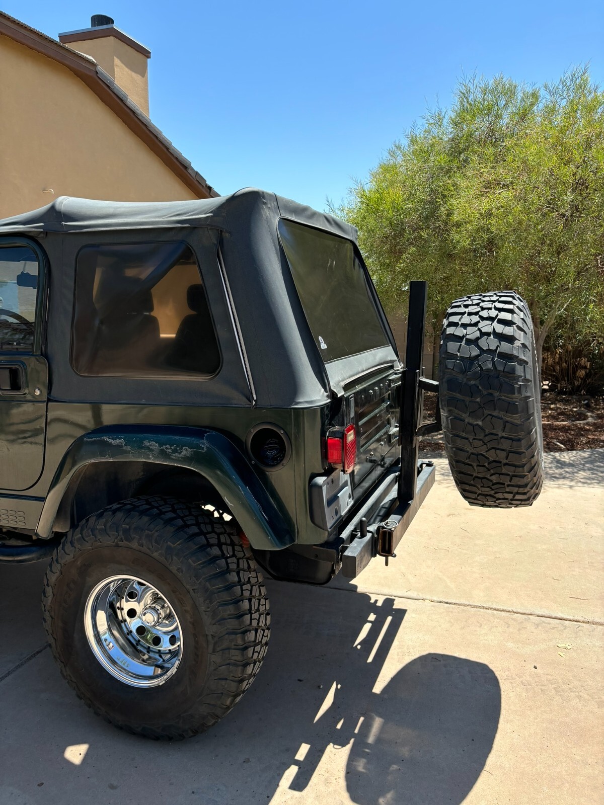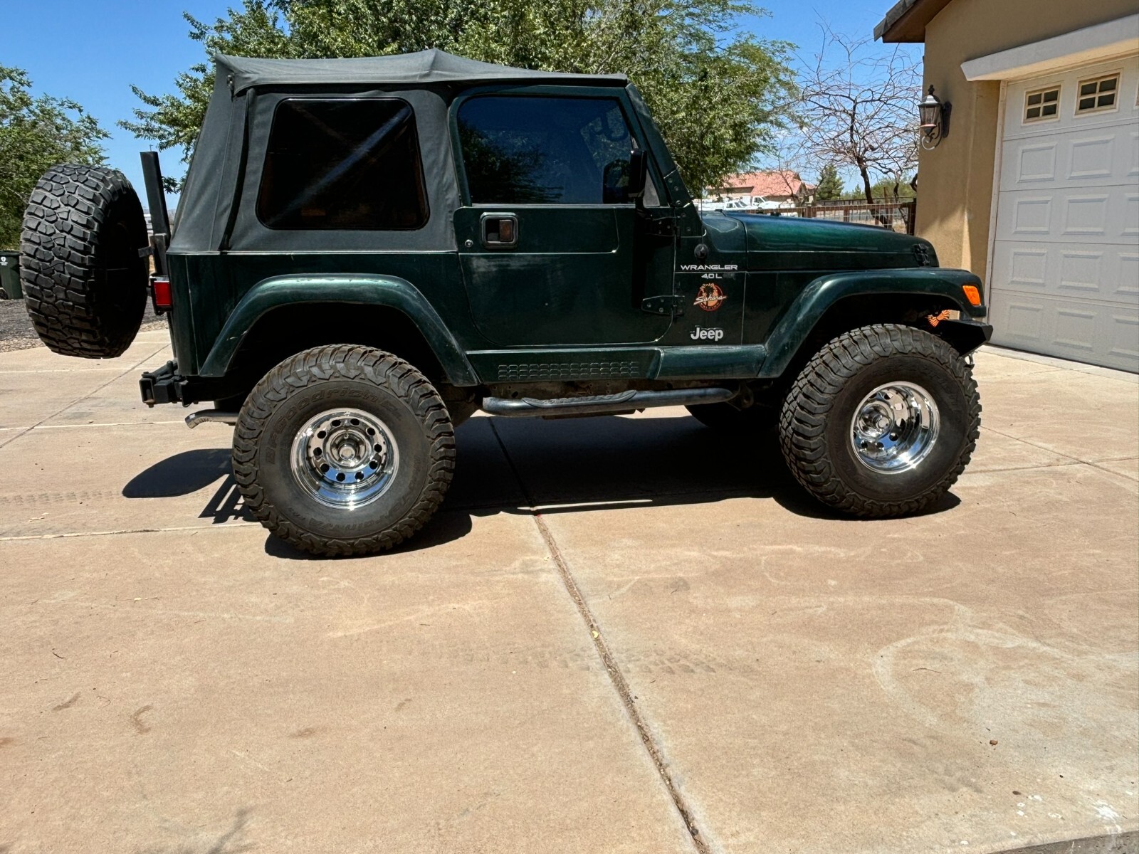 Rust free Saraha TJ with 5 speed manual, 4.0 inline 6, lift, 35" BFG Mud Terrains with little use. New font seats and carpet. This southwestern TJ runs smooth, shifts smooth and has plenty of power. New exhaust manifold, exhaust pipes, muffler, catalytic converter and steering stabilizer. Fresh tune up with plugs wires, cap and rotor. AC has a slow refrigerant leak but blows cold when fully charged. Clear coat on the hood and top of fenders is starting to come off. Stereo speakers are not hooked up. The previous owner had an amplifier and took it when they sold the Jeep and didn't hook up the speakers. Everything works as it should. This is a nice jeep that will go anywhere.