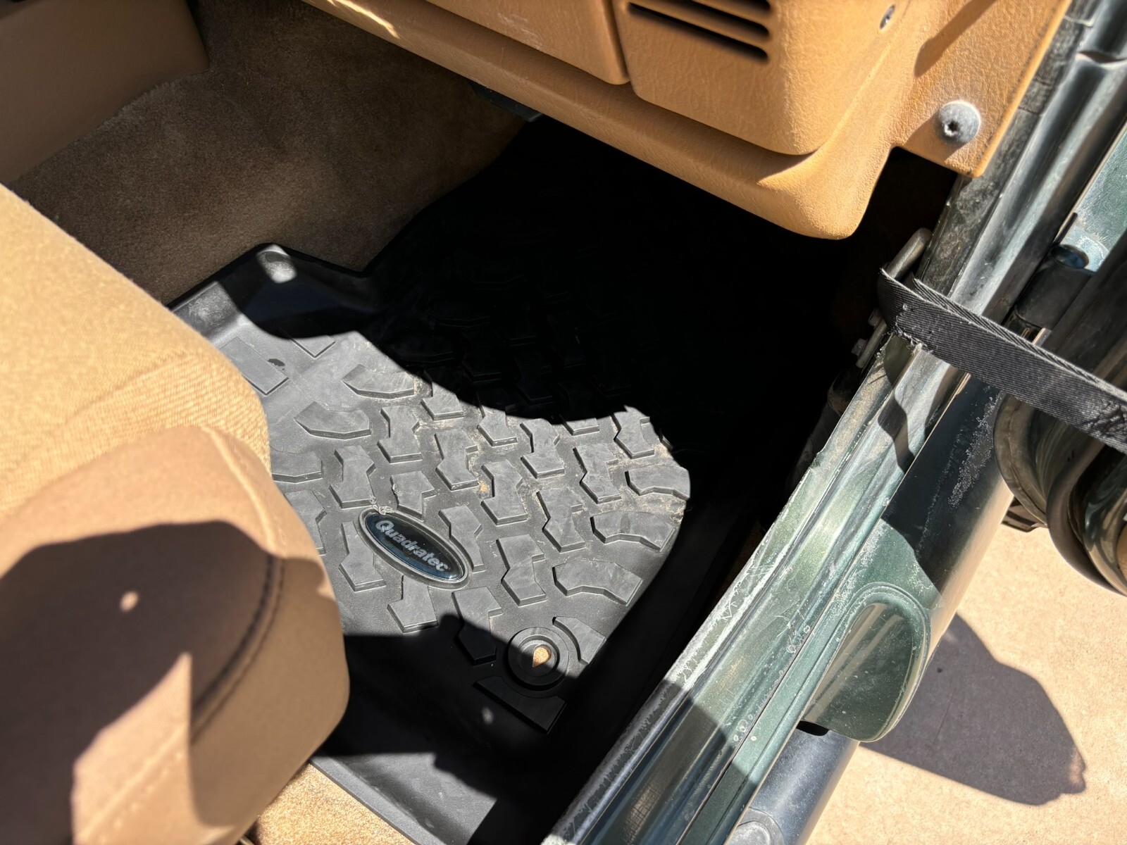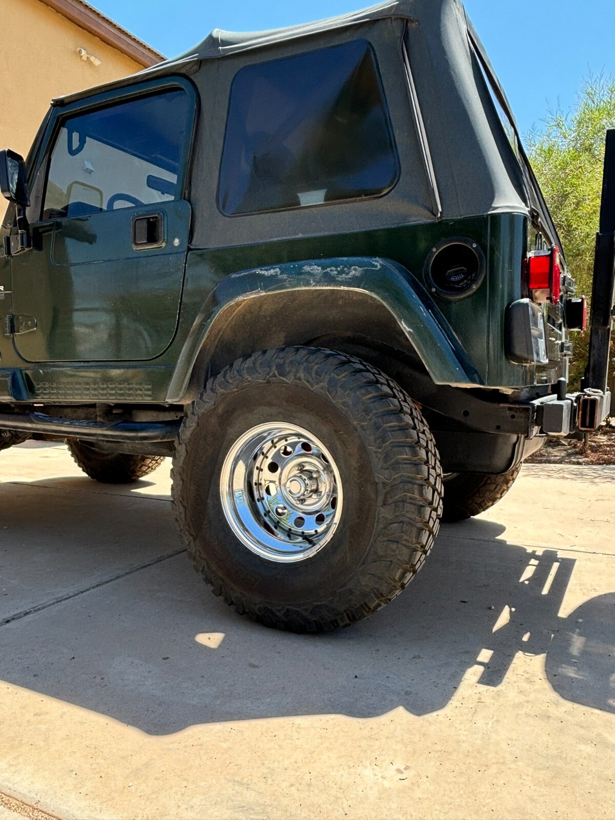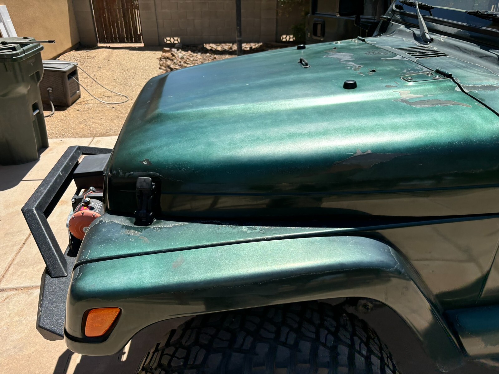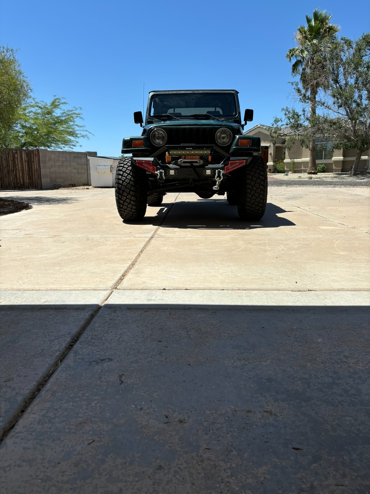 Rust free Saraha TJ with 5 speed manual, 4.0 inline 6, lift, 35" BFG Mud Terrains with little use. New font seats and carpet. This southwestern TJ runs smooth, shifts smooth and has plenty of power. New exhaust manifold, exhaust pipes, muffler, catalytic converter and steering stabilizer. Fresh tune up with plugs wires, cap and rotor. AC has a slow refrigerant leak but blows cold when fully charged. Clear coat on the hood and top of fenders is starting to come off. Stereo speakers are not hooked up. The previous owner had an amplifier and took it when they sold the Jeep and didn't hook up the speakers. Everything works as it should. This is a nice jeep that will go anywhere.