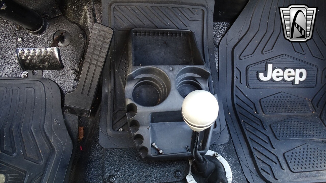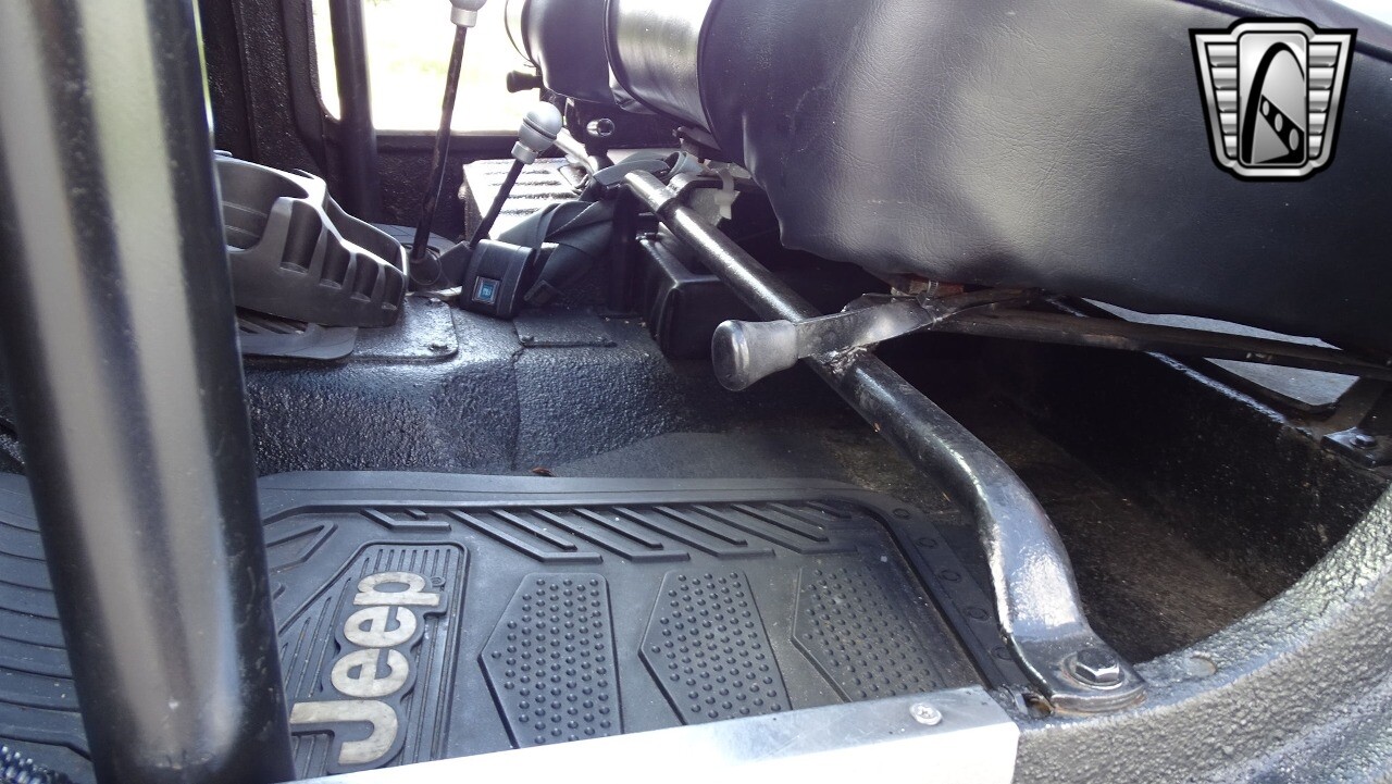 For your safety, the Jeep is equipped with seatbelts. The interior is finished in durable vinyl, which is easy to clean and maintain.