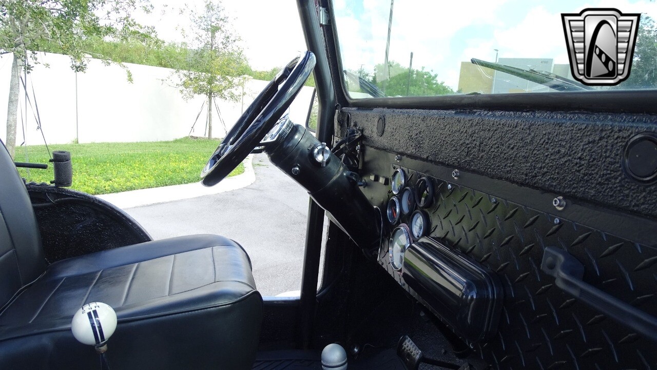 Introducing the 1970 Jeep CJ5, a classic off-roader that combines ruggedness with style. This Jeep is finished in a distinctive black bedliner exterior color that gives it a bold and robust look. The black interior complements the exterior beautifully, creating a cohesive and stylish aesthetic.