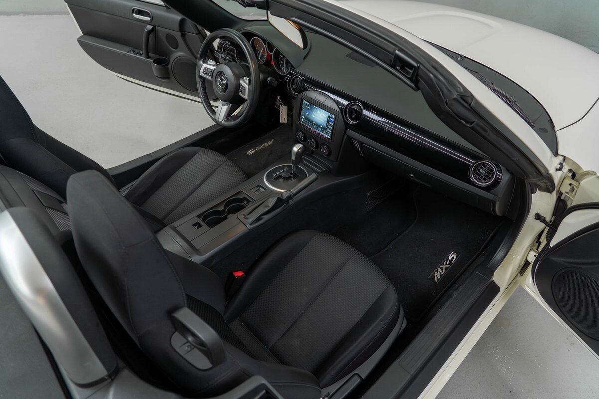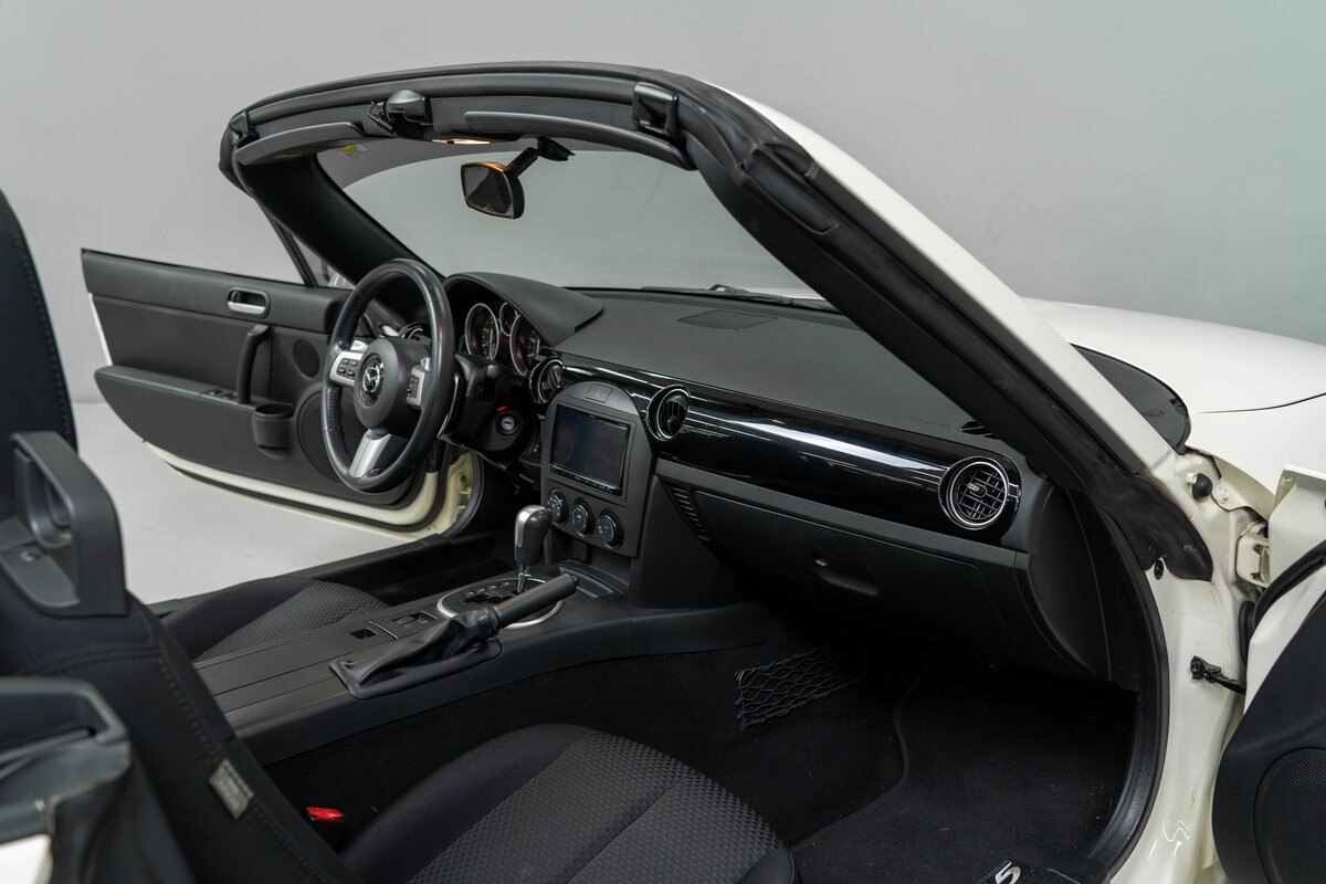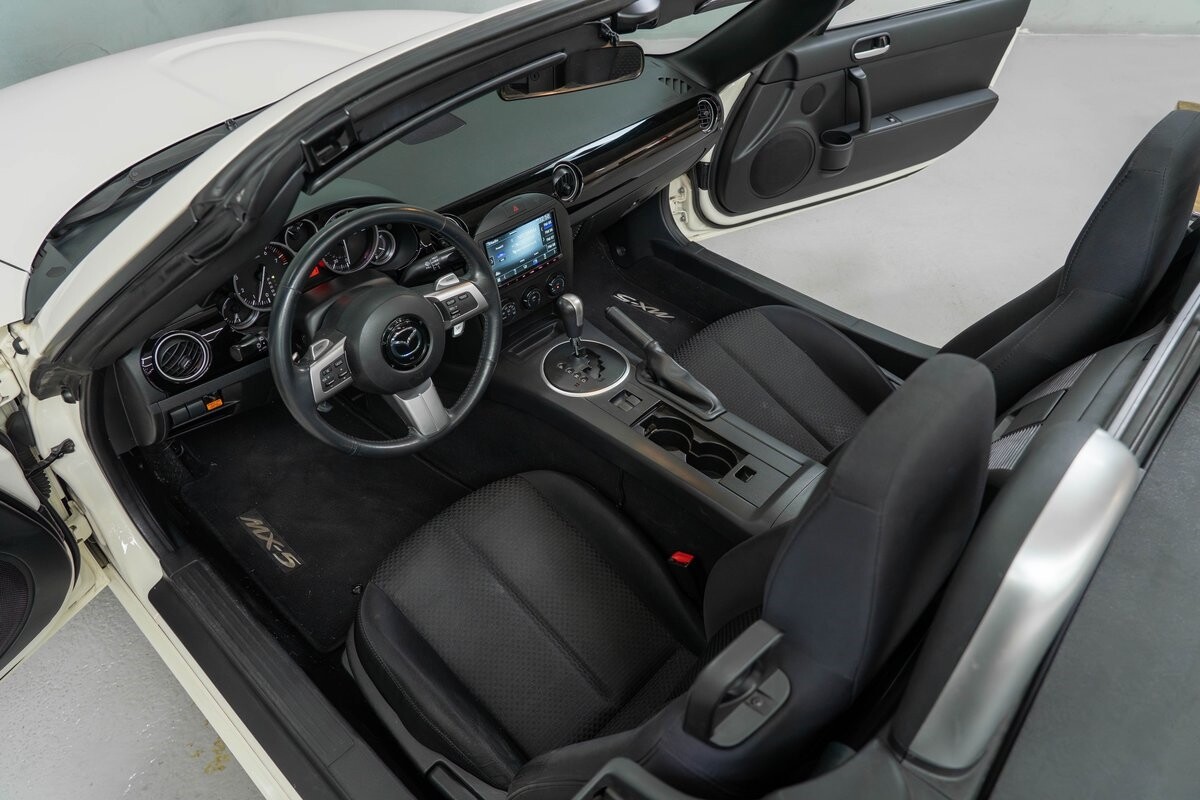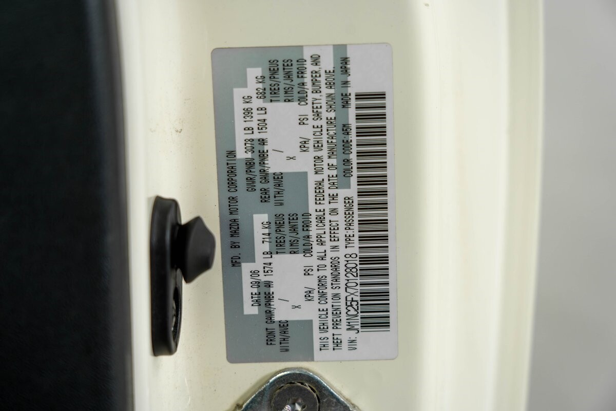 The 2007 Mazda Miata, also known as the MX-5, continued the tradition of being a lightweight, rear-wheel-drive roadster that prioritized driving pleasure above all else. The design of the Miata is sporty and compact, emphasizing nimble handling and agility. This virtually original 2007 Miata Grand Touring Edition is a 3-owner gem. The factory Marble White finish is outstanding and distinctive 17" factory alloys mount 205/45x17 Uniroyal performance radials. Inside, it has a simple driver-focused cockpit with supportive seats and intuitive controls. The tasteful black cloth upholstery is in excellent condition, as is the matching manual soft-top. Convenience features include air conditioning, power locks, keyless entry, power tinted windows, power trunk and tilt wheel. This Miata is also equipped with cruise control, a premium aftermarket sound system and dual front/side airbags that provide an extra measure of safety. It is powered by Mazda's 2.0L 4-cylinder, 16v dual-overhead cam motor that produces 166bhp and 140lb/ft of torque. The Miata is equipped with a factory sport tuned exhaust and power is delivered through an optional 6-speed automatic gearbox w/paddle shifters. The differential is equipped with electronic traction control and the final drive ratio is 4.10:1. Its chassis features close-ratio power steering, 4-wheel anti-lock power disc brakes w/ventilated front rotors, stability control and front/rear stabilizer bars. An AutoCheck report is also included with the car. This handsome Miata will soon move to a new home – why not yours? ALL VEHICLES SOLD "AS IS".