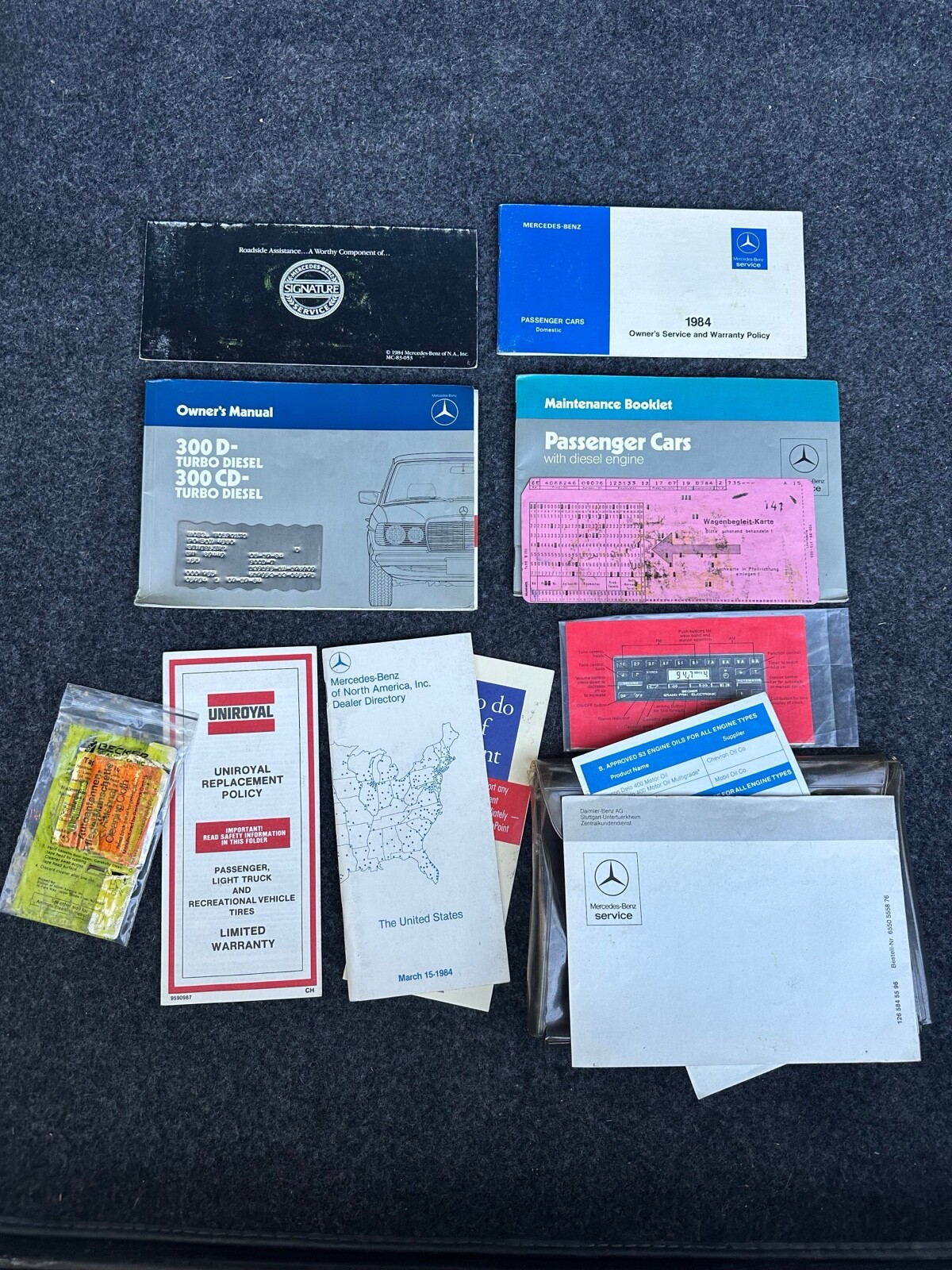 Car is built on the W123 platform and powered by the beloved OM617.952 inline 5 turbocharged engine. This was the final and best evolution of this engine. Can actually hold its own vs the older models. It has all the original manuals and roadside accessories. Comes with one master key and a valet key. All windows work, including sun roof. Original factory radio and auto telescoping antenna fully functional. The entire vacuum door lock system works and holds for months. Uncommon to find majority of the original systems are intact and functional. I cannot speak to the operation of the A/C but the automatic climate controls work and have used the heater many times. Beneath the factory floor mats leaves the untouched black carpet. Beneath the carpet and interior panels the car has a factory look, plastic vacuum lines and wires and cables still look supple and factory. The seats and interior are in excellent condition. The epoxy on the wood bezels have a couple heat cracks but could be stripped and restored if someone was inclined. No rust, no major defects. I have shown this car in shows the way it is and it always attracts a conversation, reminiscing of the way they were built. Truly a fine piece of German engineering of the era. Step back in time and experience 1984.