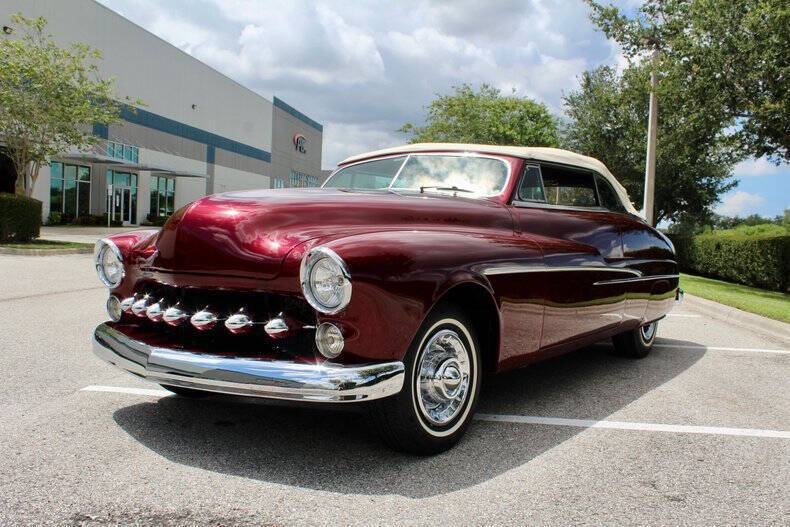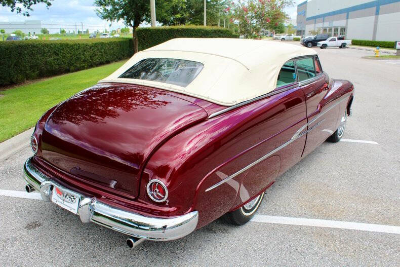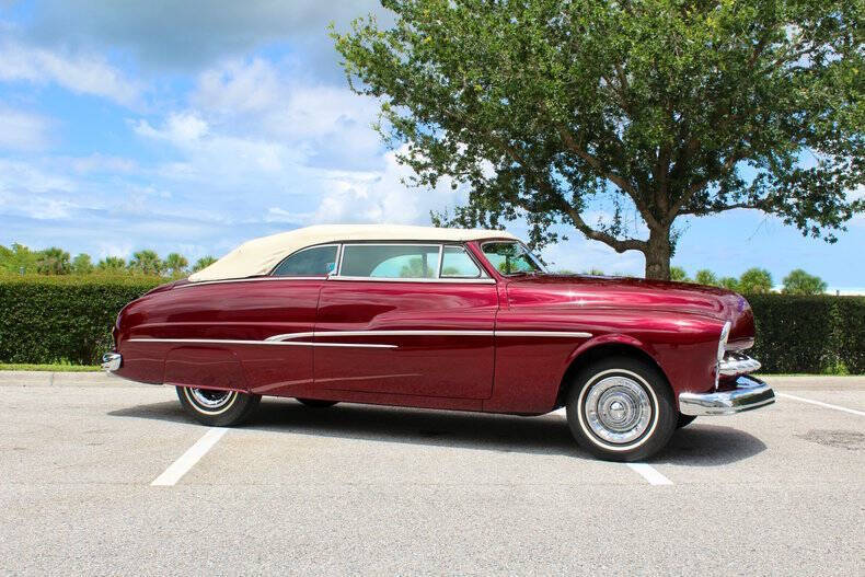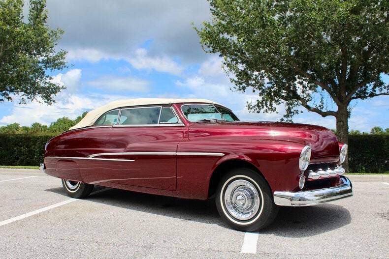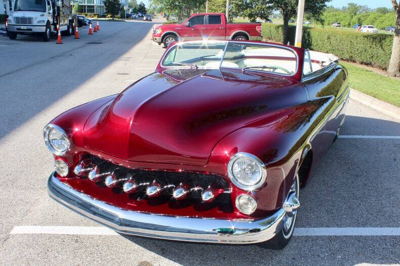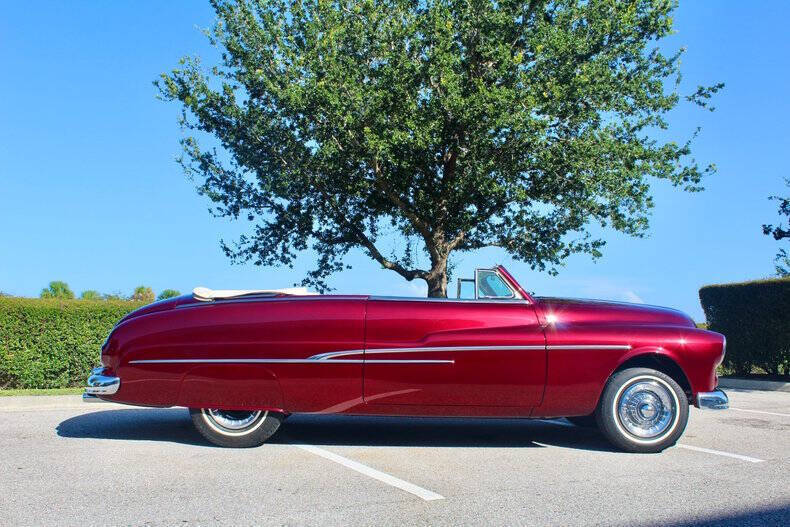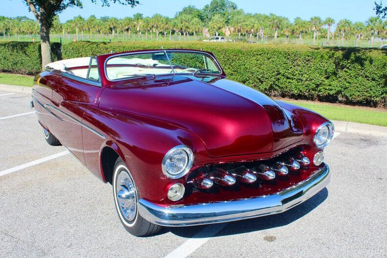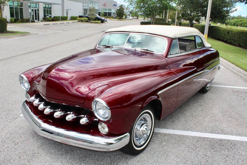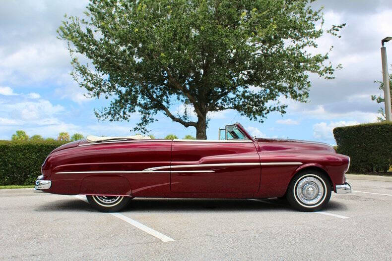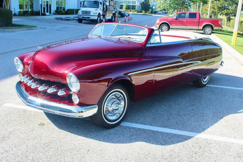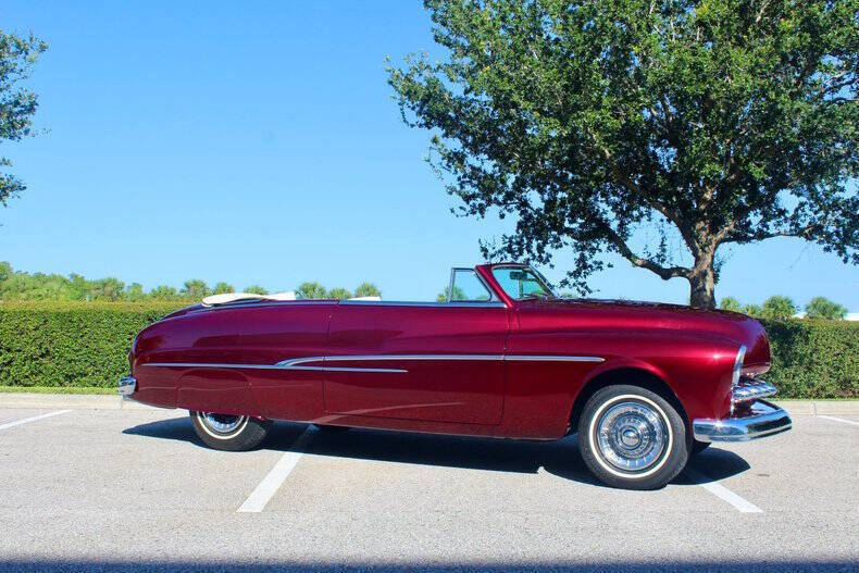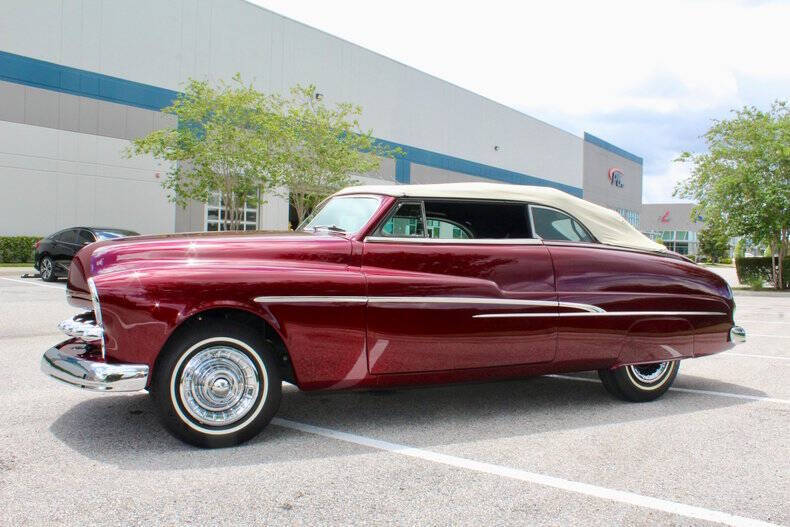 1949 Mercury Convertible We've all seen the iconic '49 Mercury lead sleds, but we're confident you've never come across one as extraordinary as this. This car has the perfect look. Powered by a big block V8, equipped with a street-worthy chassis, and featuring all the modern creature comforts, this rare custom build is not just for show-it's built to be driven. Take a closer look! The white interior abandons tradition in favor of state-of-the-art flair, starting with a set of swivel bucket seats from a '60s Chrysler. The beautifully finished dash features a lot of custom stainless steel, with motorized doors for all the controls, making everything disappear when you turn off the key. Turn it on, and you're greeted by Dakota Digital gauges, an AM/FM/CD stereo up high, and the controls for the Vintage Air A/C system in the center. A custom center console, inspired by an early '60s Thunderbird unit, houses a horseshoe shifter and the power window controls. The steering wheel is completely unique to this car. Additional features include a tilt column, remote door openers, and a set of Air Ride controls cleverly hidden in the former ashtray in the console. Under the hood is a 454 cubic inch Chevrolet V8. It's not radical, but it's more than enough to make this custom feel exhilaratingly fast. The engine bay is a work of art, featuring a lot of chrome, custom plumbing, and a lightly modified air cleaner from a mid-50s Cadillac. Finned valve covers, custom brushed aluminum tank work, and hand-fabricated inner panels give it an exceptionally clean look. The big block is enhanced by an Edelbrock 4-barrel carburetor, powder-coated exhaust manifolds, and a custom dual exhaust system with glasspack style mufflers for that classic sound. The chassis boasts power steering and front disc brakes, thanks to a Nova subframe transplant, while the rear end features a Mustang 8.8 hanging on trailing arms and leaf springs. In between, you'll find a 700R4 4-speed automatic transmission, making it an effortless cruiser at any speed. The Air Ride suspension allows you to adjust the height to your preference, and it sits on 215/70/15 whitewall radials for that perfect vintage look. This 1949 Mercury is more than just a car; it's a statement piece. Whether you're a classic car enthusiast, a collector, or someone who appreciates the art of automotive design, this led sled will not disappoint. EXTERIOR: aˆc Wild Cherry over Rose Base (H.O.C) aˆc White Power Convertible top aˆc White wall radials INTERIOR: aˆc White leather bucket seats (Swivel) aˆc Remote door openers aˆc Air Conditioning aˆc AM/FM CD Player aˆc Tilt wheel aˆc Power windows MECHANICS: aˆc 454 V8 aˆc 700RH Transmission aˆc Ford 8.8 Rear End aˆc Power brakes (Front Disc) aˆc Power steering UNDERCARRIAGE: aˆc Air Ride suspension aˆc Nova subframe aˆc Clean Call us at941-208-6886, a live person answers the phones from 9am - 9pm (EST) Financing is available on our website We can ship this vehicle worldwide door to door Our indoor showroom is located at 7910 25th Court East Unit 107 Sarasota, FL 34243