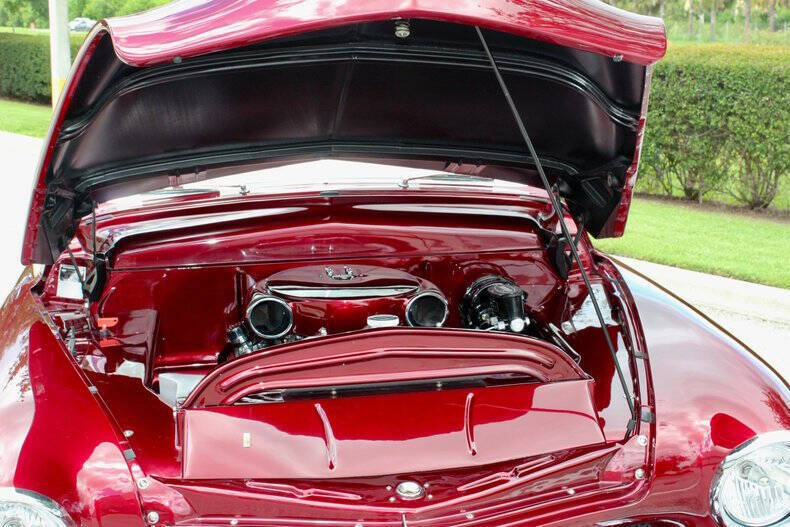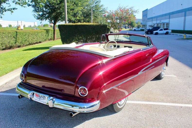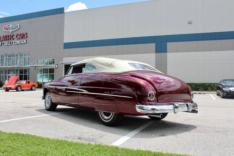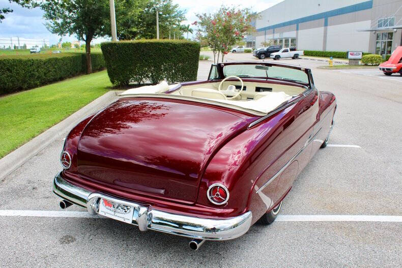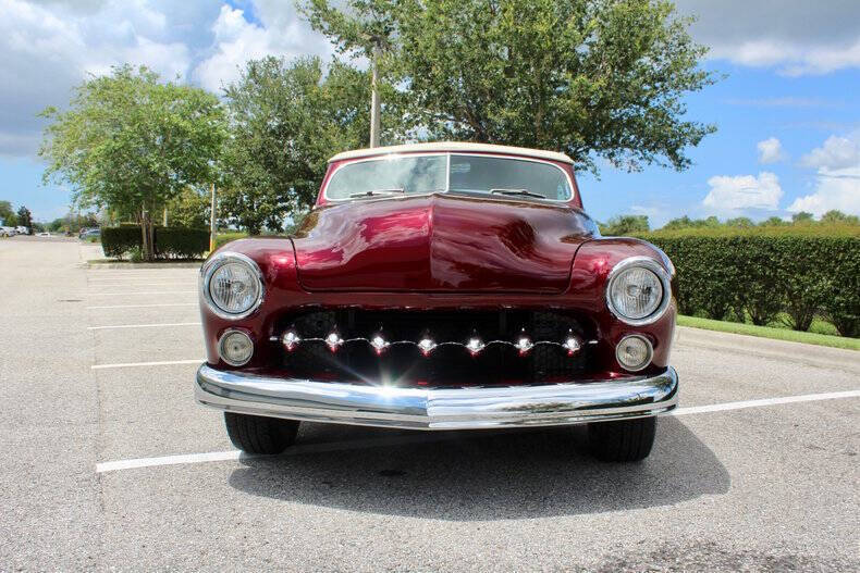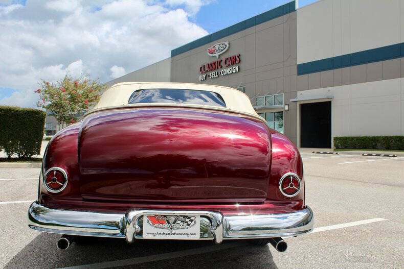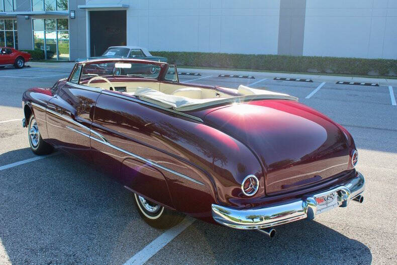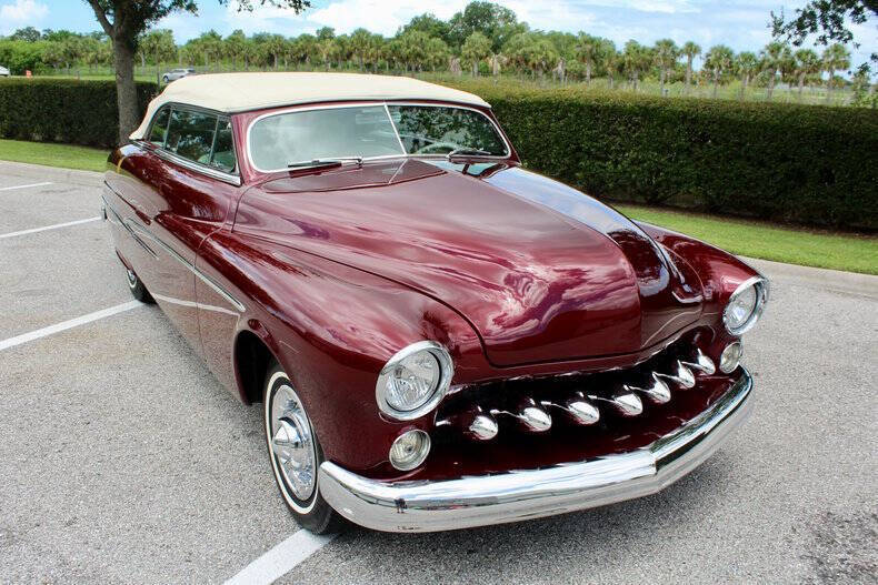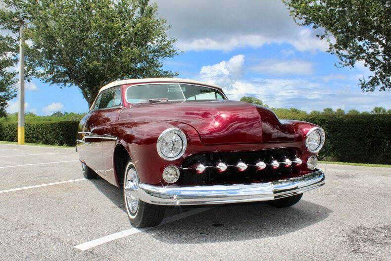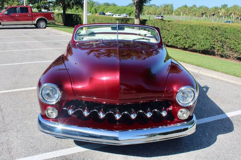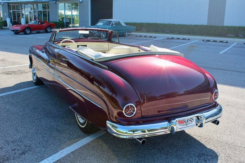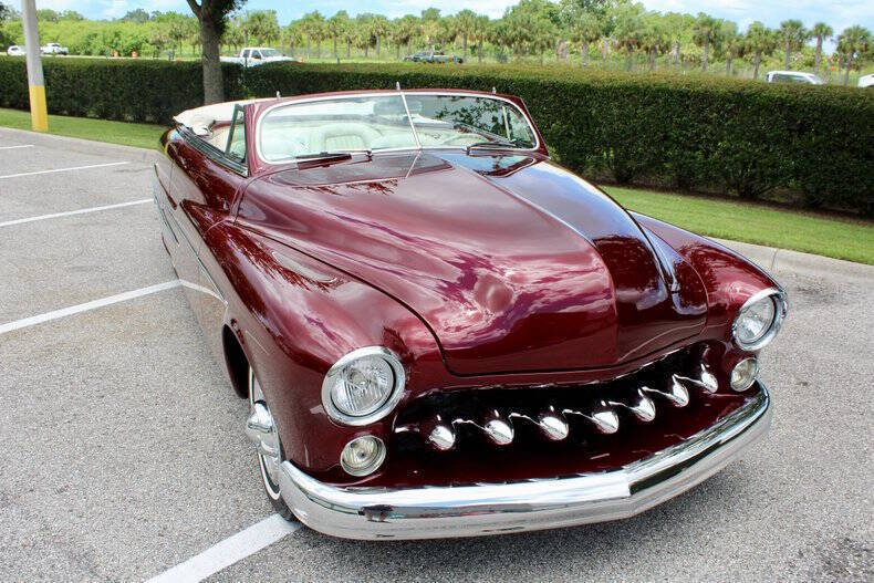 1949 Mercury Convertible We've all seen the iconic '49 Mercury lead sleds, but we're confident you've never come across one as extraordinary as this. This car has the perfect look. Powered by a big block V8, equipped with a street-worthy chassis, and featuring all the modern creature comforts, this rare custom build is not just for show-it's built to be driven. Take a closer look! The white interior abandons tradition in favor of state-of-the-art flair, starting with a set of swivel bucket seats from a '60s Chrysler. The beautifully finished dash features a lot of custom stainless steel, with motorized doors for all the controls, making everything disappear when you turn off the key. Turn it on, and you're greeted by Dakota Digital gauges, an AM/FM/CD stereo up high, and the controls for the Vintage Air A/C system in the center. A custom center console, inspired by an early '60s Thunderbird unit, houses a horseshoe shifter and the power window controls. The steering wheel is completely unique to this car. Additional features include a tilt column, remote door openers, and a set of Air Ride controls cleverly hidden in the former ashtray in the console. Under the hood is a 454 cubic inch Chevrolet V8. It's not radical, but it's more than enough to make this custom feel exhilaratingly fast. The engine bay is a work of art, featuring a lot of chrome, custom plumbing, and a lightly modified air cleaner from a mid-50s Cadillac. Finned valve covers, custom brushed aluminum tank work, and hand-fabricated inner panels give it an exceptionally clean look. The big block is enhanced by an Edelbrock 4-barrel carburetor, powder-coated exhaust manifolds, and a custom dual exhaust system with glasspack style mufflers for that classic sound. The chassis boasts power steering and front disc brakes, thanks to a Nova subframe transplant, while the rear end features a Mustang 8.8 hanging on trailing arms and leaf springs. In between, you'll find a 700R4 4-speed automatic transmission, making it an effortless cruiser at any speed. The Air Ride suspension allows you to adjust the height to your preference, and it sits on 215/70/15 whitewall radials for that perfect vintage look. This 1949 Mercury is more than just a car; it's a statement piece. Whether you're a classic car enthusiast, a collector, or someone who appreciates the art of automotive design, this led sled will not disappoint. EXTERIOR: aˆc Wild Cherry over Rose Base (H.O.C) aˆc White Power Convertible top aˆc White wall radials INTERIOR: aˆc White leather bucket seats (Swivel) aˆc Remote door openers aˆc Air Conditioning aˆc AM/FM CD Player aˆc Tilt wheel aˆc Power windows MECHANICS: aˆc 454 V8 aˆc 700RH Transmission aˆc Ford 8.8 Rear End aˆc Power brakes (Front Disc) aˆc Power steering UNDERCARRIAGE: aˆc Air Ride suspension aˆc Nova subframe aˆc Clean Call us at941-208-6886, a live person answers the phones from 9am - 9pm (EST) Financing is available on our website We can ship this vehicle worldwide door to door Our indoor showroom is located at 7910 25th Court East Unit 107 Sarasota, FL 34243