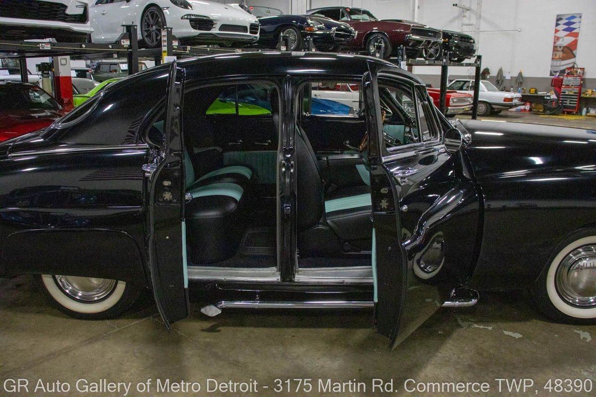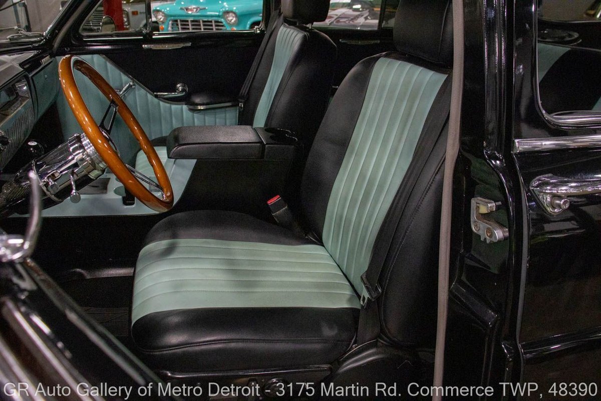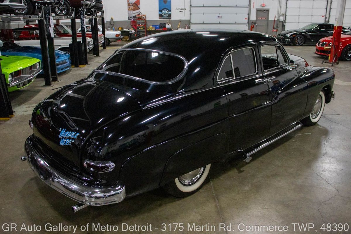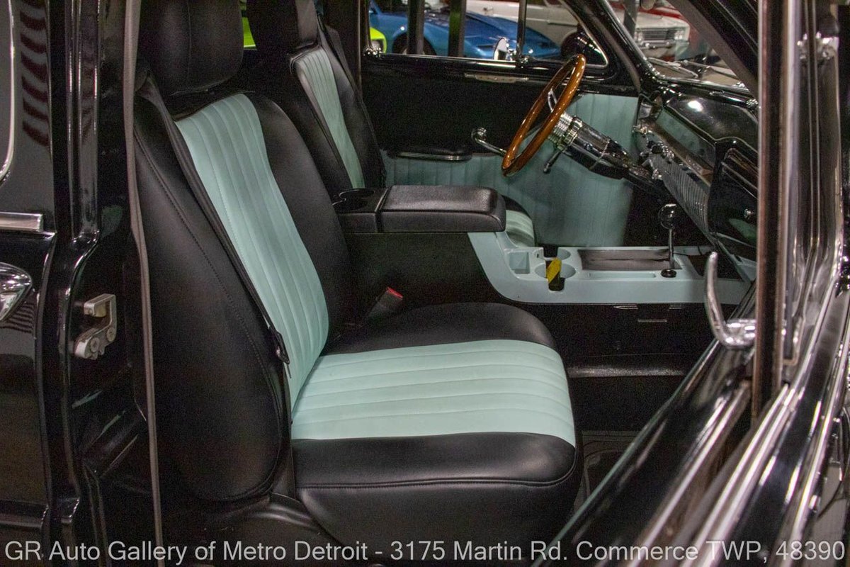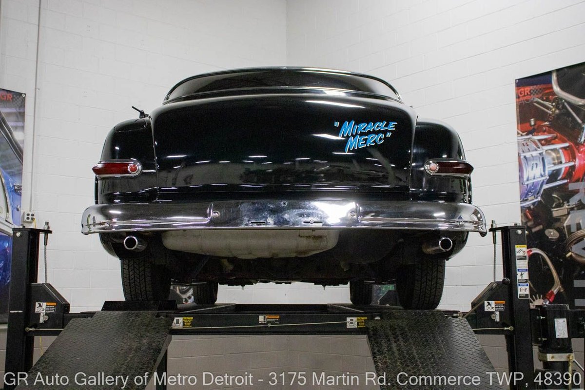 GR Auto Gallery is pleased to present this restored & custom 1950 Mercury Series 0CM Sport Sedan for your consideration. This classic beauty comes with a powerful 350 cubic inch V8 engine, producing an impressive 450 horsepower, paired with a 400R4 automatic transmission and geared with a 3.83 rear end. The Black exterior is complemented by a stunning black and turquoise interior, making for a striking combination. This Mercury underwent a frame-off restoration and has only 2,715 miles since then. Some key features of this vehicle include the engine bored 30 over with an aftermarket aluminum radiator, custom interior, chrome leg pipes, straight piped exhaust, 8 ball shifter, radial white wall tires, Bluetooth Pioneer radio, JVC speakers, and much more. Drive this one out of our showroom or have us assist with shipping it to you anywhere in the United States! Don't hesitate to call us with any questions or for more information.