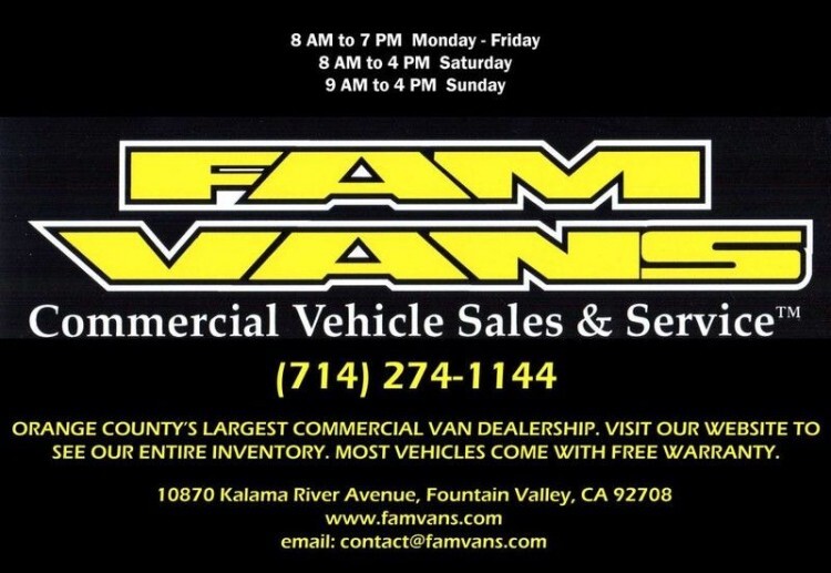 We're the largest used van and truck dealership in California. We sell many types of commercial vehicles including vans, trucks, box trucks, utility trucks, stake beds, refrigeration vans, passenger vans, wheelchair access vans, and more with shipping available worldwide. Other services include van and truck equipment, sales and installation. Shelving, ladder racks, bulkheads, dividers, drawer units and much more. We have a full service department and body shop Truly your one stop shop for anything commercial van and truck related.