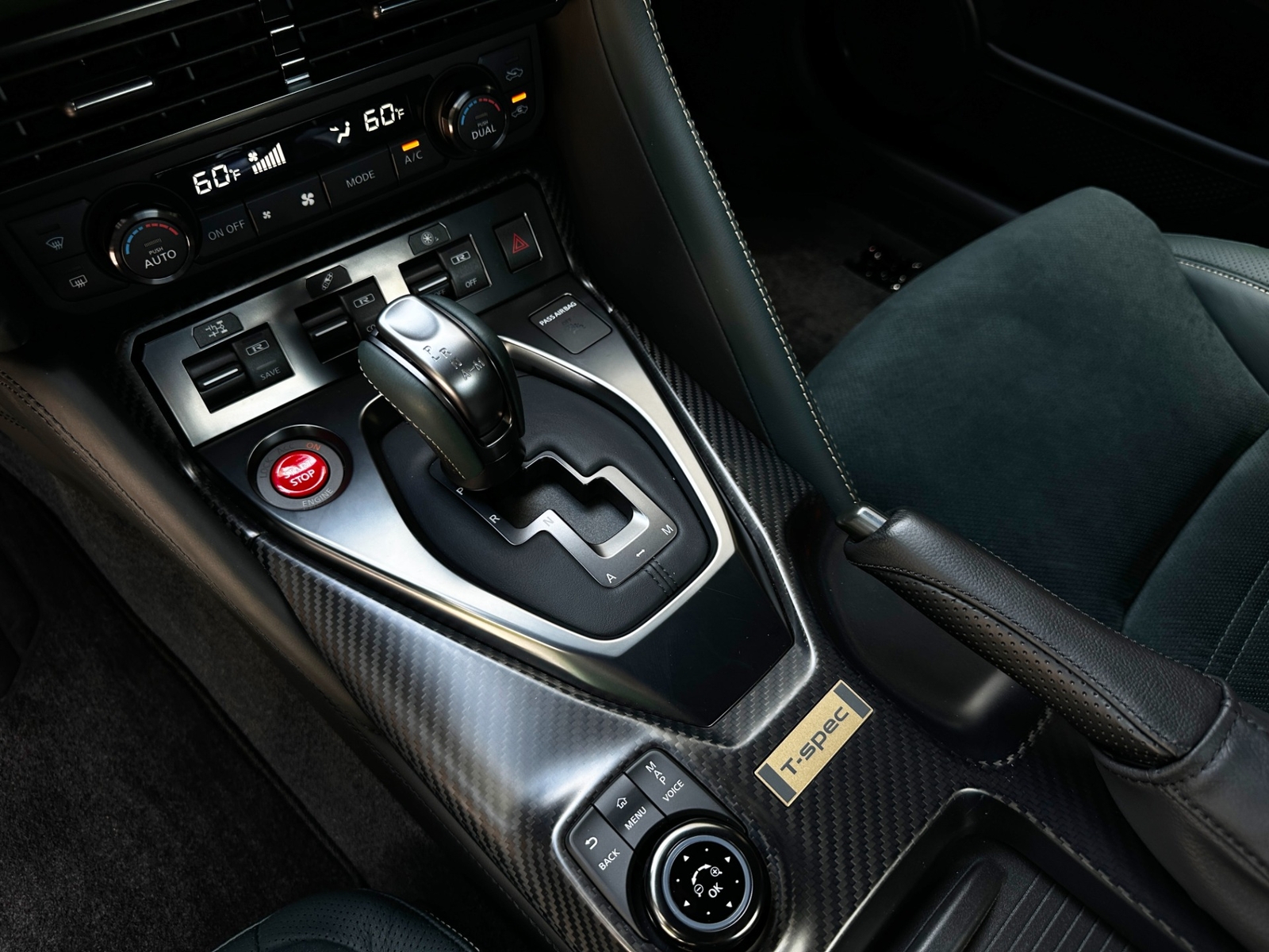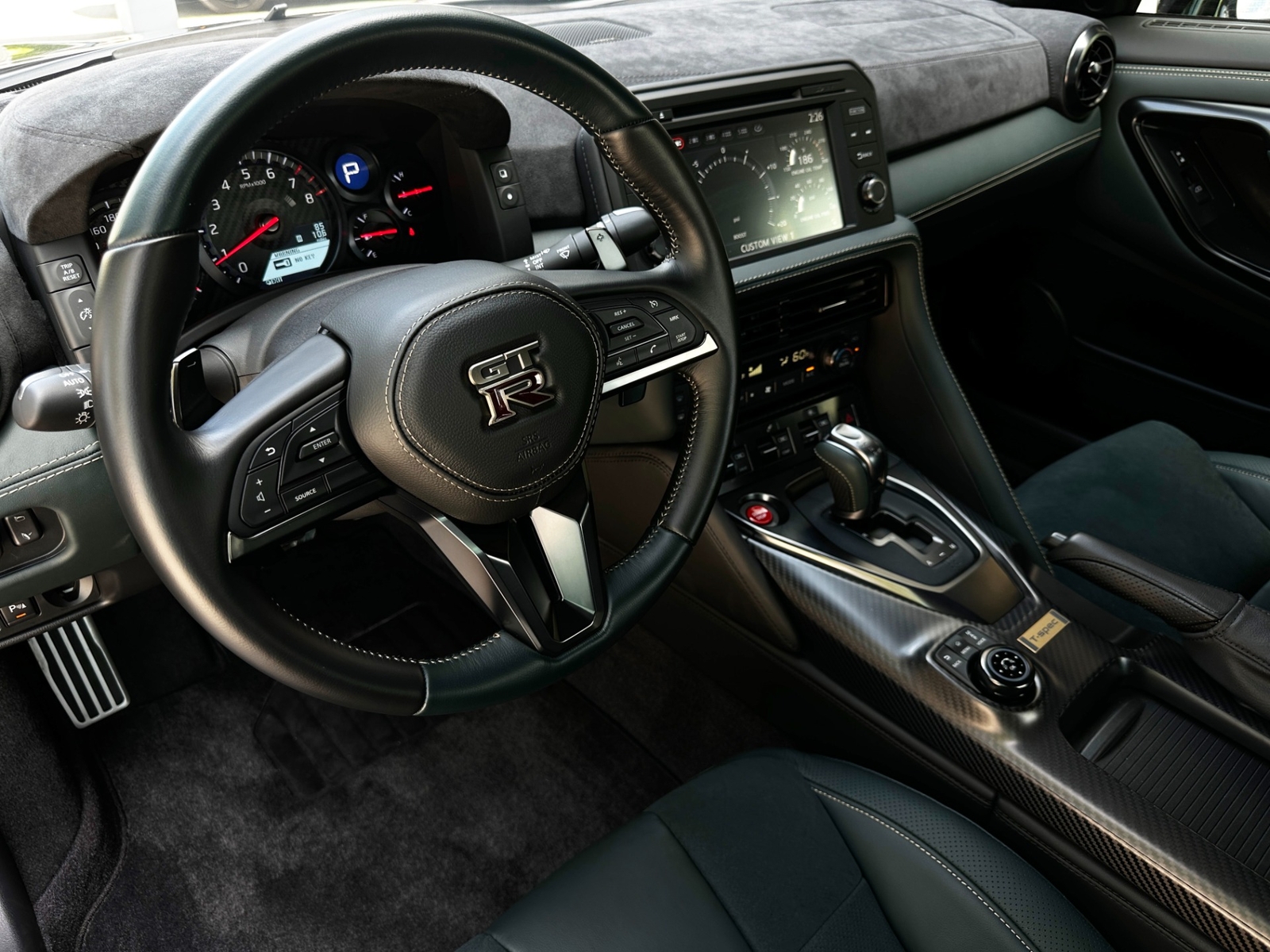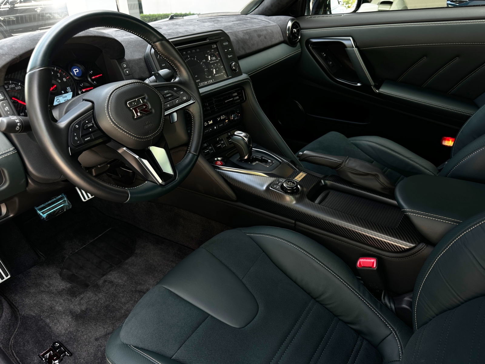 2024 T-Spec GTR has arrived! Only 50 miles! Finished In Jet Black Pearl Paint w/ Mori Green Leather Interior! Powered by the 3.8L Twin Turbo V6 VR38DETT pumping out 565 HP! 6 Speed Dual Clutch Transmission!