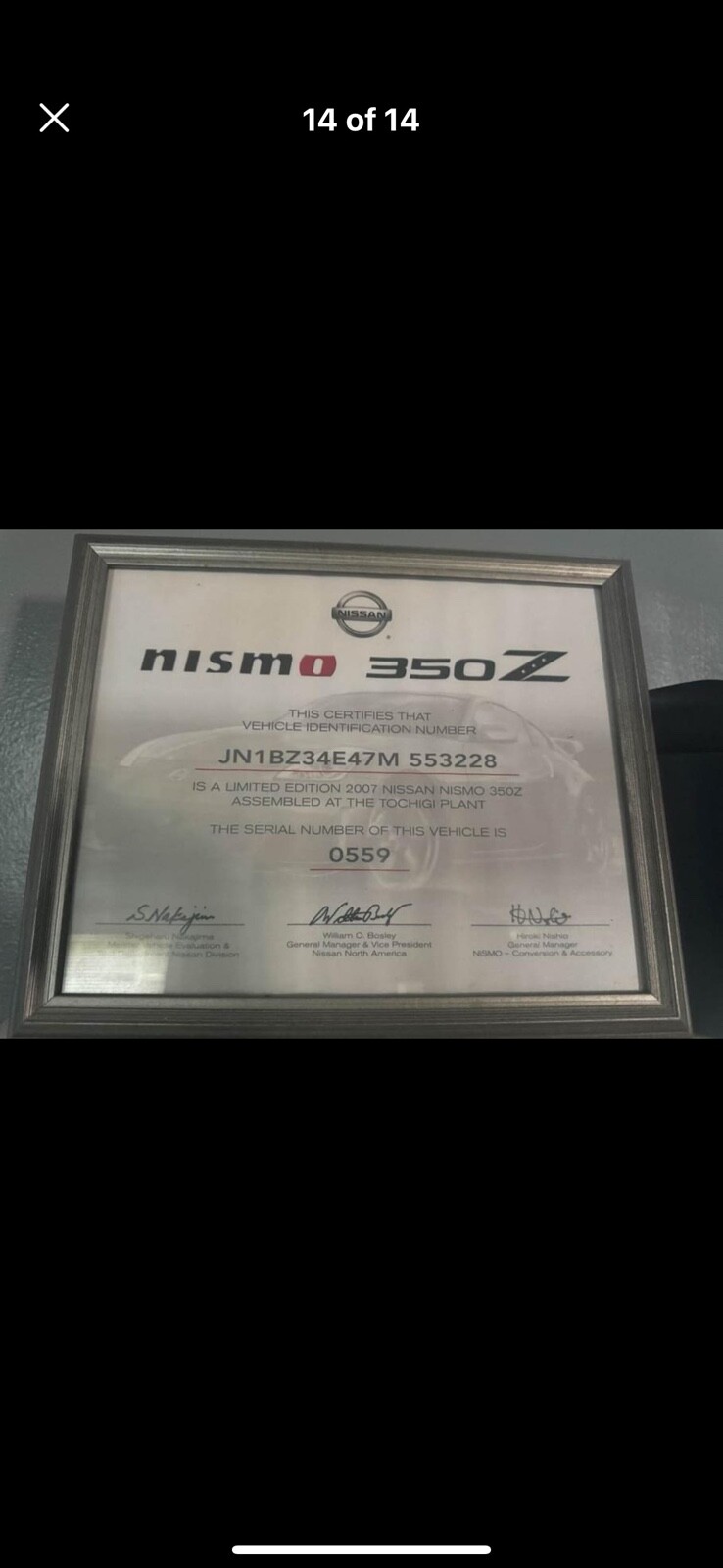 One of the LOWEST MILES 350z nismo for sale in the U.S.A, Genuine Nissan NISMO Plaque from Factory included truly a beauty(see photo for plaque)