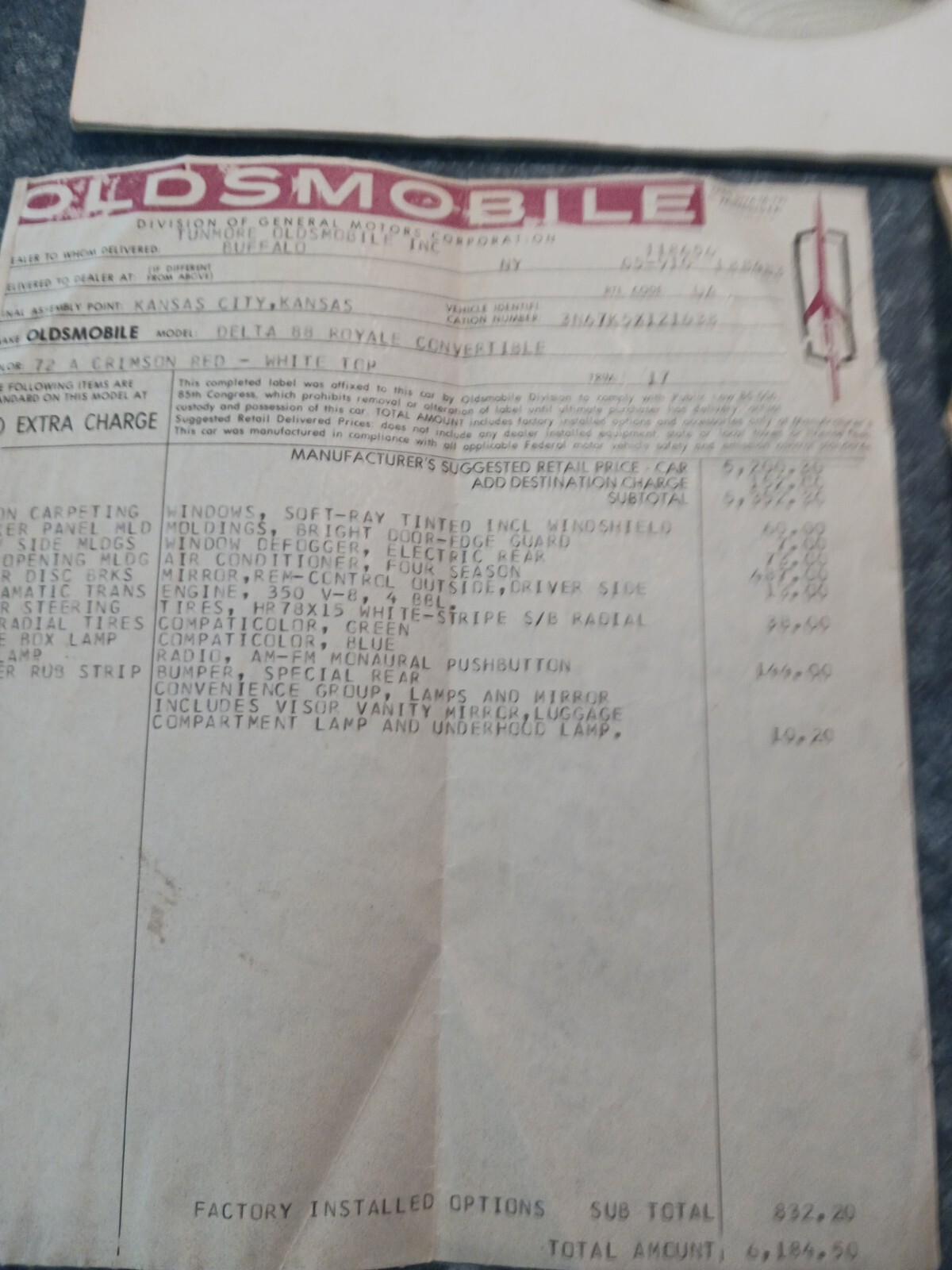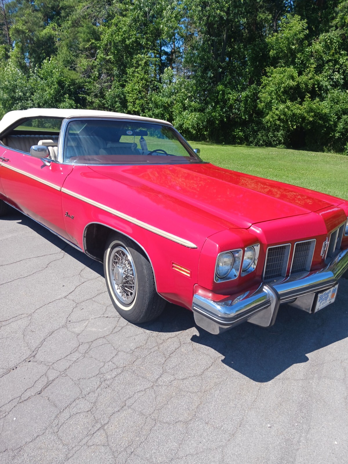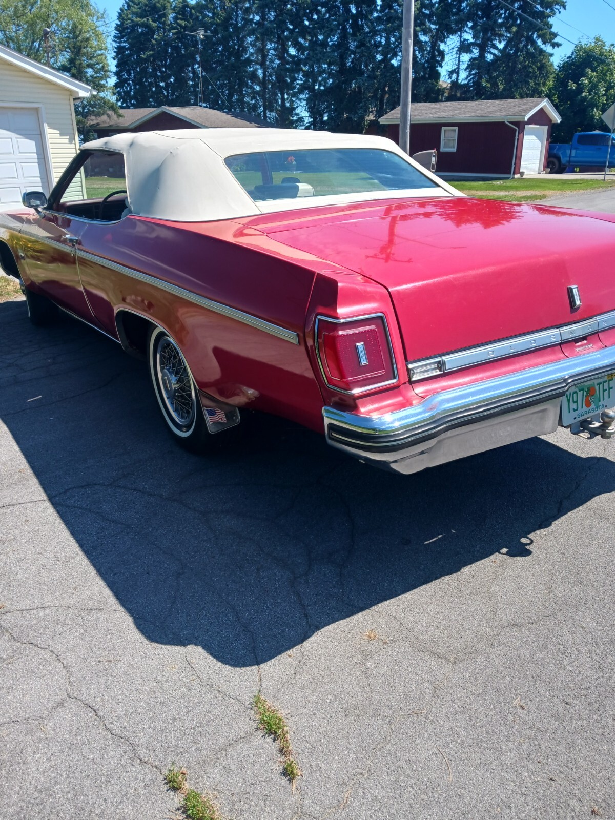 1975 oldsmobile delta 88 royale convertible. One owner from new,clean florida title,window sicker,bill of sale and other paper work all goes with car. The car is in good condition ,the bottom half of car was painted 35 years ago,the top half of car is original paint. the top was also replace at on time. The engine is a 350ci with auto trans with 108000.mi,with ac (belt off the ac pump) runs and drives very nice. This is not a show car but a very nice driver
