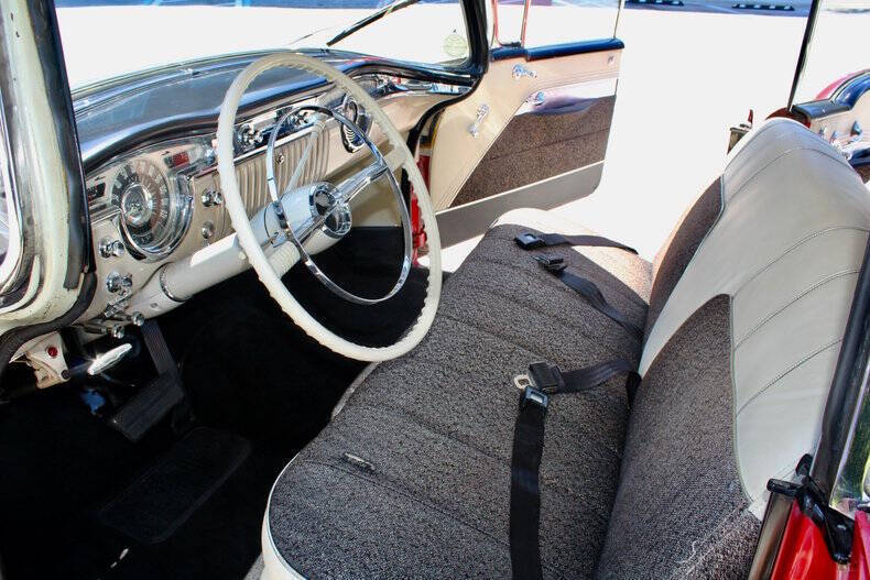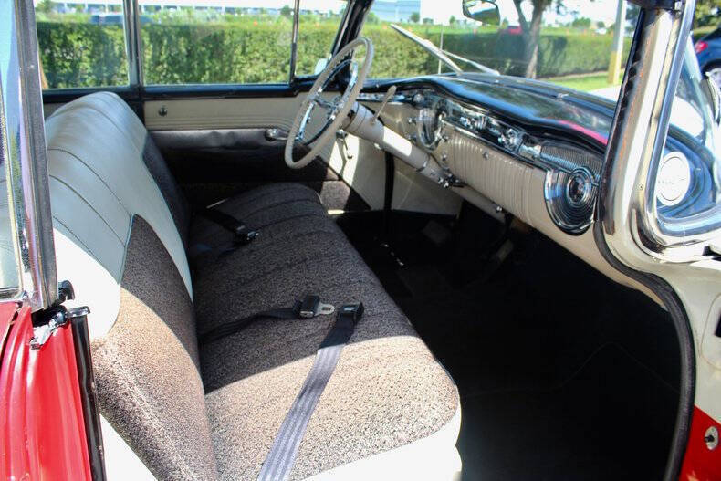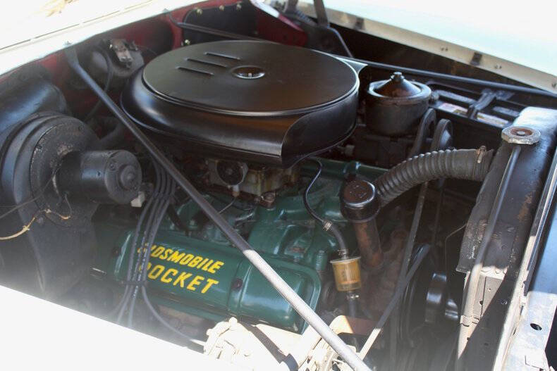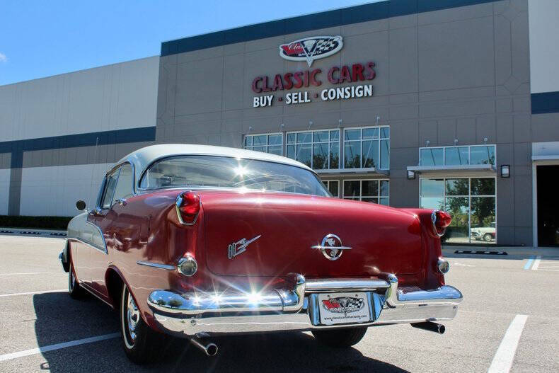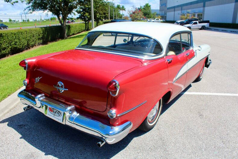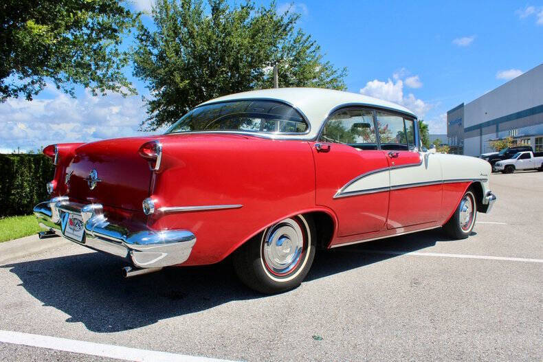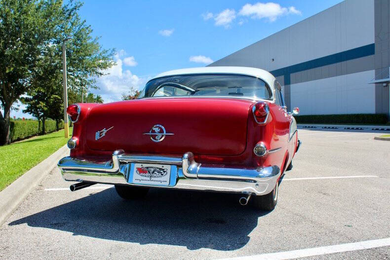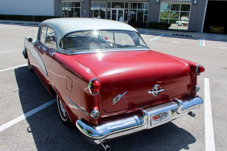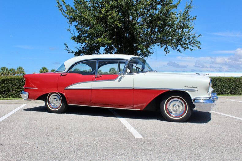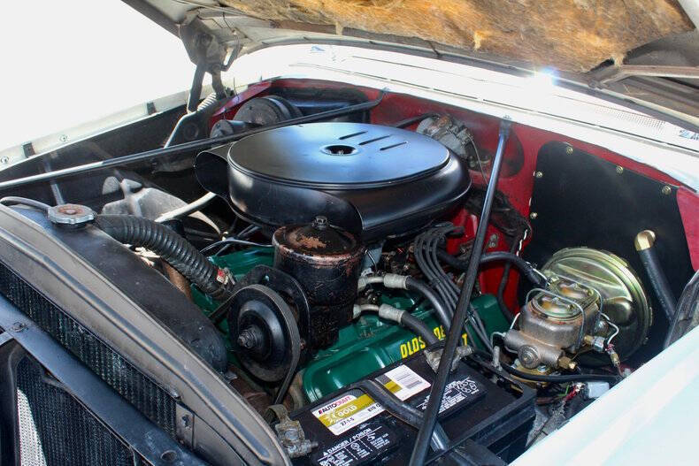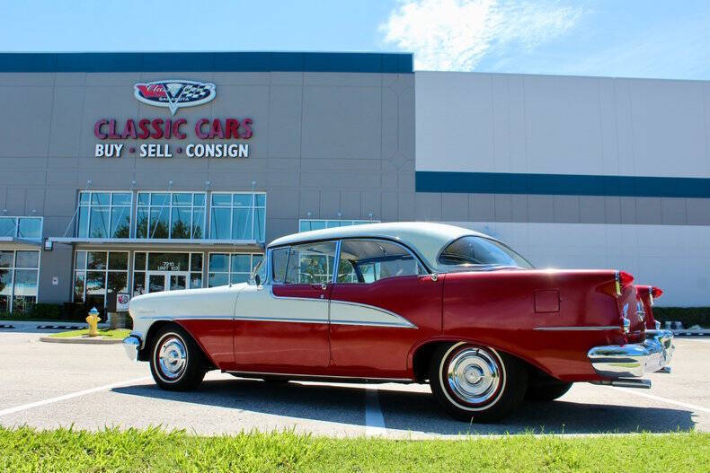 1955 Oldsmobile Super 88 Holiday Step back in time with this incredible survivor 1955 Oldsmobile Super 88, a true icon of mid-century American automotive design. Combining powerful performance with unparalleled style, this classic car is a must-have for any enthusiast or collector. This 1955 Super 88 Holiday 4 door hard top comes with a two-tone paint in red and polar white exterior over charcoal anthracite interior. Experience the raw power and smooth performance that made Oldsmobile a leader in the '50s. It is powered by Rocket V8 324CI engine mated to a Hydra-Matic 4-speed automatic - Enjoy a seamless driving experience with this advanced (for its time) transmission. The odometer shows 28,116 which the owner believes to be original, and the title shows miles as exempt. The vehicle was on display at Jim Dewar Oldsmobile in Johnstown, PA for over 30 years. The chrome accents and iconic rocket emblems are in excellent condition, adding to the car's authentic look. Whitewall tire mounted on steel wheels with Oldsmobile hubcaps for that period-correct appearance. AM radio to enjoy your favorite vintage tunes. Power Steering and Brakes for driving comfort with classic styling. The 1955 Super 88 represents a pivotal era in automotive history, known for its revolutionary design and performance. The elegant curves, distinctive grille, and two-tone paint make this car a head-turner at any event or on the open road. Classic cars like the Oldsmobile Super 88 not only provide joy and nostalgia but also tend to appreciate in value over time. EXTERIOR: aˆc Red aˆc Chrome Olds hubcaps aˆc Hardtop aˆc Chrome bumpers INTERIOR: aˆc Charcoal anthracite bench seat aˆc AM Radio aˆc Seat belts MECHANICS: aˆc 8-cyl. 324cid/202hp aˆc 4-Speed automatic UNDERCARRIAGE: aˆc Clean Call us at941-208-6886, a live person answers the phones from 9am - 9pm (EST) Financing is available on our website We can ship this vehicle worldwide door to door Our indoor showroom is located at 7910 25th Court East Unit 107 Sarasota, FL 34243
