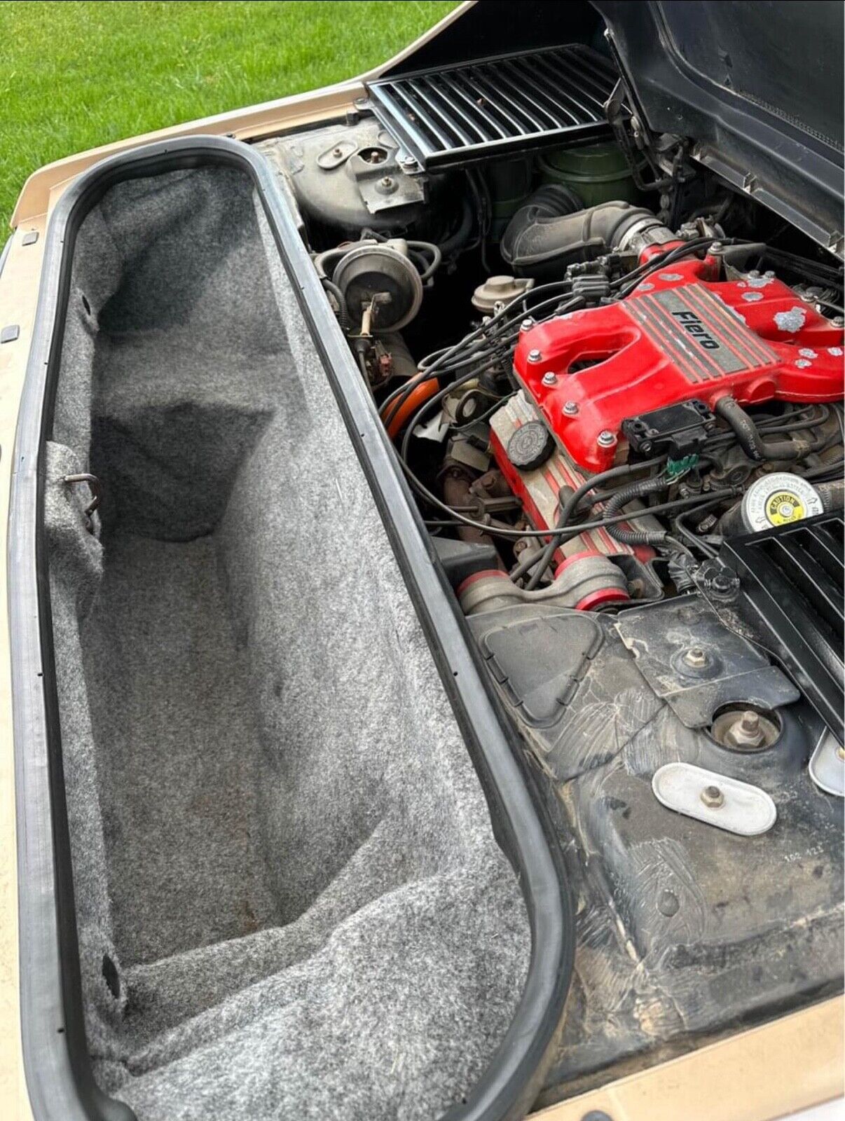 1986 Pontiac Fiero SE, 4-speed manual transmission. Newer rims on car, but also includes original factory wheels. Has A/C, heater, defrost, power windows / locks, removable sunroof. Exterior color is GOLD.